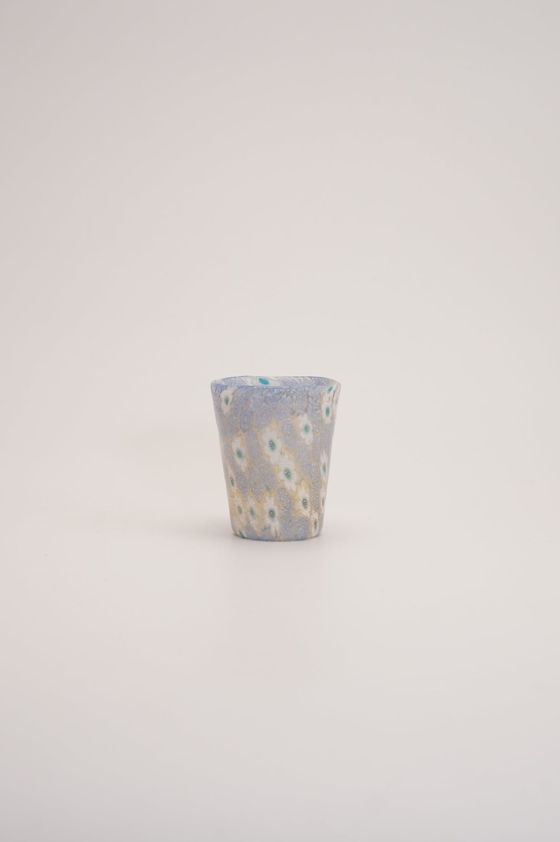 金箔を巻き華やかで涼しげなブルーに、無数の白い小花柄が愛らしいぐい呑み。