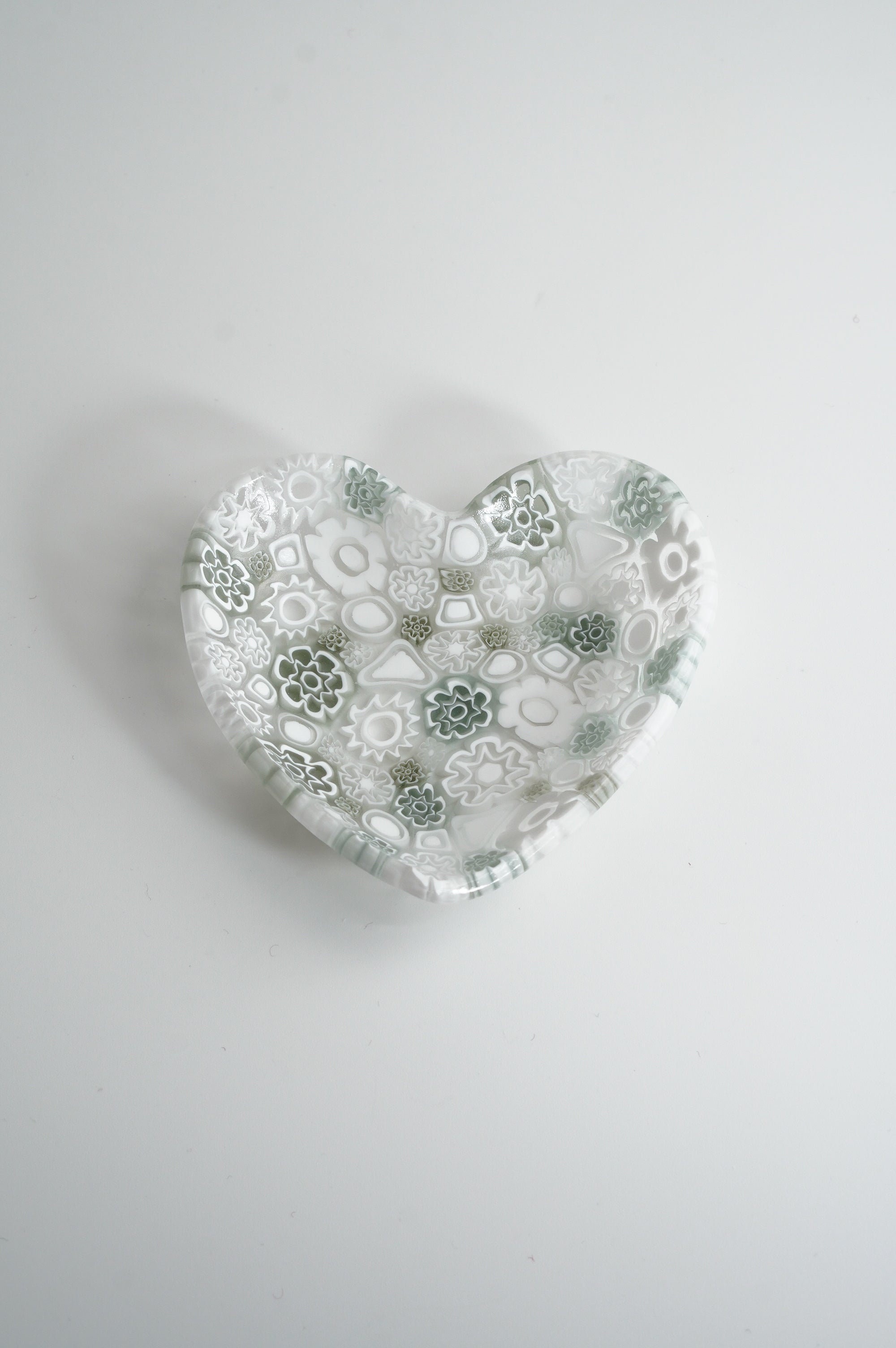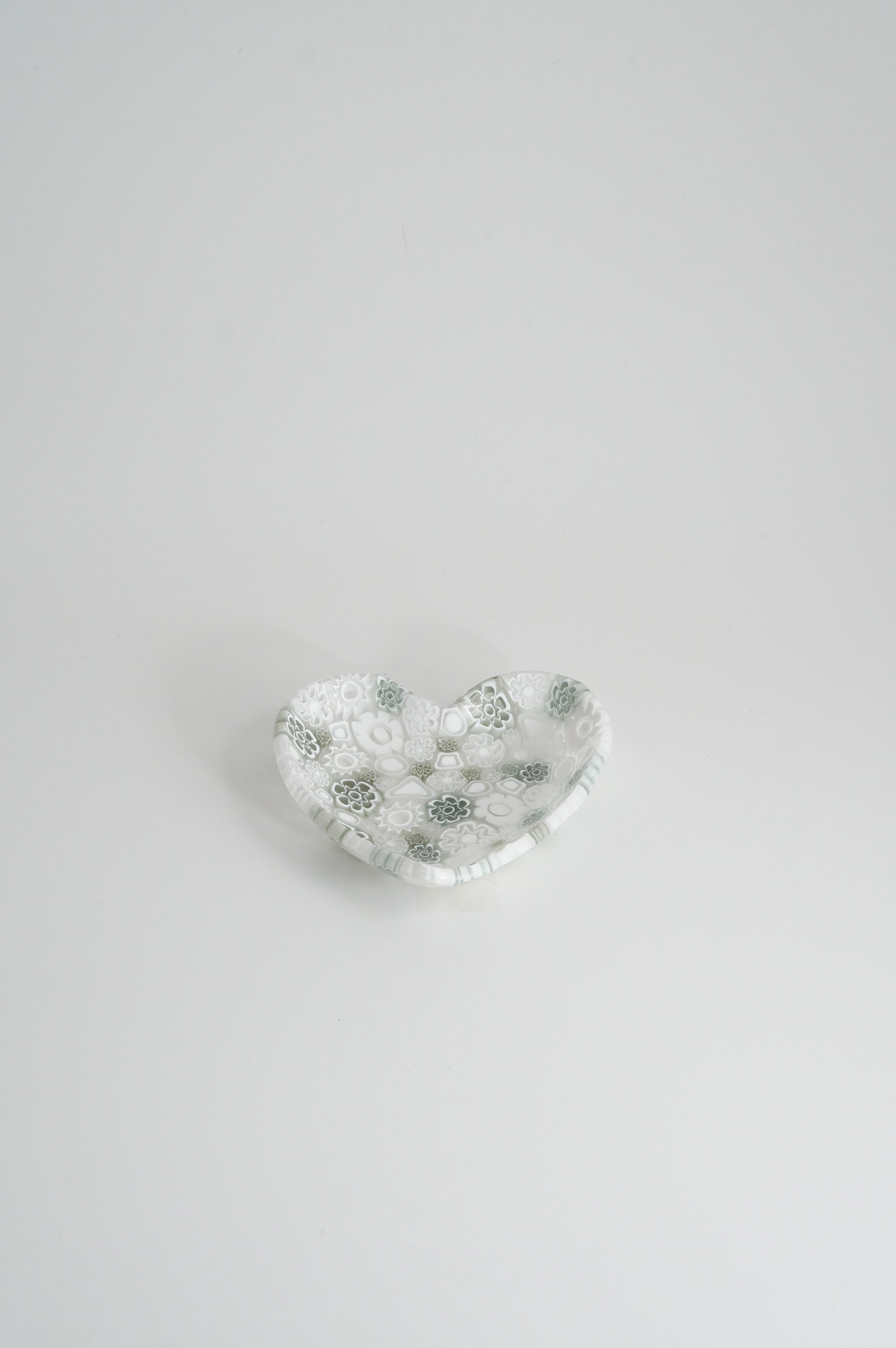 ムラーノガラスの伝統技法”ムリーネ”を用いて制作された、可愛らしいハート型の小皿。