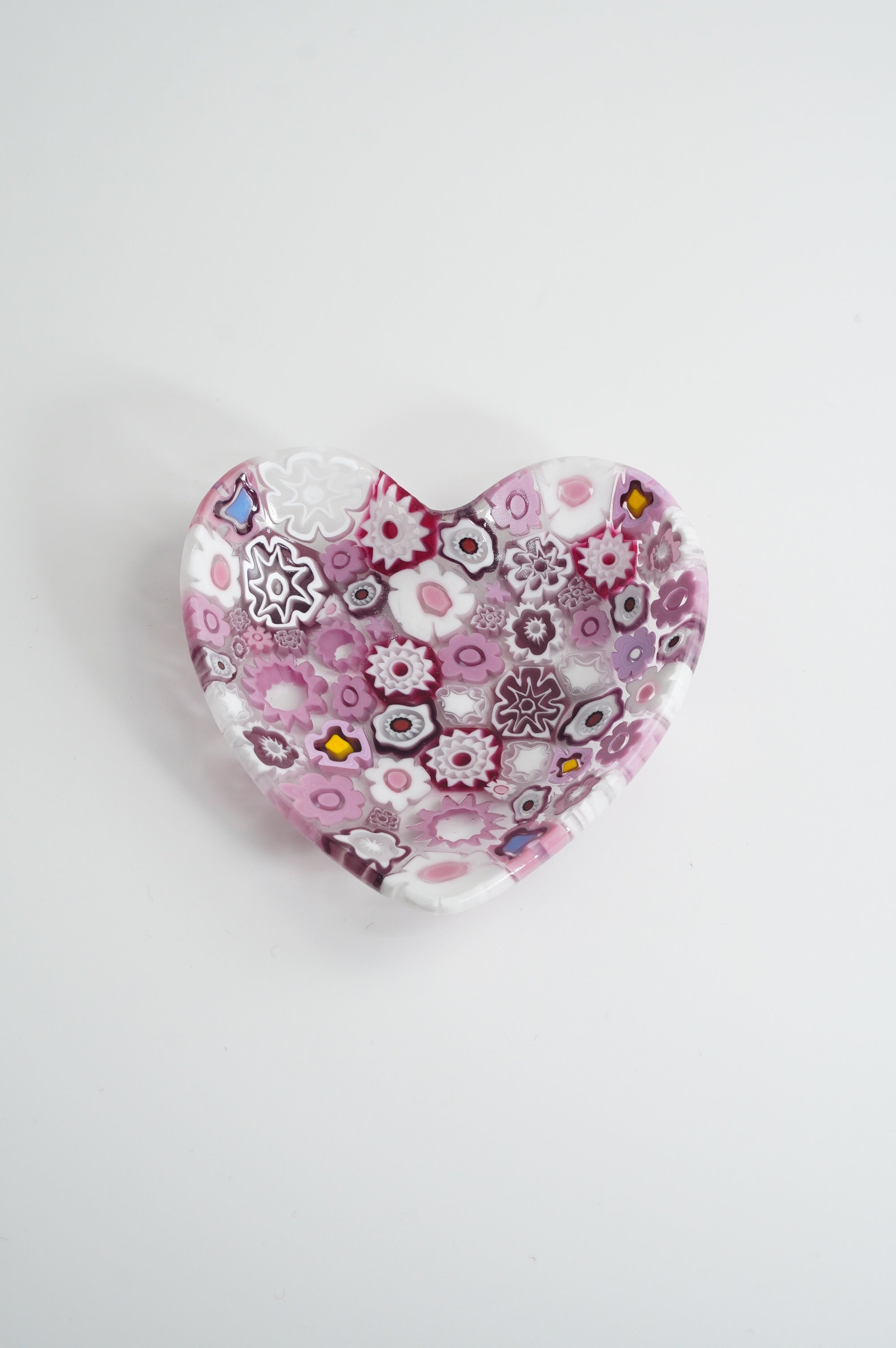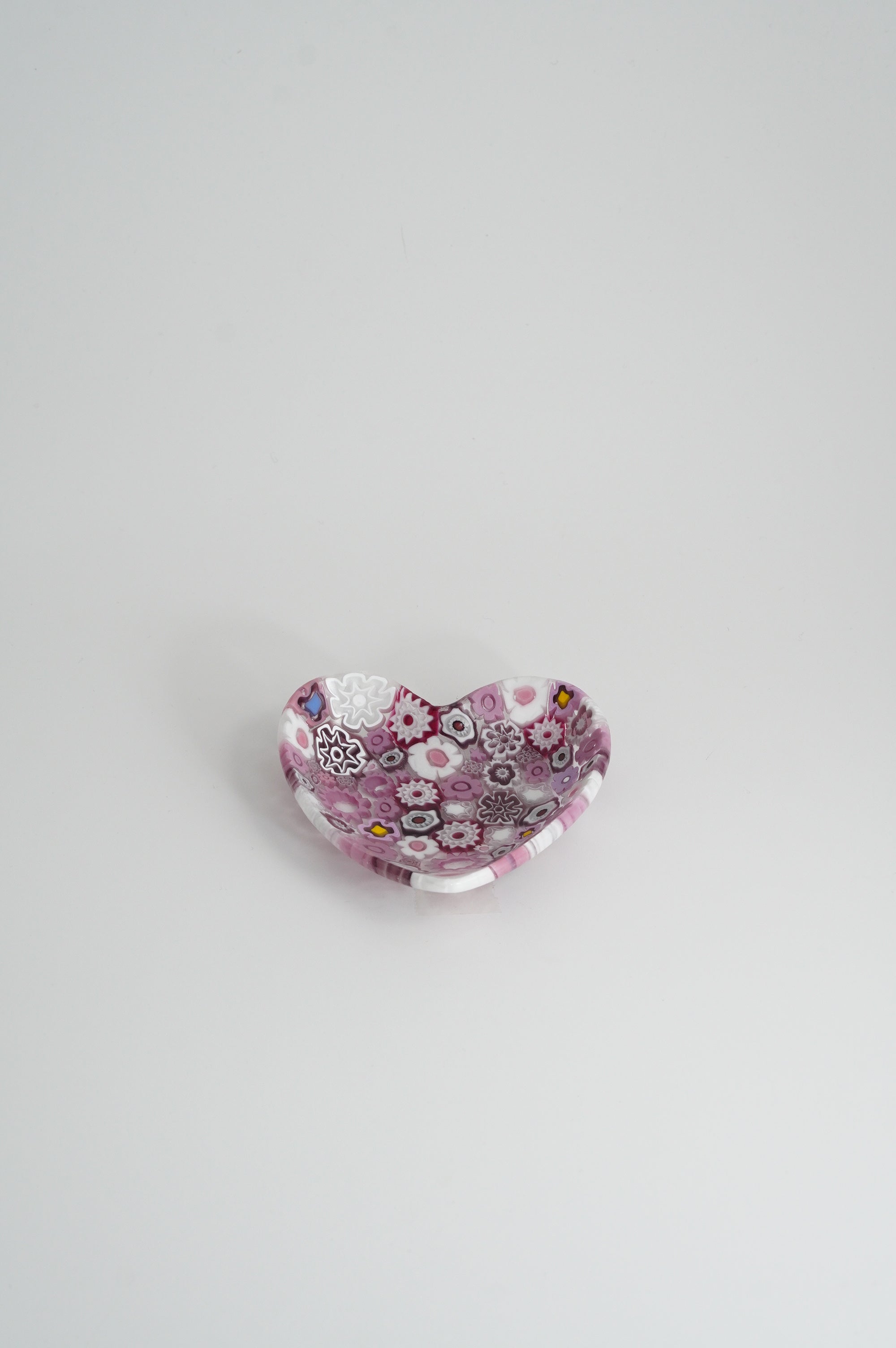 ムラーノガラスの伝統技法”ムリーネ”を用いて制作された、可愛らしいハート型の小皿。