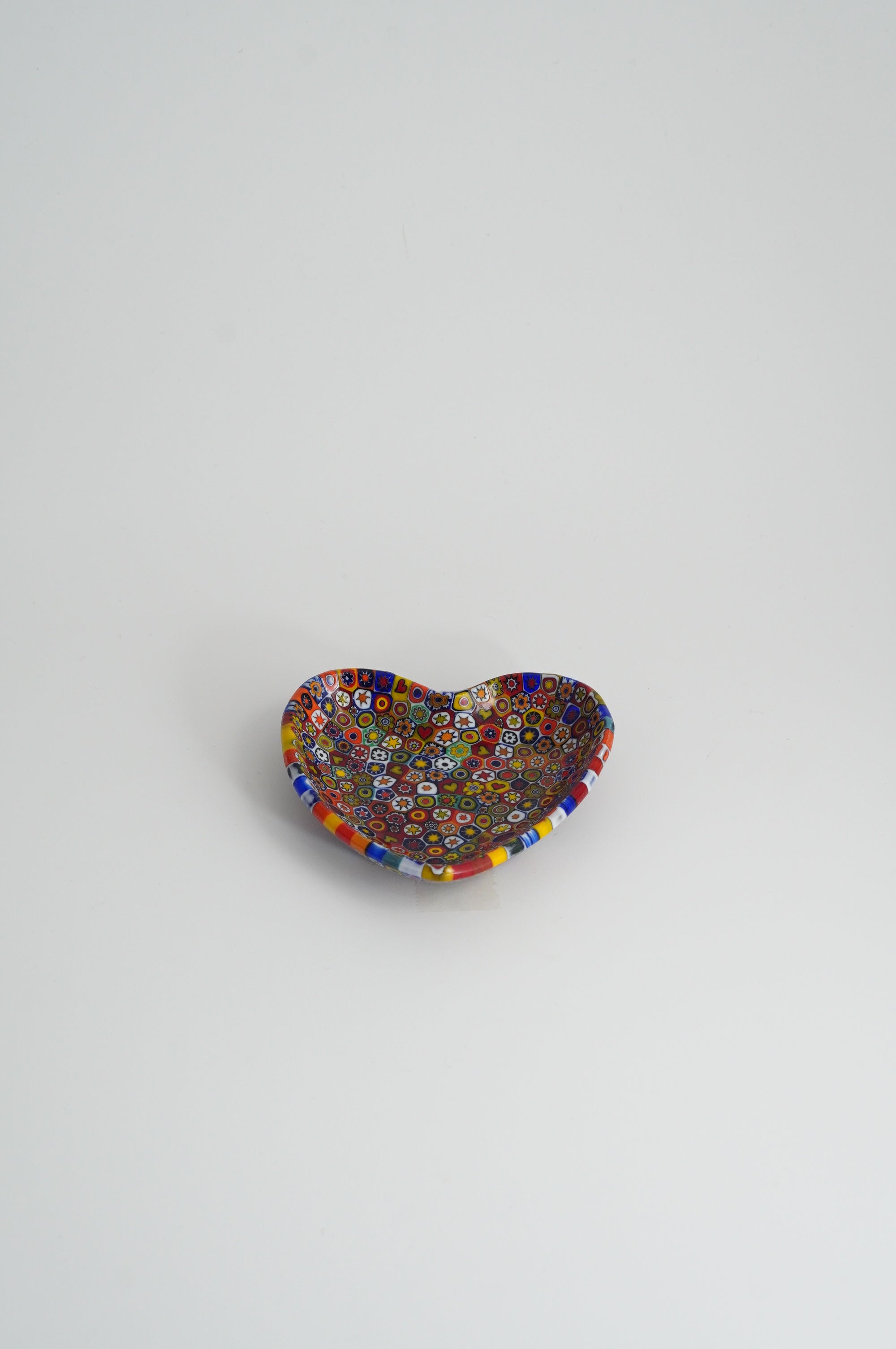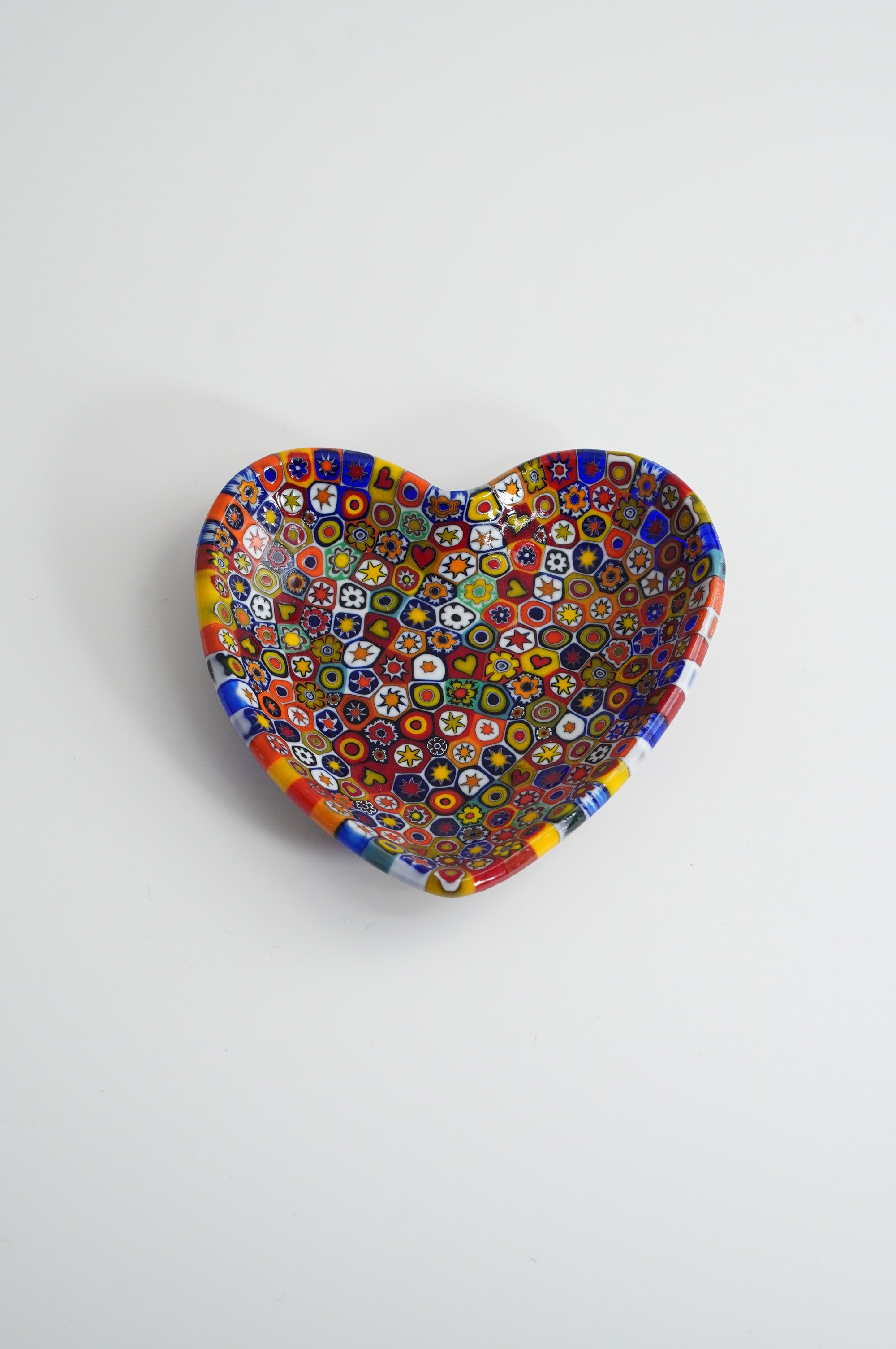 ムラーノガラスの伝統技法”ムリーネ”を用いて制作された、可愛らしいハート型の小皿。