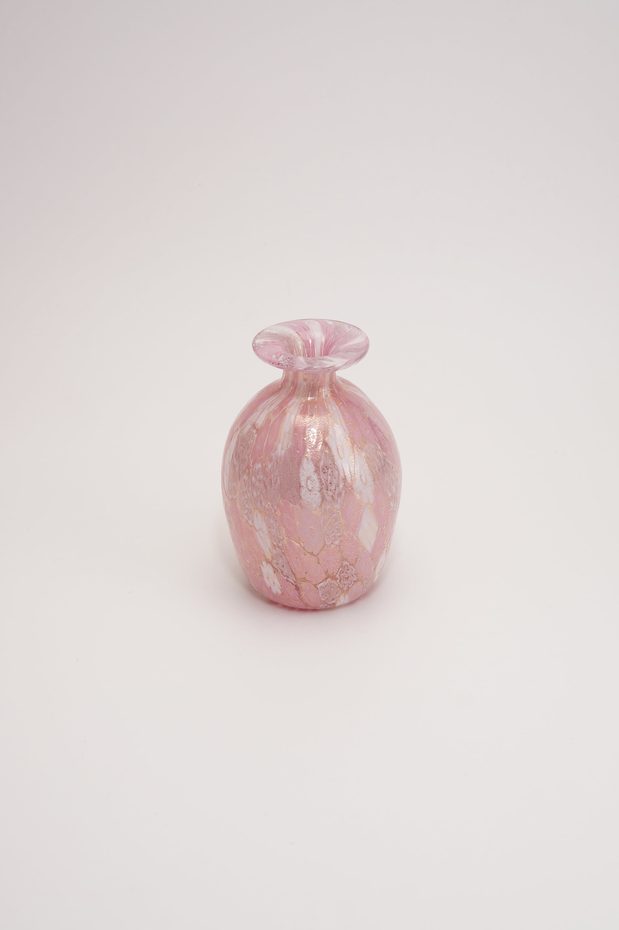 底がふっくらと丸く、首の部分がすっと絞られており、口元はかすみ草やすみれなど、繊細なお花も活けやすいひらりと花開くような形をしています。