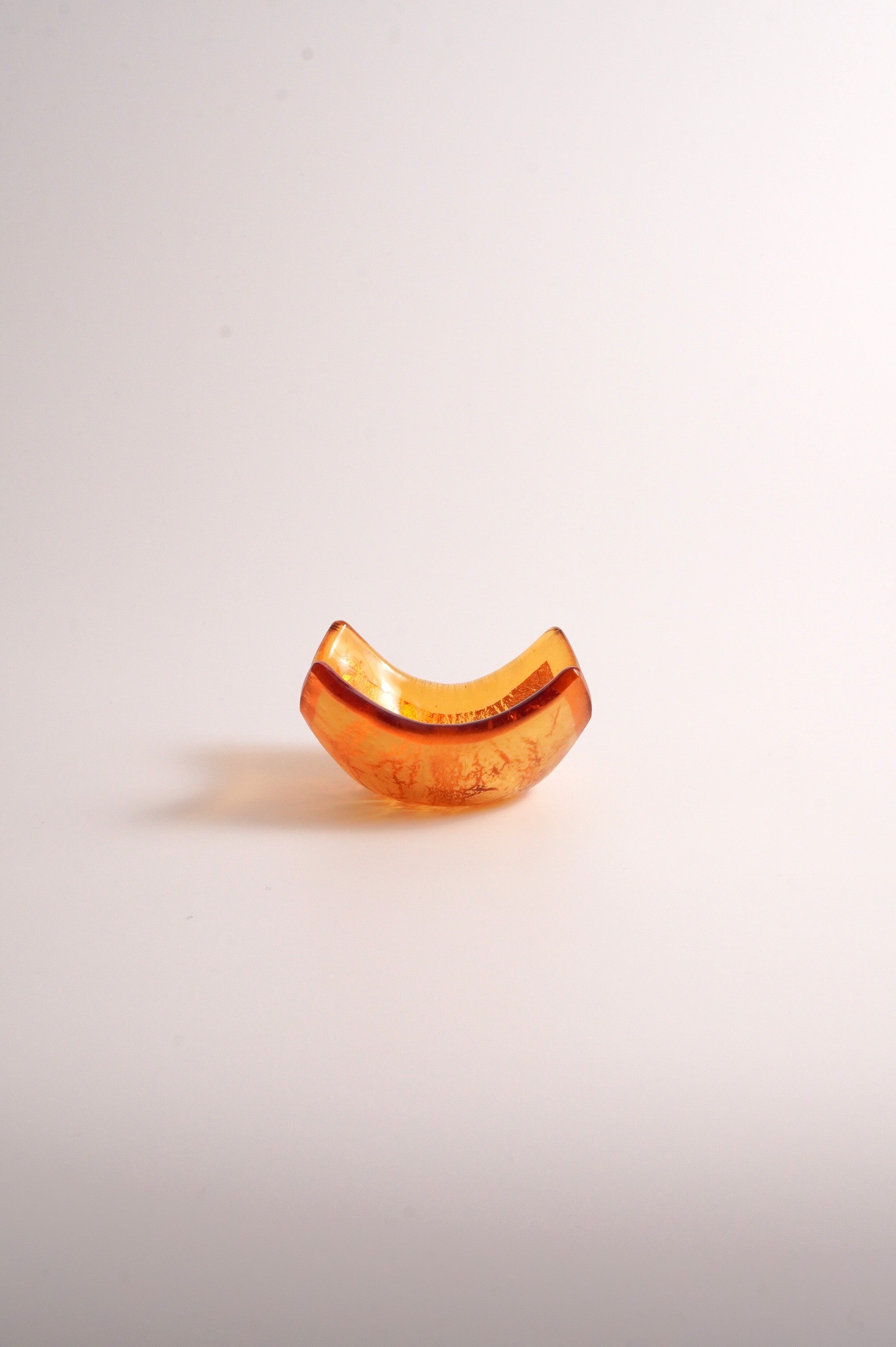 吹きガラスにおいては、制作途中に発生する小さな気泡や黒点、底面にポンテ跡(吹き竿を外した際の凹凸)がある場合がございます。