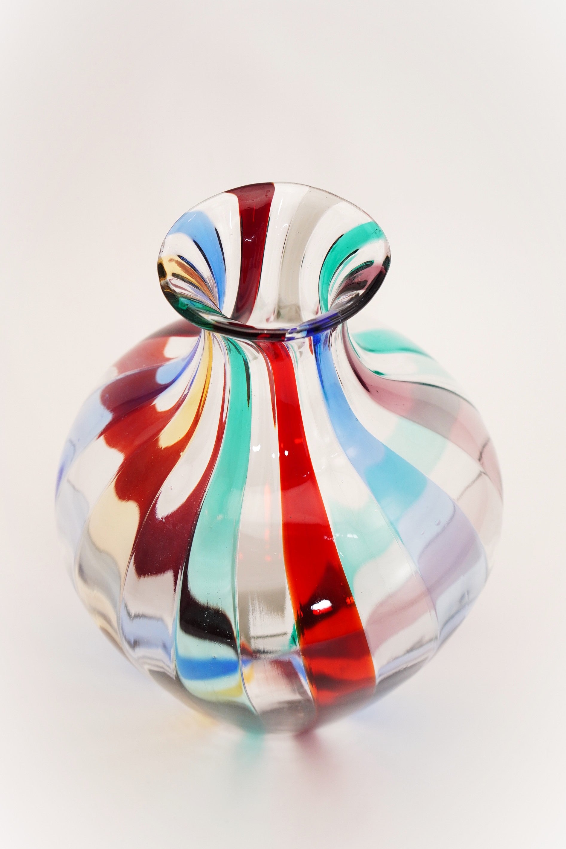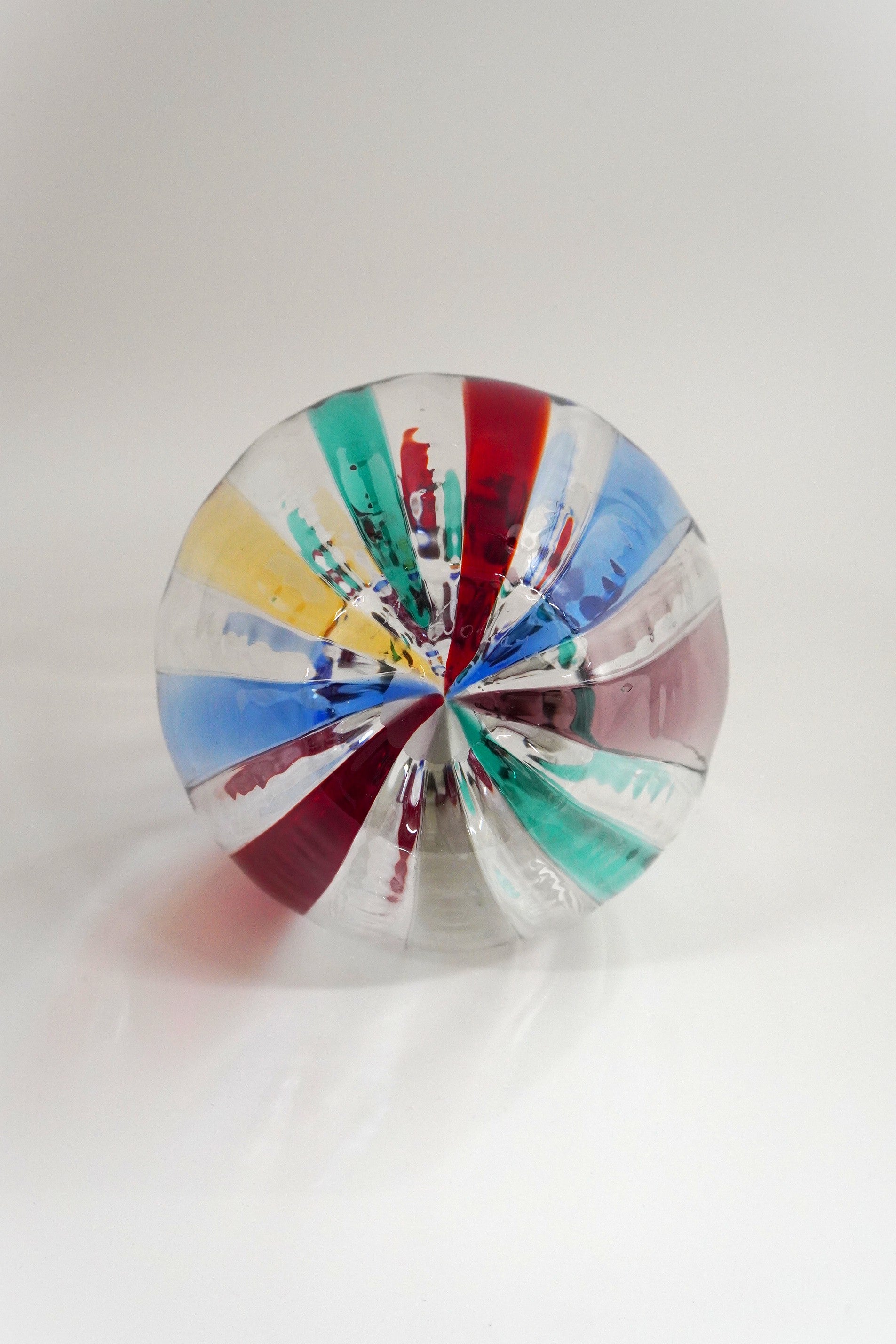 とろりと熔けたガラスで色ガラス棒を巻き取りぷっくりと吹き広げ、まるで光がガラスに宿ったような美しいデザイン。