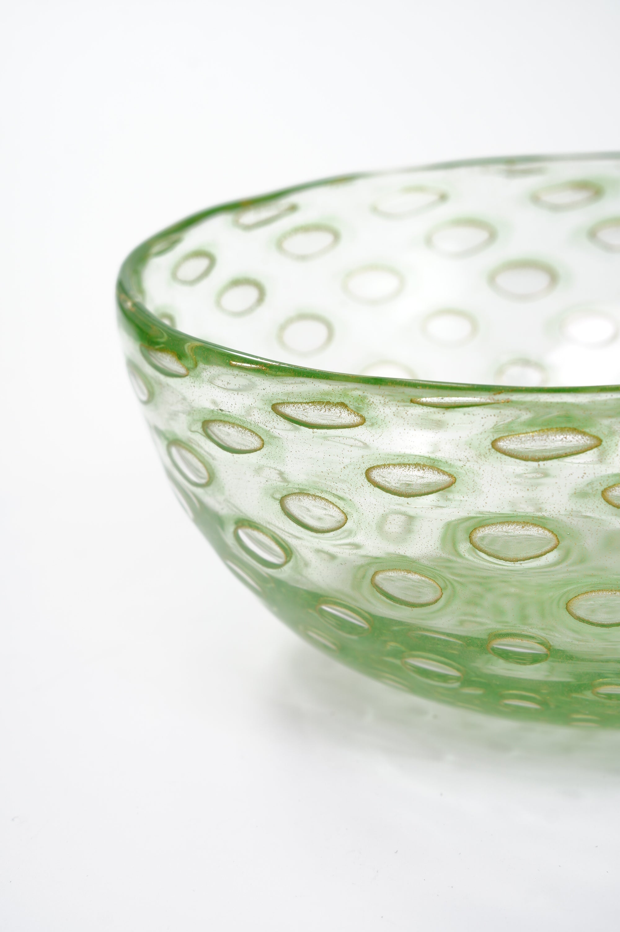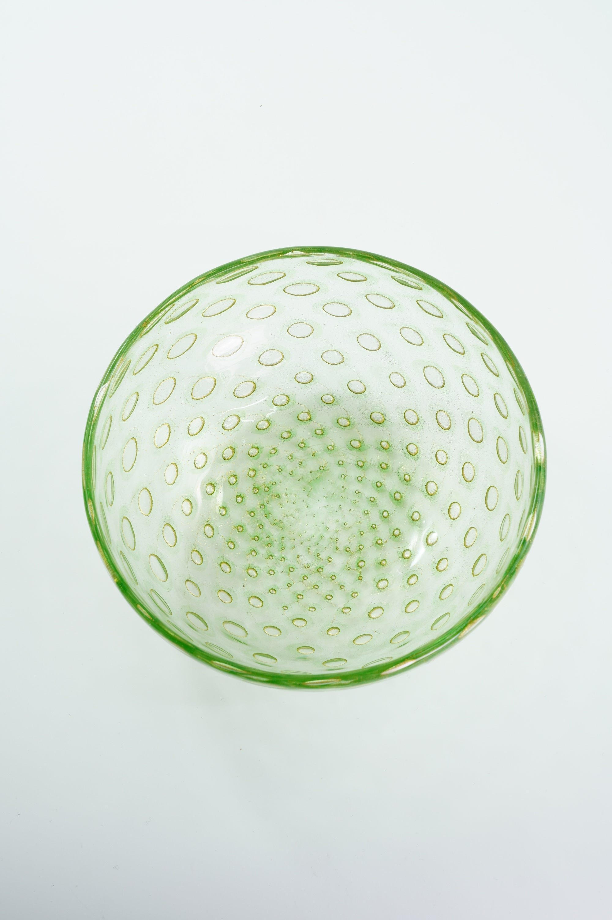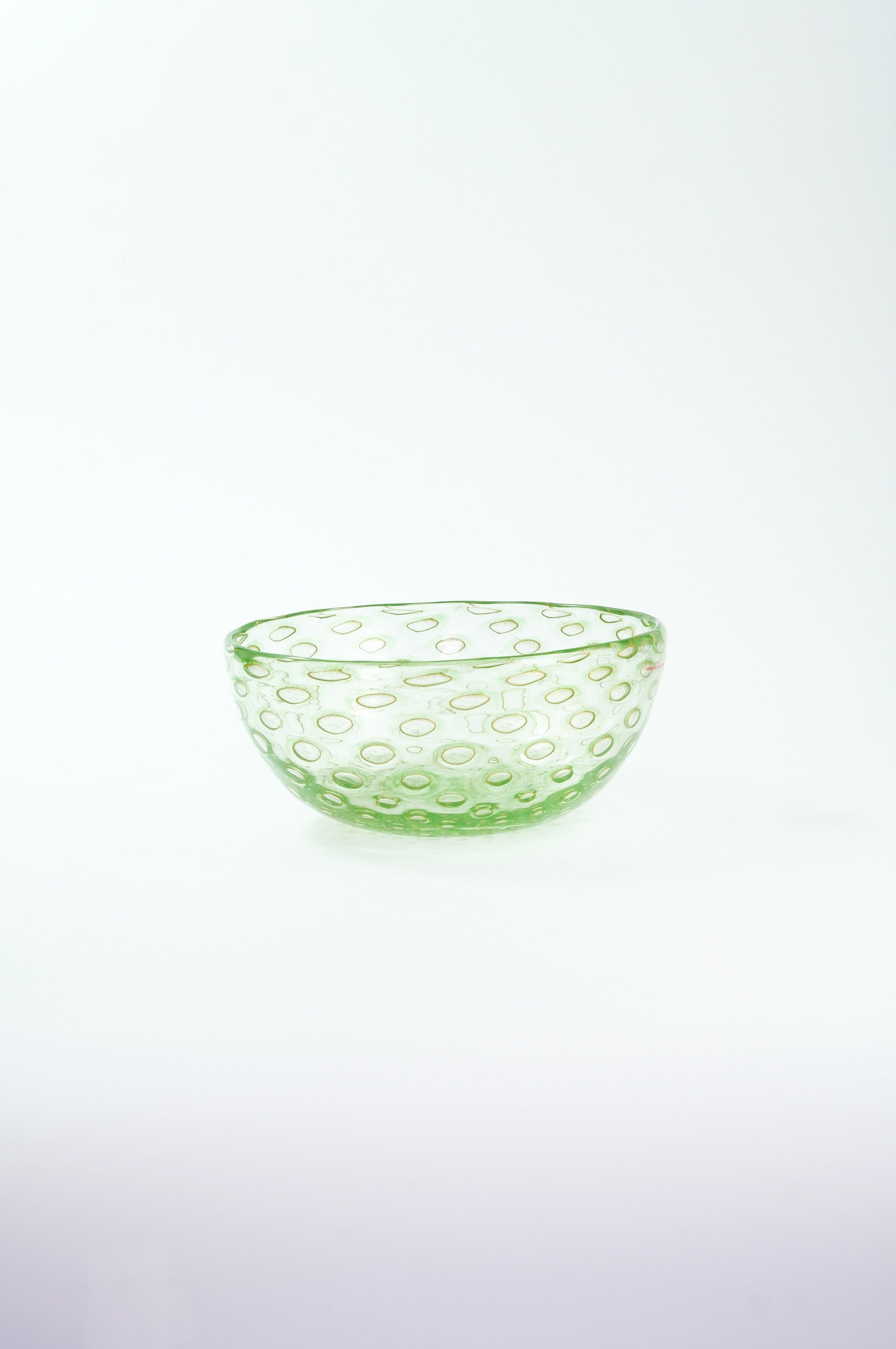 吹きガラスにおいては、制作途中に発生する小さな気泡や黒点、底面にポンテ跡(吹き竿を外した際の凹凸)がある場合がございます。