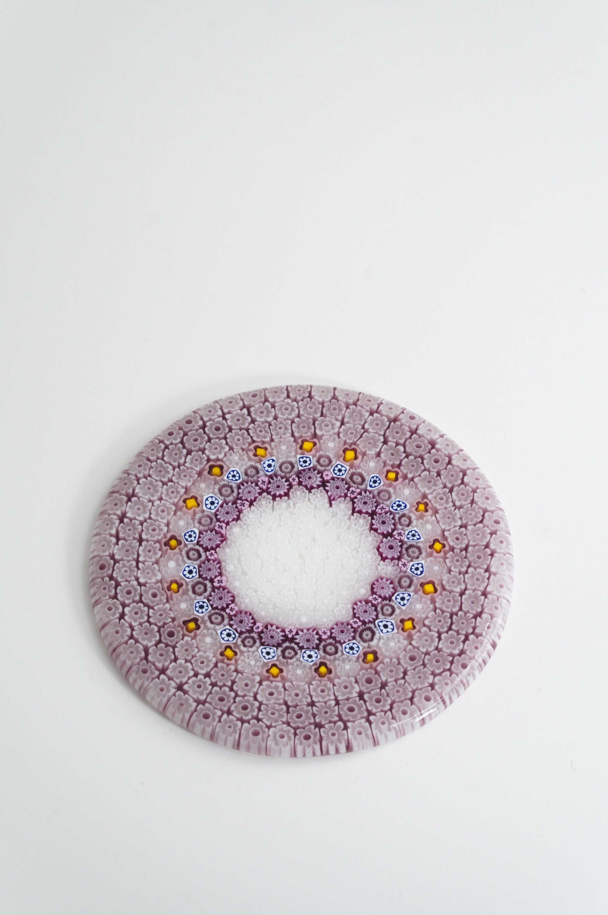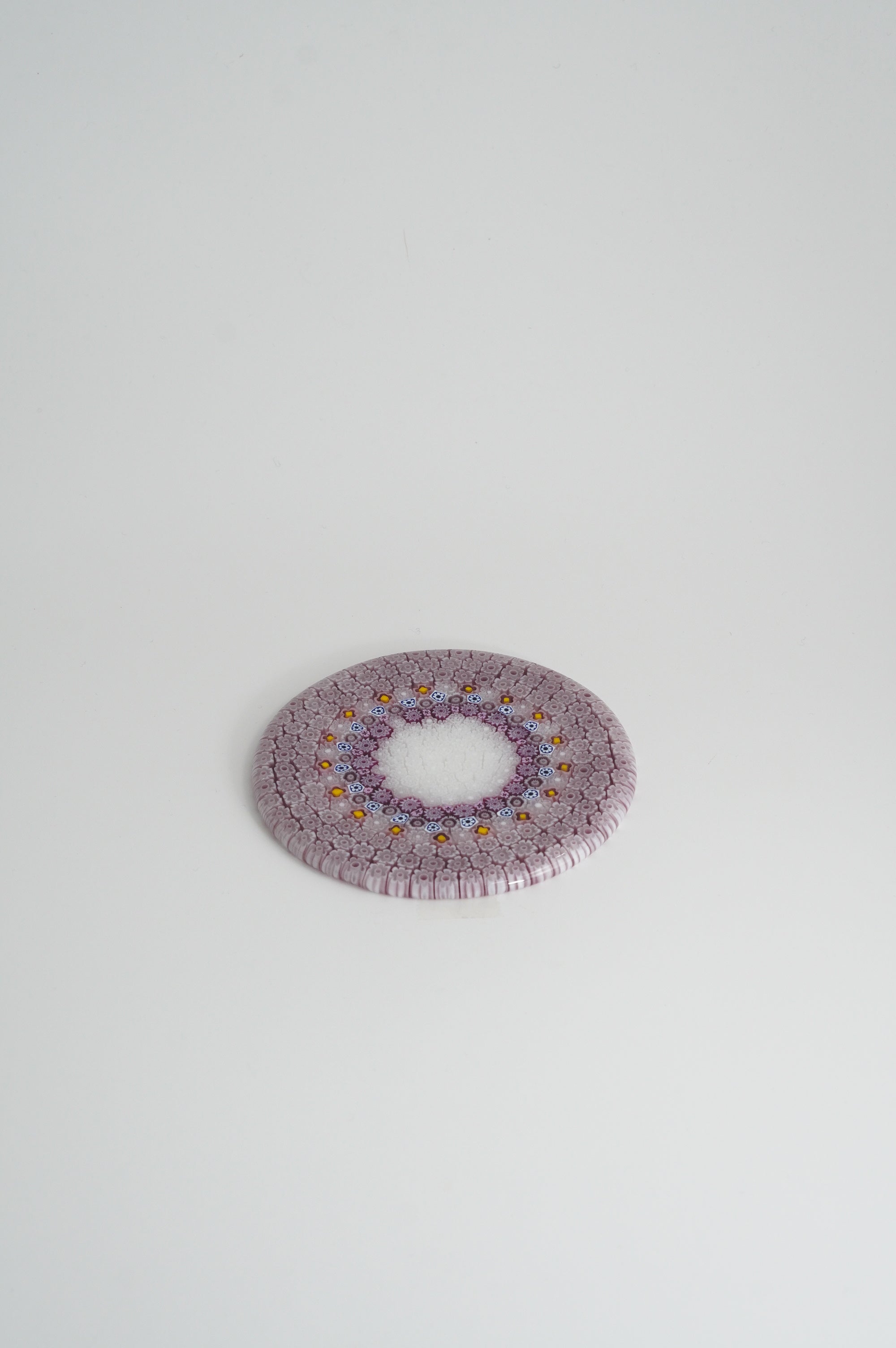 ムラーノガラスの伝統技法”ムリーネ”を用い、繊細な花模様がぐるりと円を描く美しいコースター。