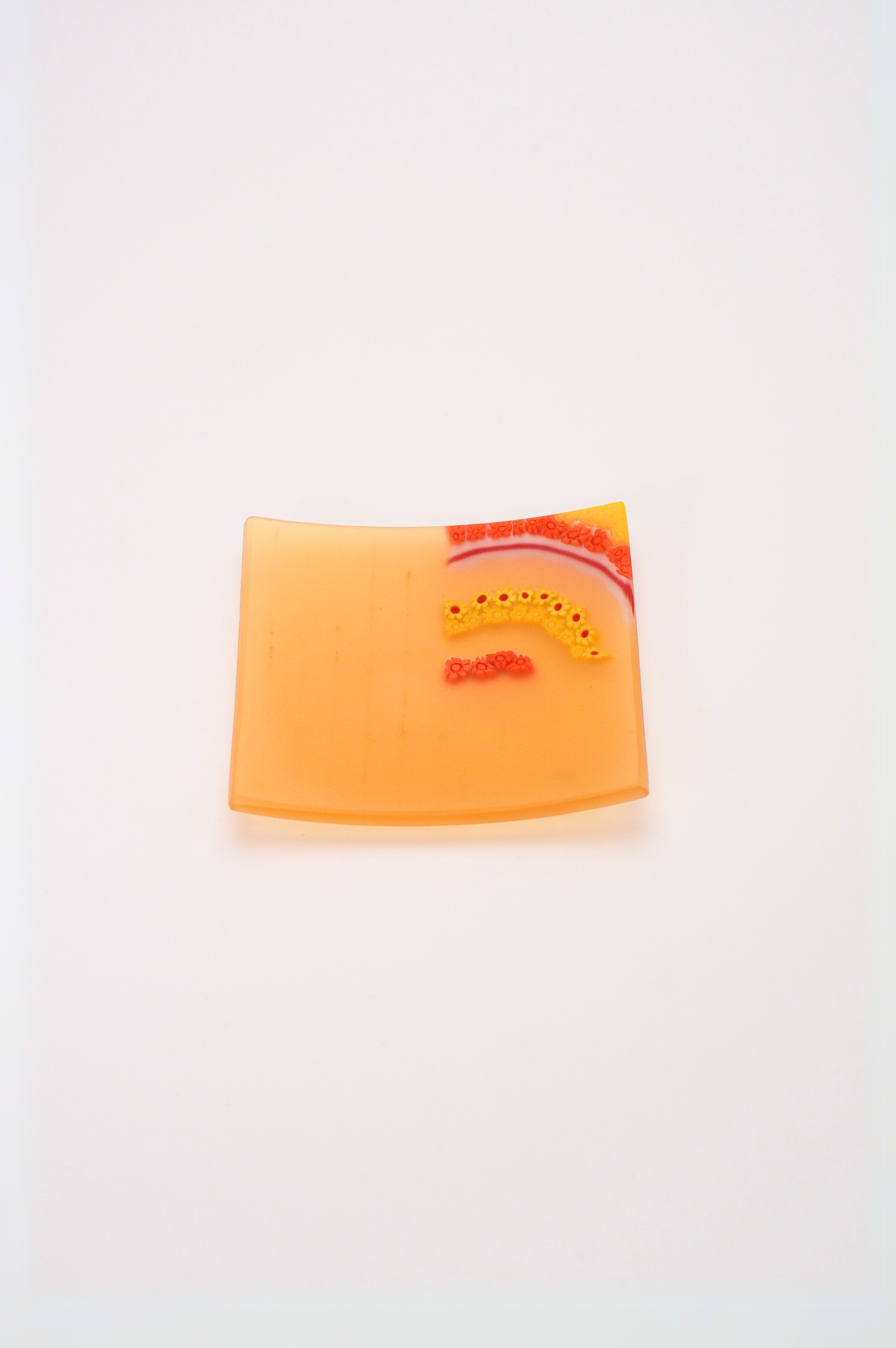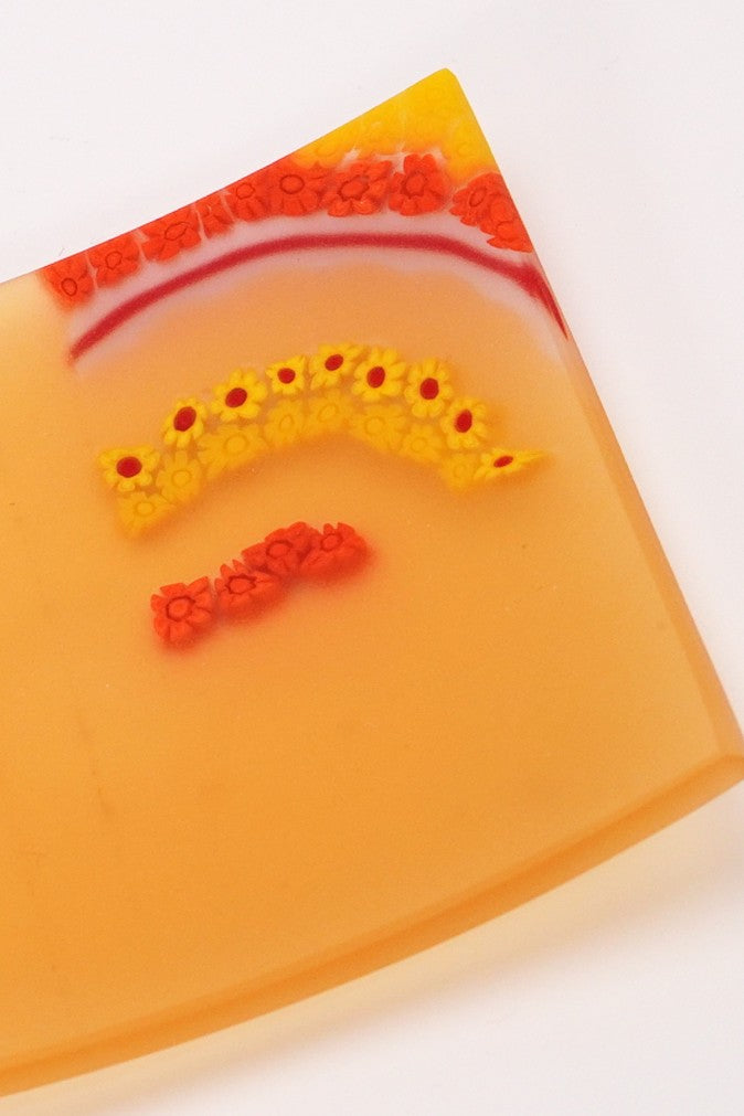 オレンジ、黄色を主体にムリーネが組み込まれ、まるで”陽だまりの中で咲く花”や”夕暮れ”のよう。