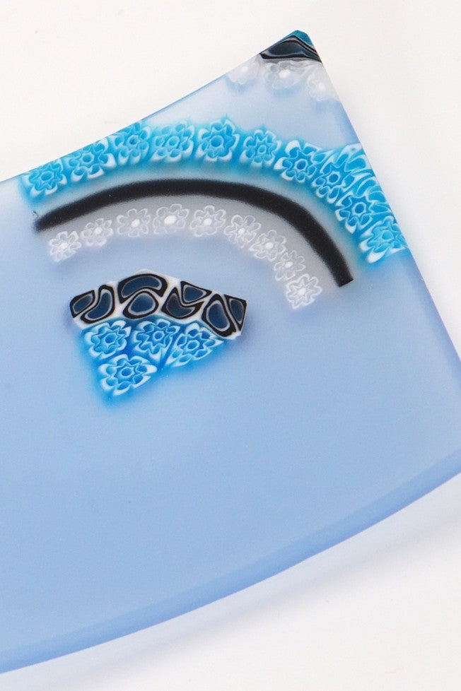 涼やかなライトブルーのプレートの一角にだけ、ムリーネの装飾が施された抽象画のような美しさを持つ一枚。