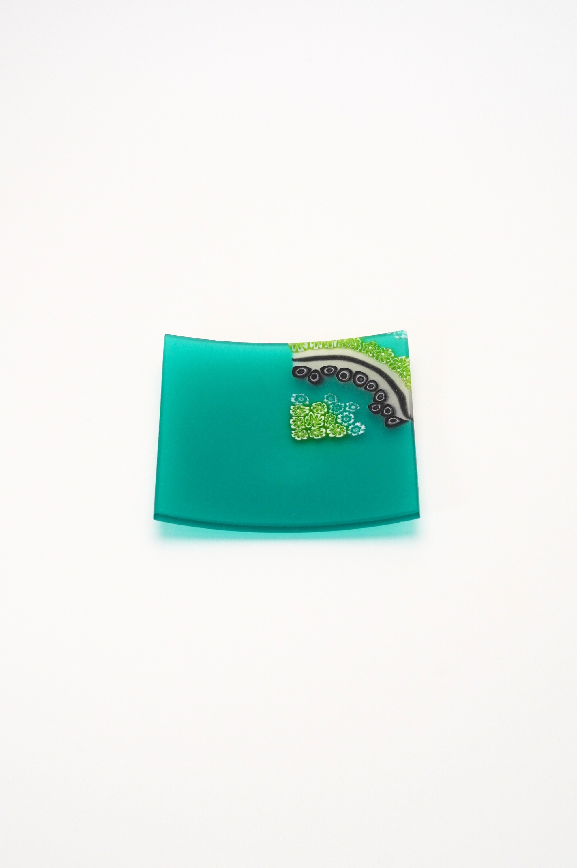 鮮やかなグリーンのプレートの一角にだけ、ムリーネの装飾が施された抽象画のような美しさを持つ一枚。