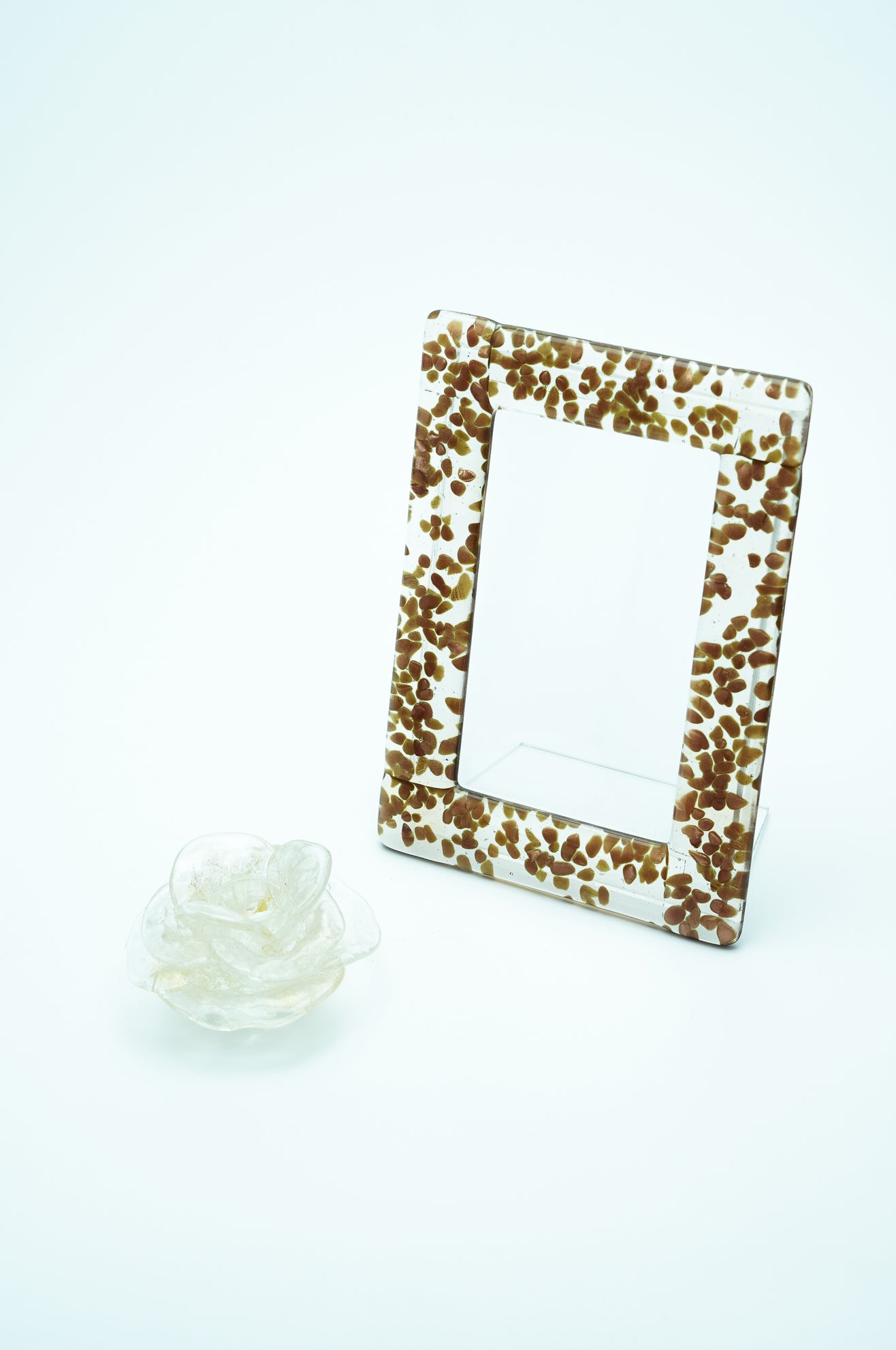 そして、金色のガラスアヴェンチュリンをふんだんにまとった写真立ては、大切な一枚を飾るための“窓”のような存在です。