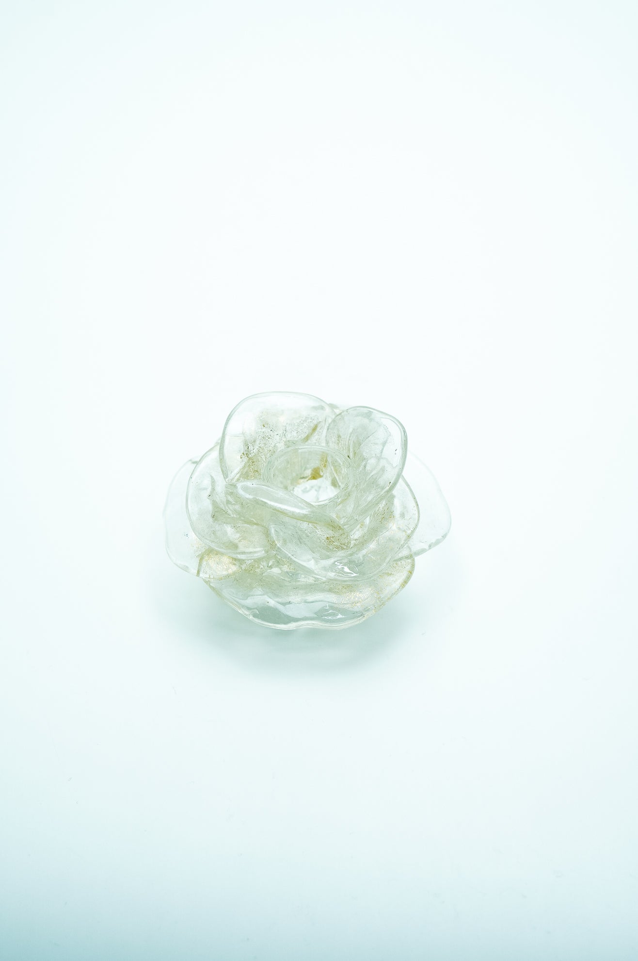 24金箔をあしらったガラスのバラが、灯りを受けてやわらかくきらめくキャンドルスタンド。