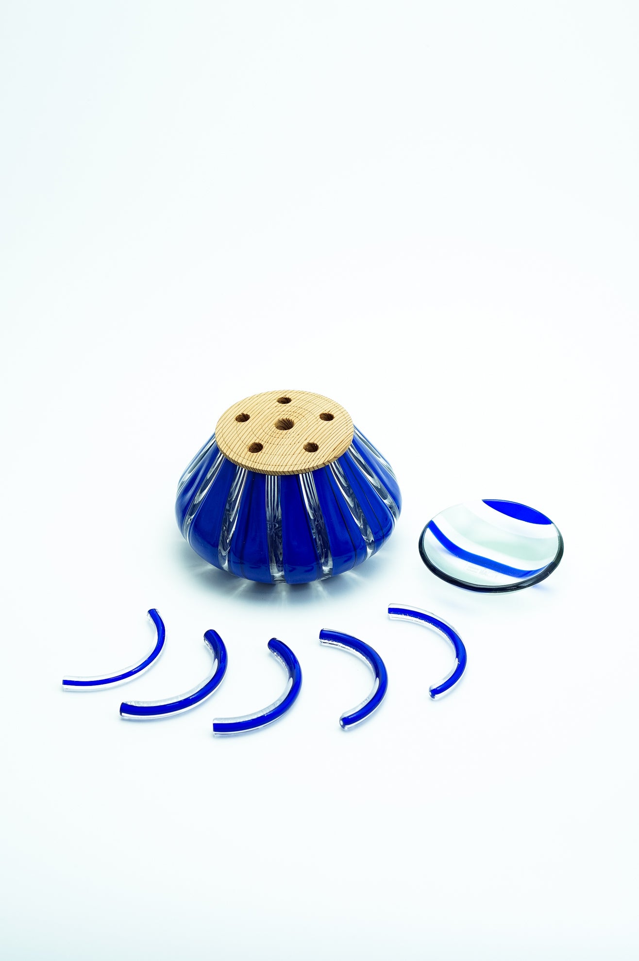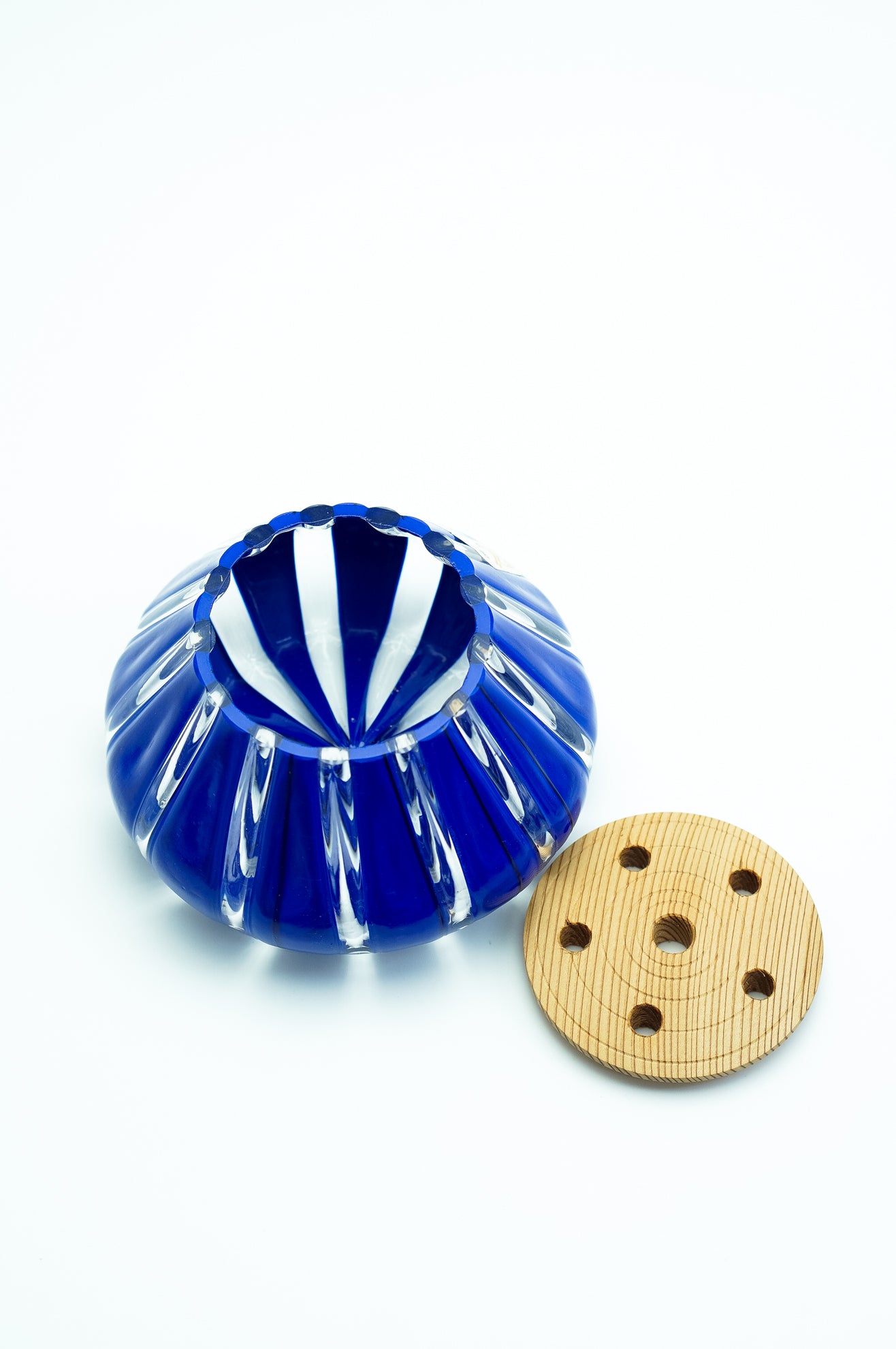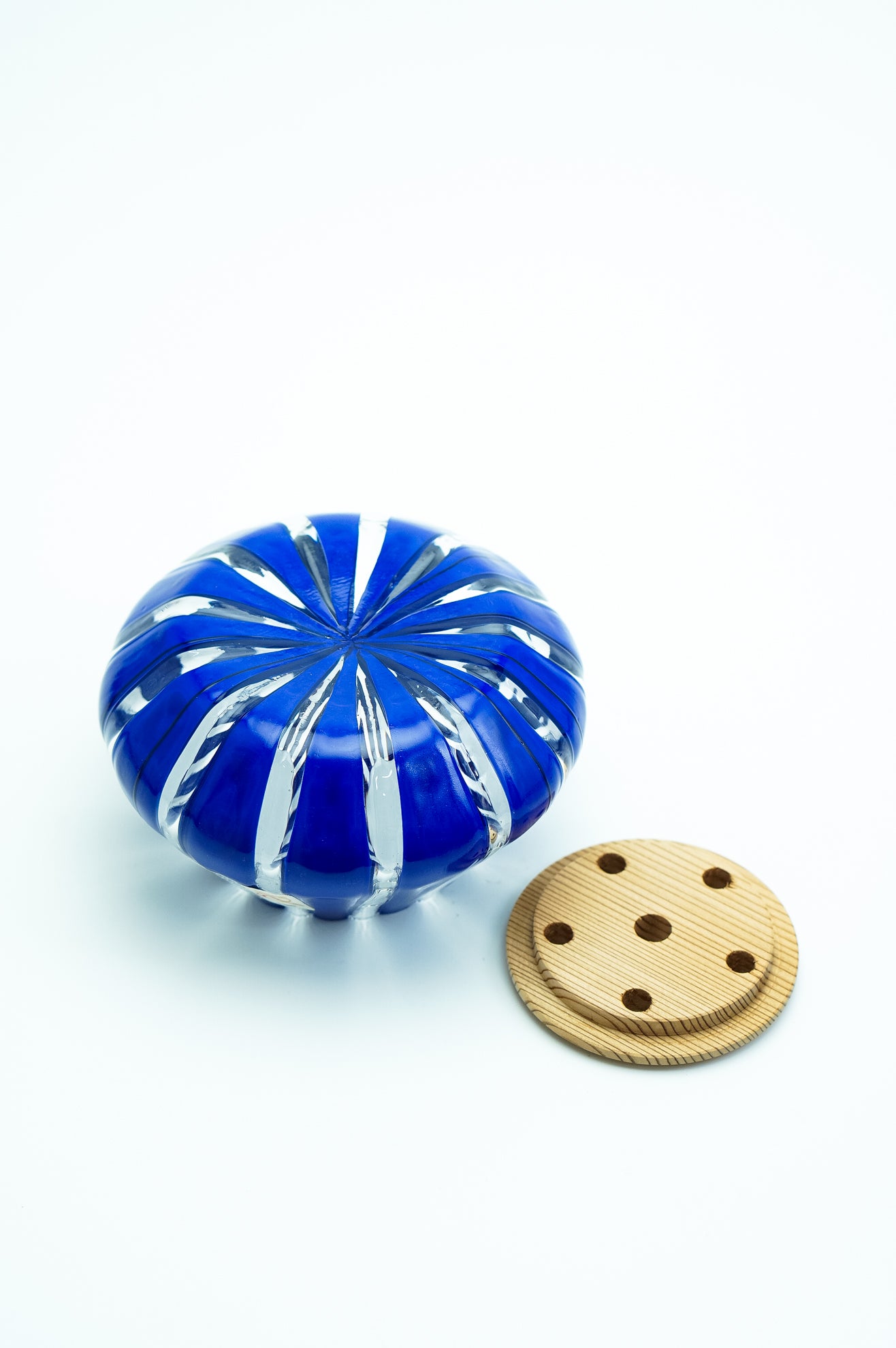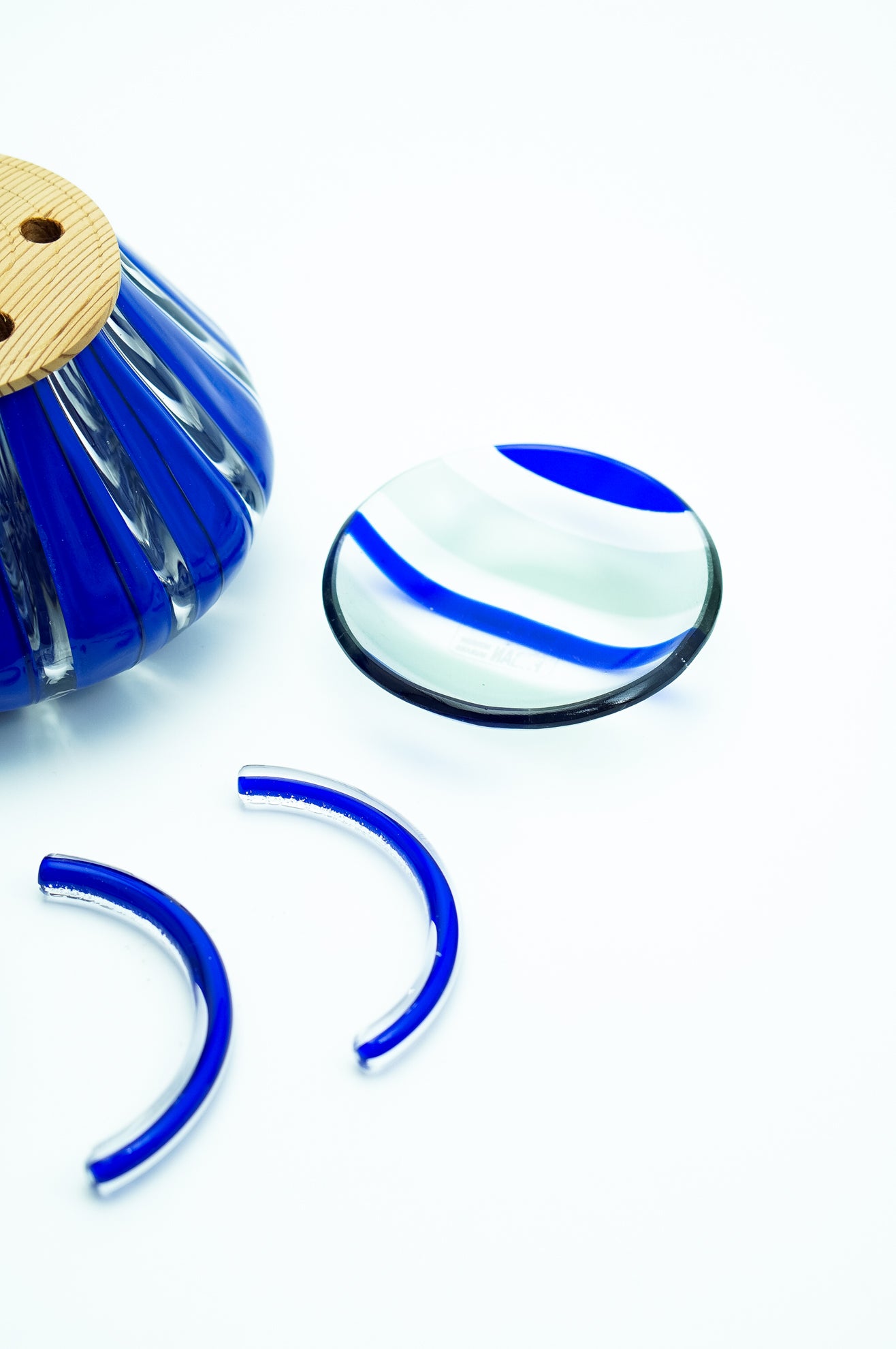 吹きガラスにおいては、制作途中に発生する小さな気泡や黒点、底面にポンテ跡(吹き竿を外した際の凹凸)がある場合がございます。