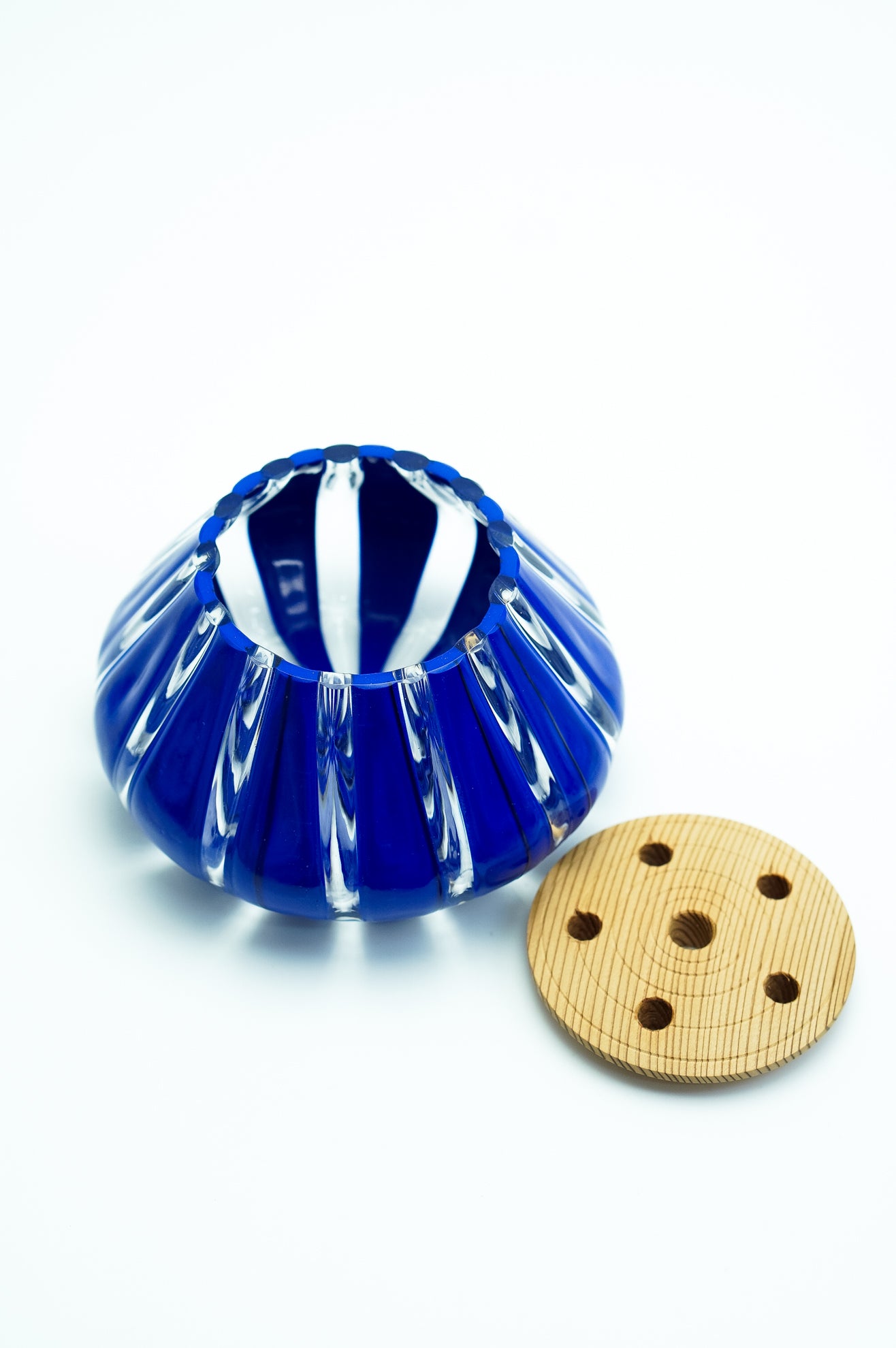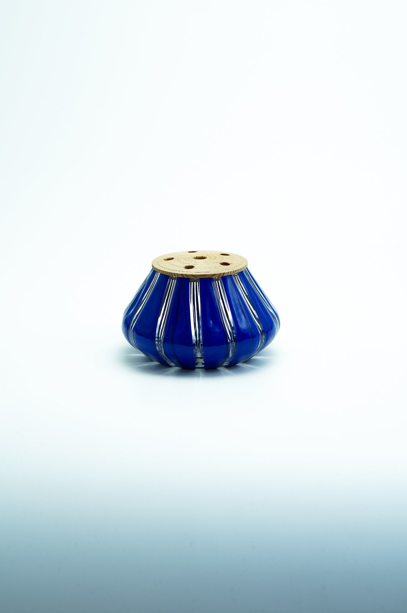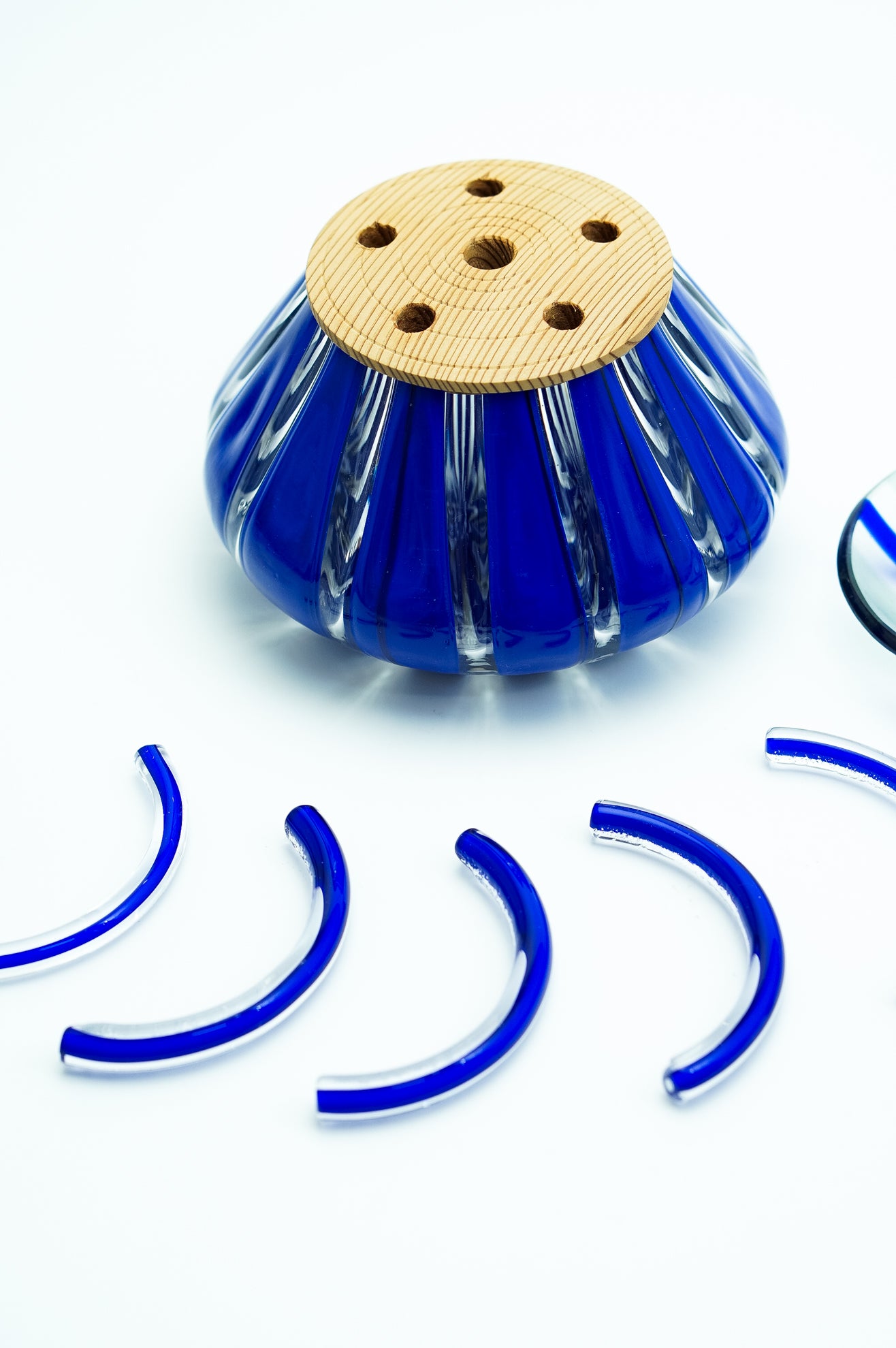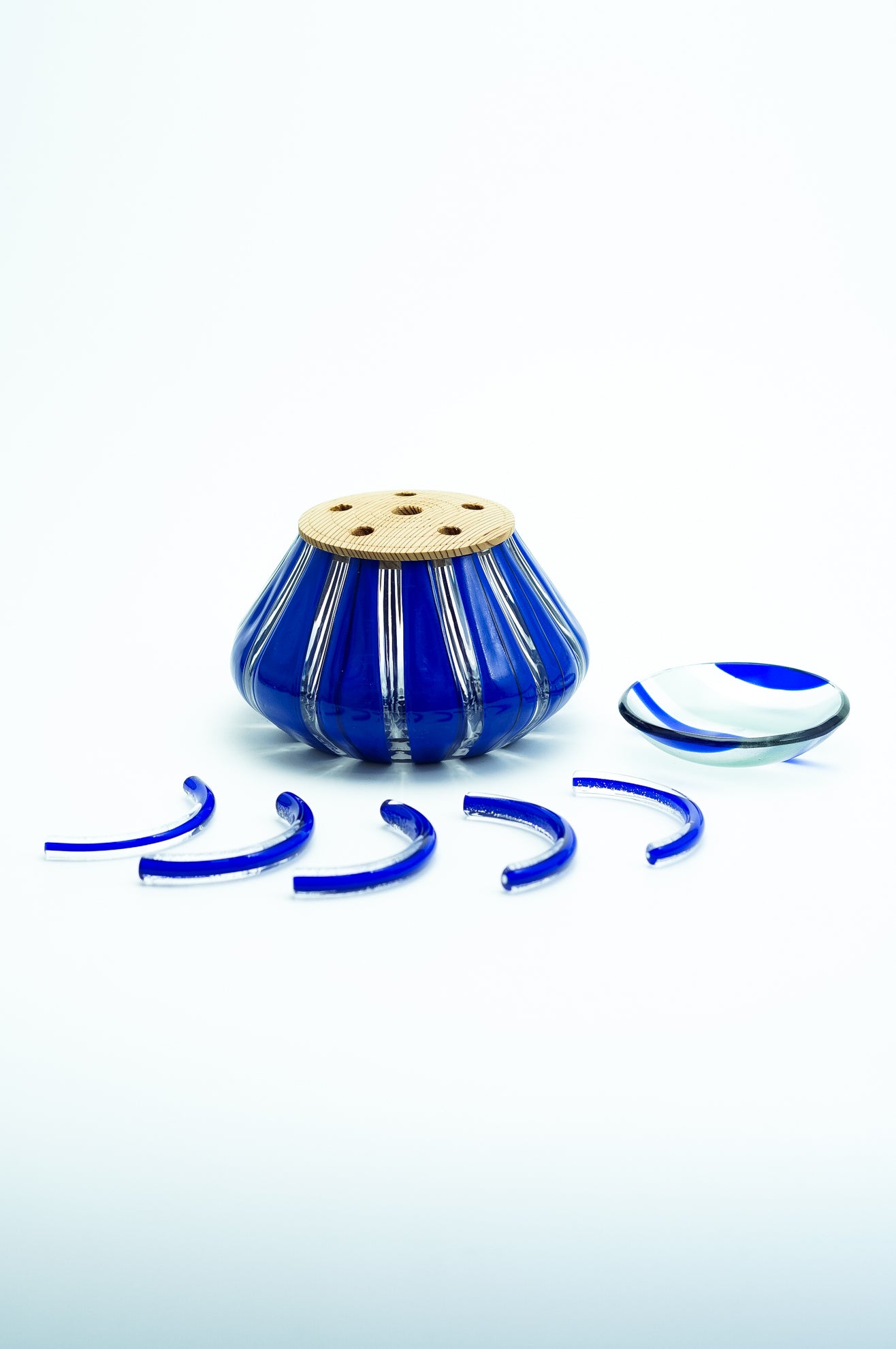 吹きガラスにおいては、制作途中に発生する小さな気泡や黒点、底面にポンテ跡(吹き竿を外した際の凹凸)がある場合がございます。