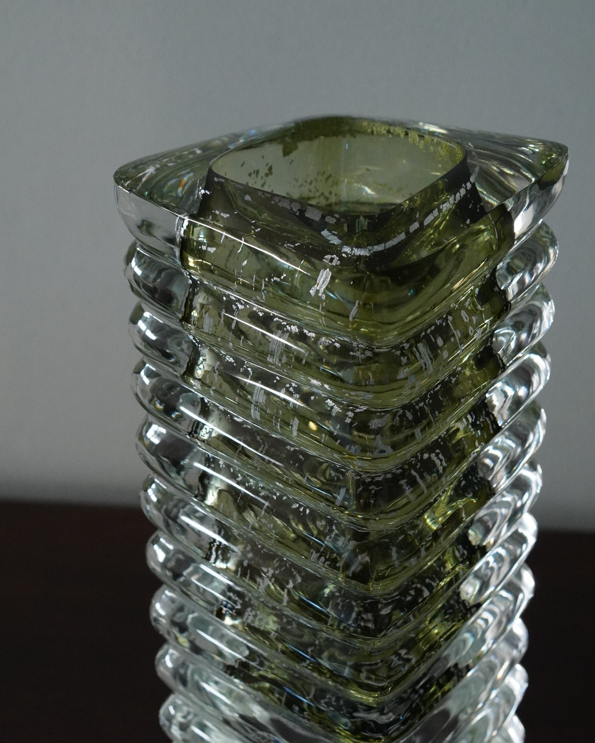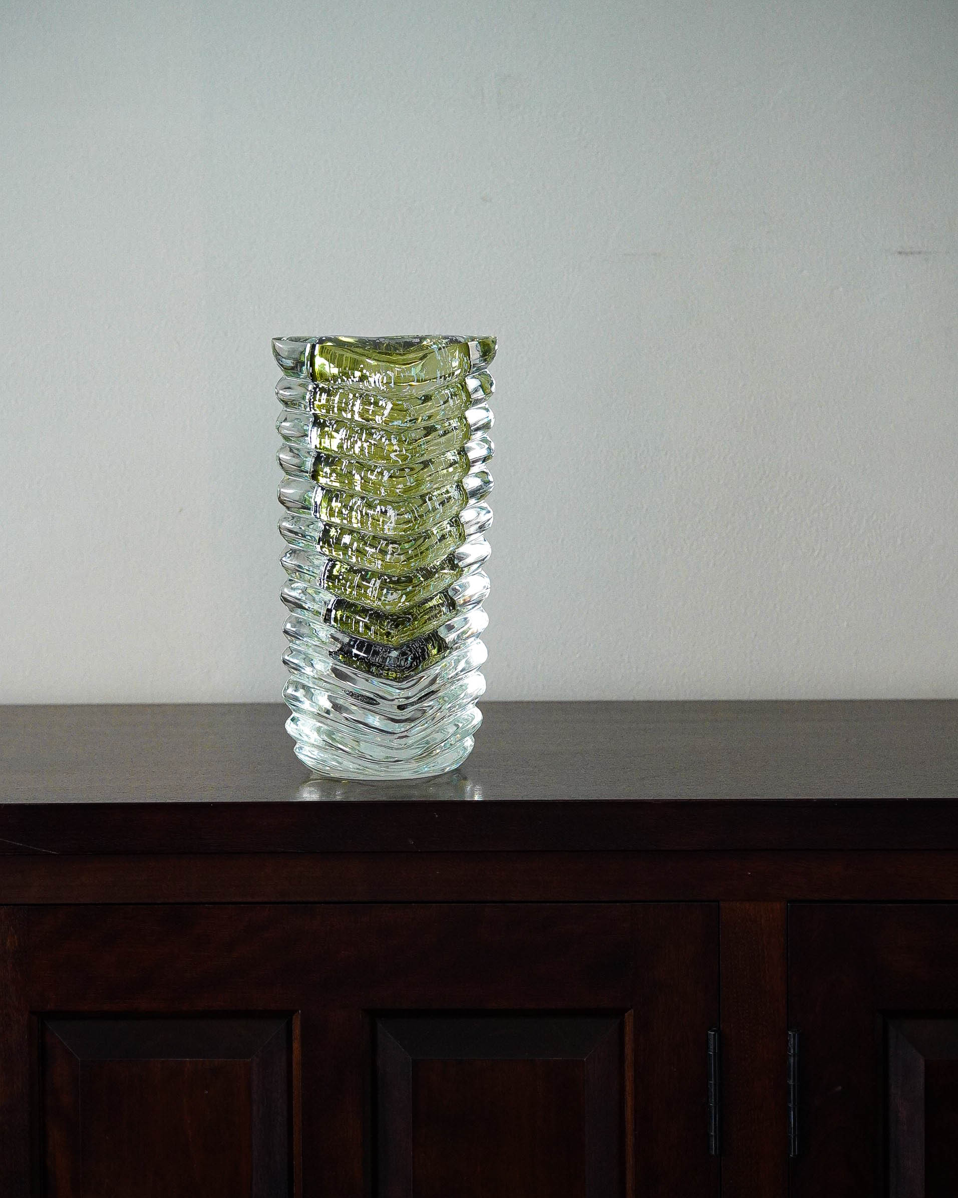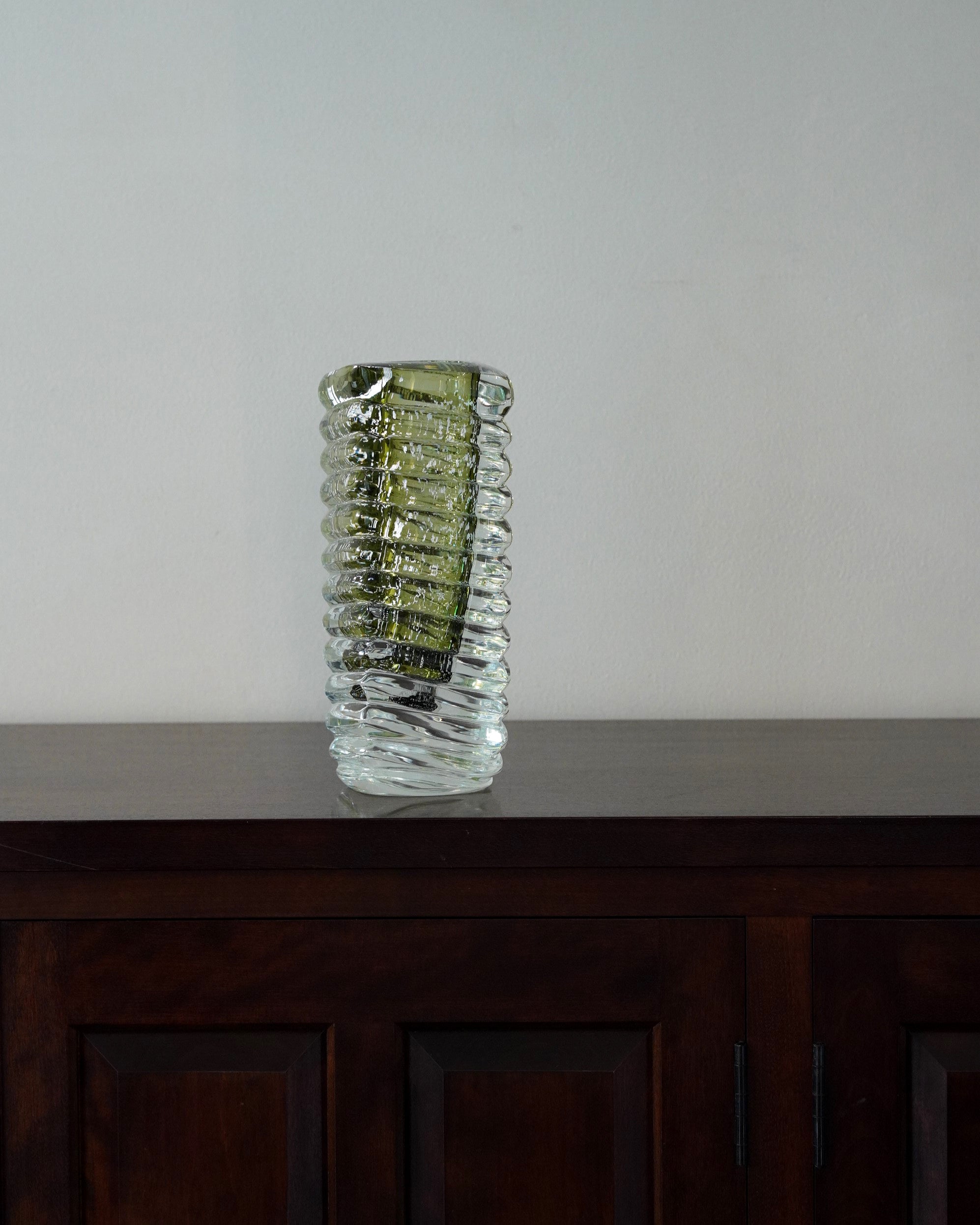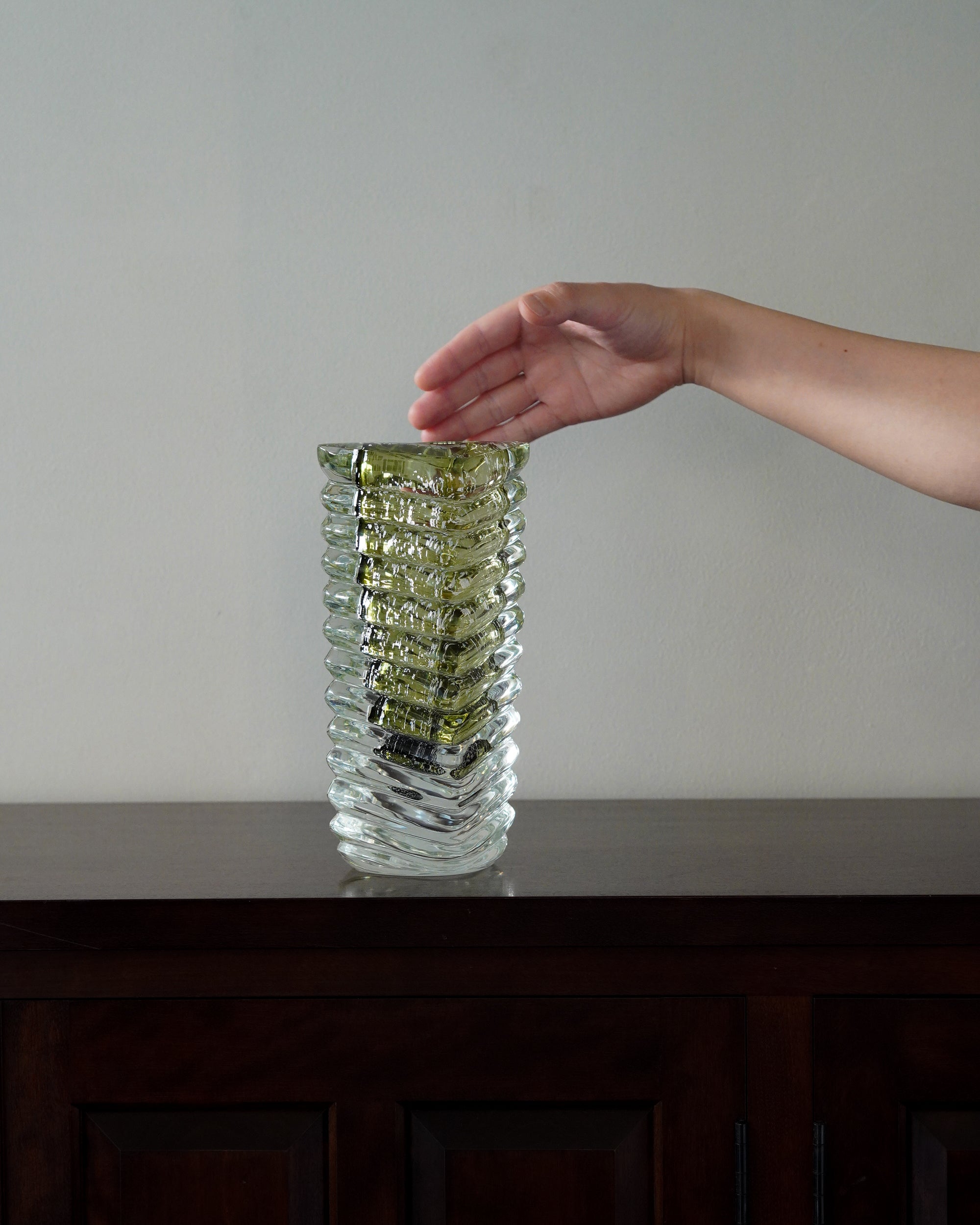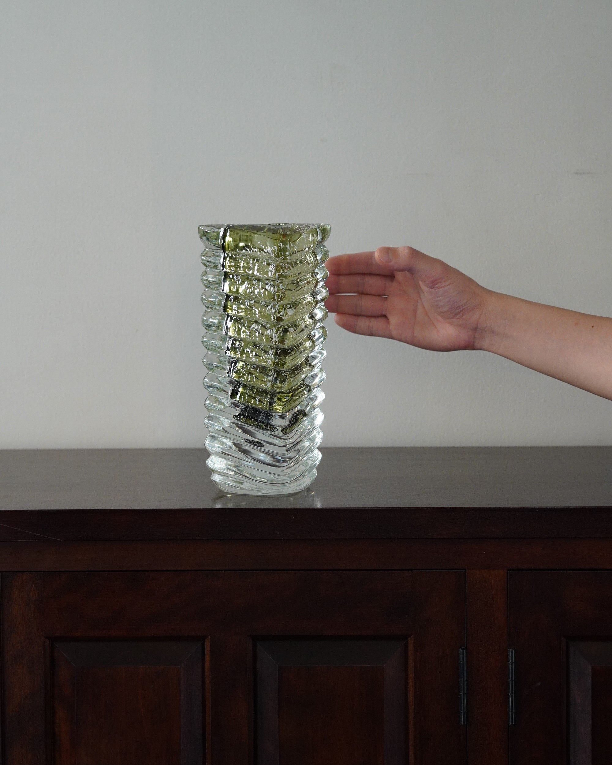 どっしりと重厚感のあるアンバー色と、まるで檜皮のように削り加工を施された高貴な武骨さを持つ非凡な花器。花を入れずとも十分な存在感を醸し出しますが、裏腹にどんなお花でも活けやすい広すぎない口径と、ガラスならではの繊細さも兼ね備えています。代表の小瀧曰く、ジリオ氏は、存命のマエストロ(上級職人)の中でムラーノ島一番と言っても過言ではない腕前とのこと。