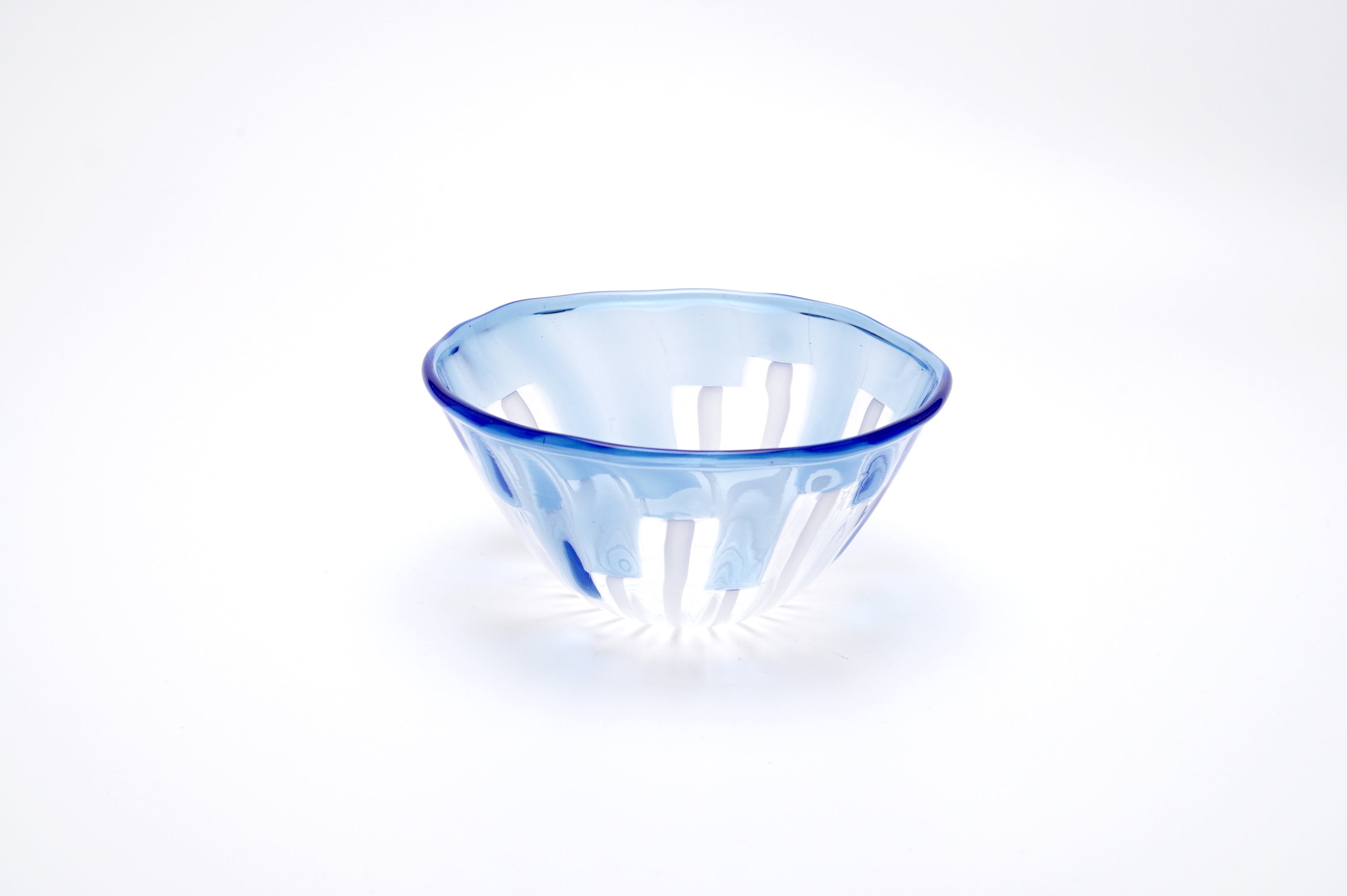 F&Mバラリン工房の作品は、鮮やかながら繊細な色遣いが最大の魅力です。手に取ると、想像よりも大変軽やかで、ガラスが熱を得てゆらゆらと、たゆたうさまをそのまま作品に残したようなフォルムも大変ムラーノガラスらしいと言えるでしょう。