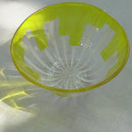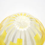 こちらのコロラートは、他の多くのムラーノガラス同様、縦方向にガラス棒が並べて使われています。しかし、一般的にはガラス棒はすべて同じ長さに整えてから成形するのに対し、色ガラス棒とフィリグラーナ(鉛筆の芯のように中心の白色のガラスを配したガラス棒)の長さを全ての列で異なる長さで組み合わせてから同じ長さにそろえるという、大変手間のかかる制作工程を踏んでいます。そのため、色ガラスの長さがランダムで、ユニークな表情をみせています。