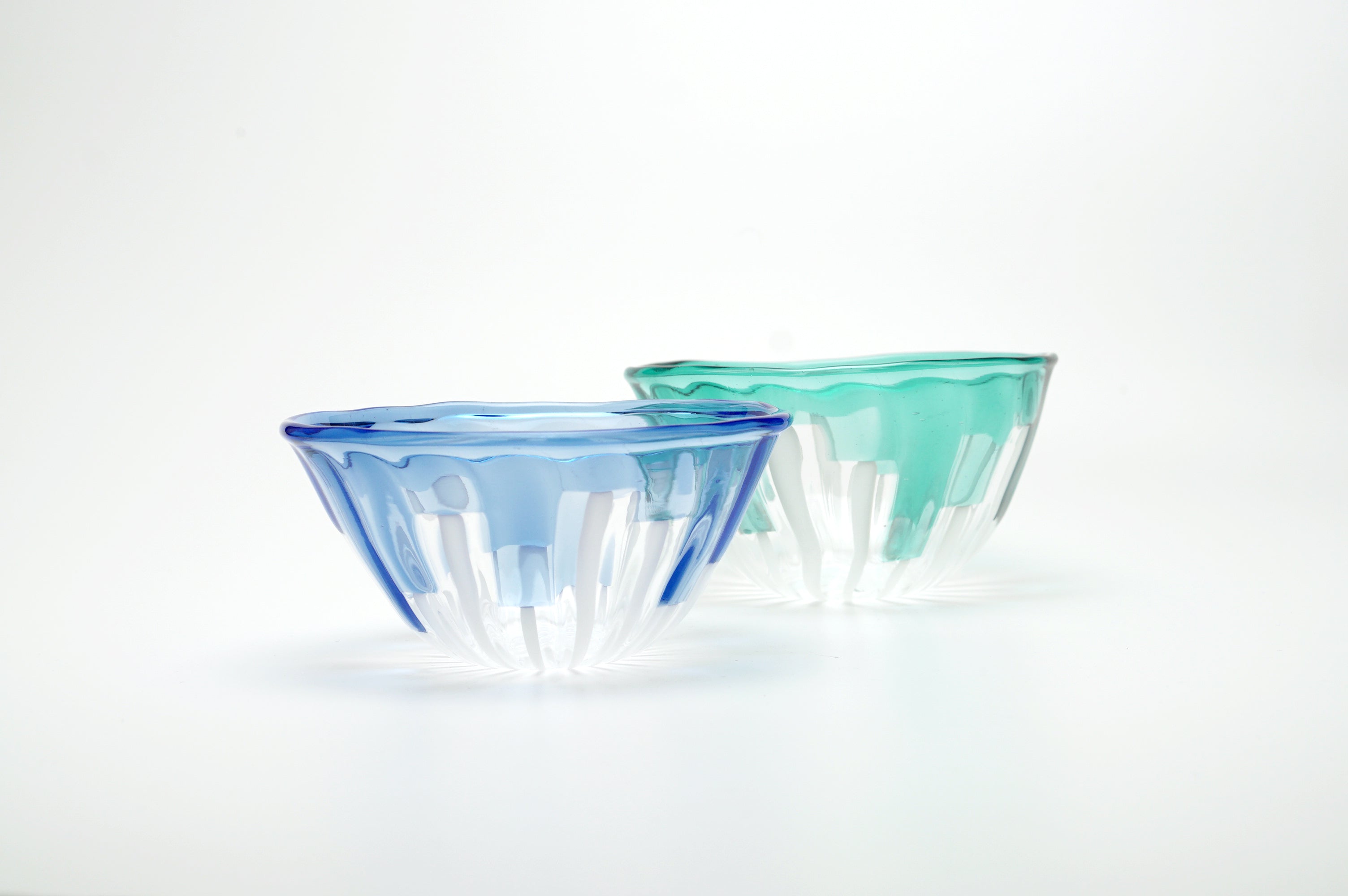 F&Mバラリン工房の作品は、鮮やかながら繊細な色遣いが最大の魅力です。手に取ると、想像よりも大変軽やかで、ガラスが熱を得てゆらゆらと、たゆたうさまをそのまま作品に残したようなフォルムも大変ムラーノガラスらしいと言えるでしょう。