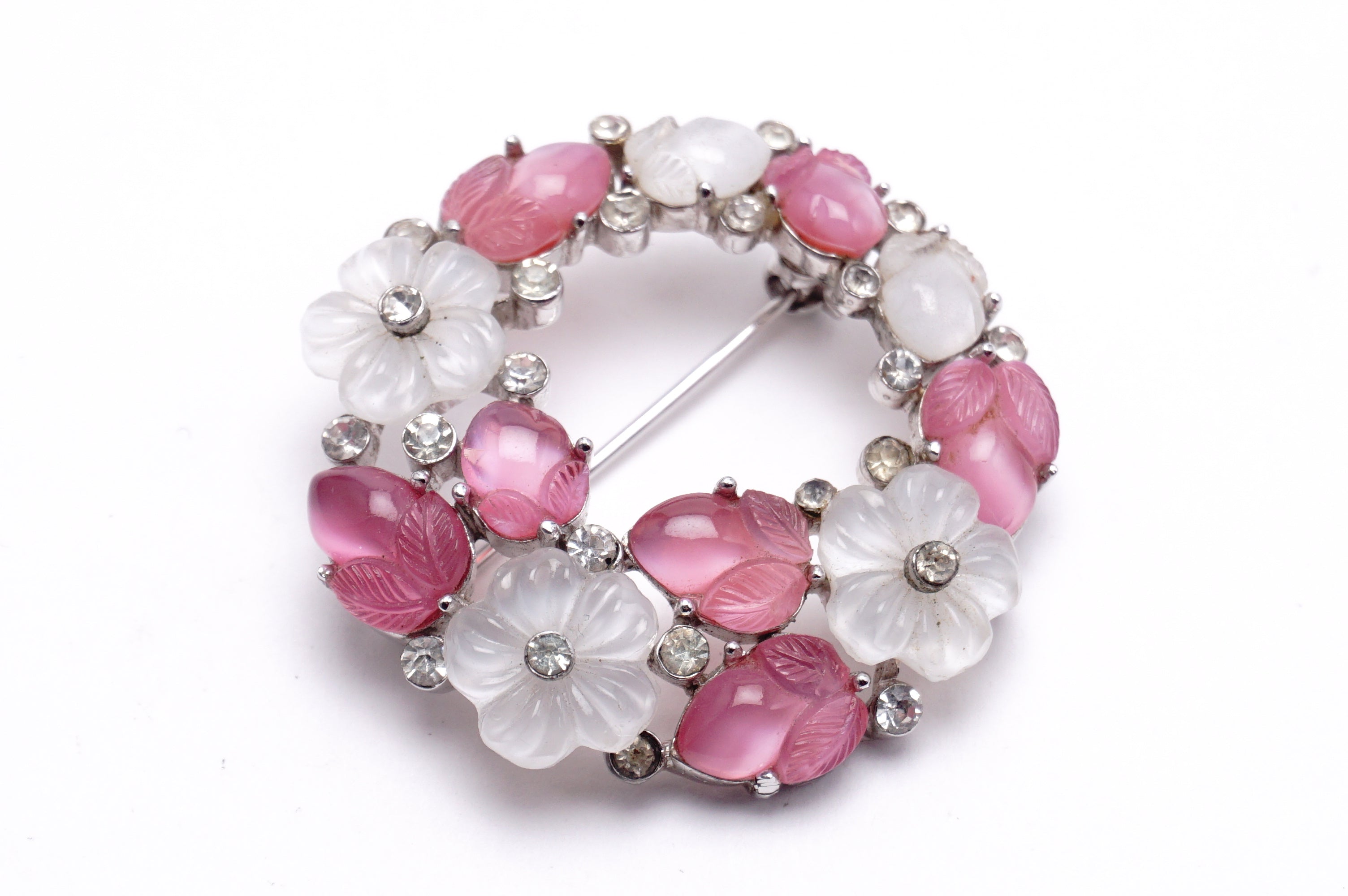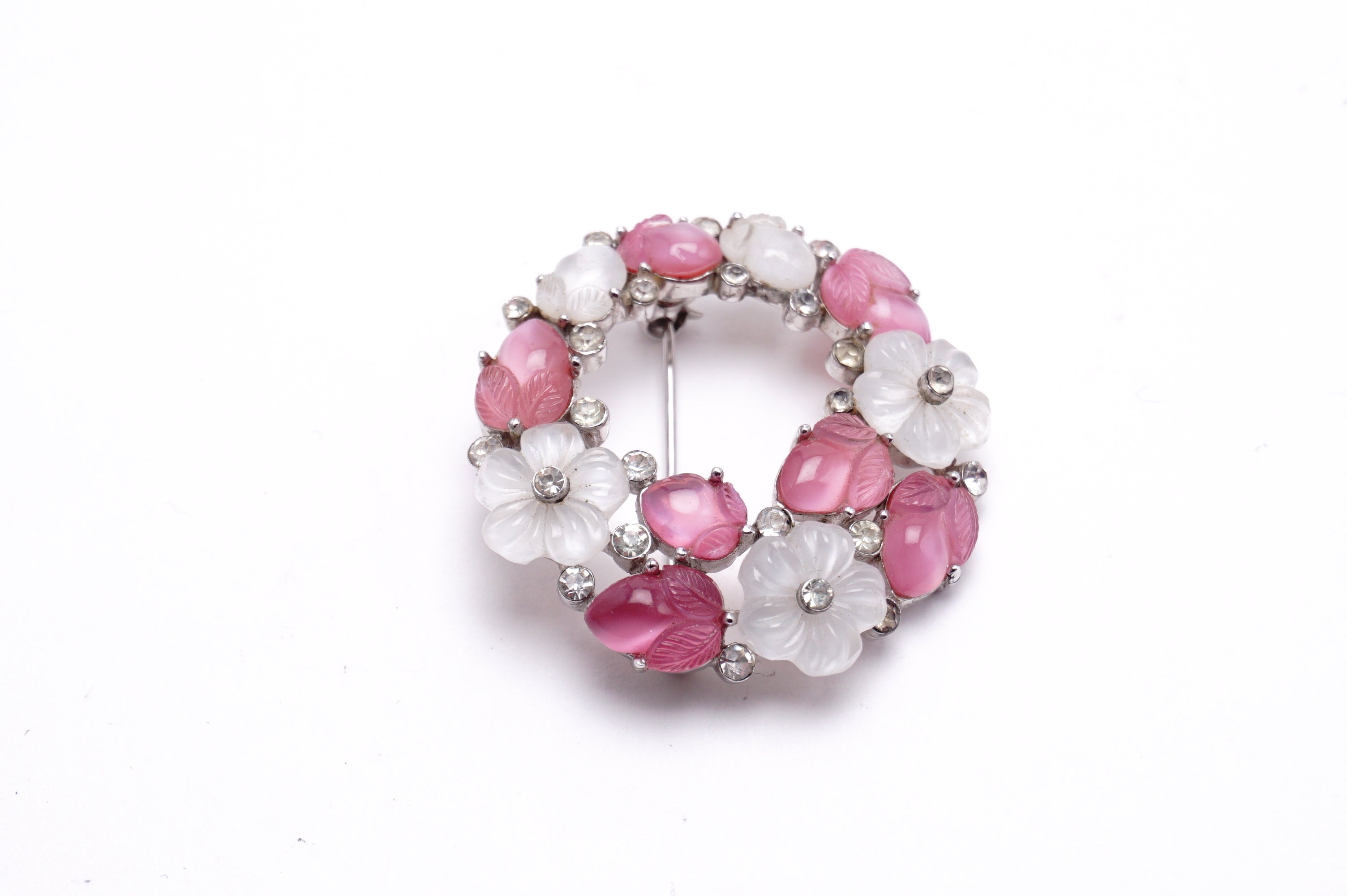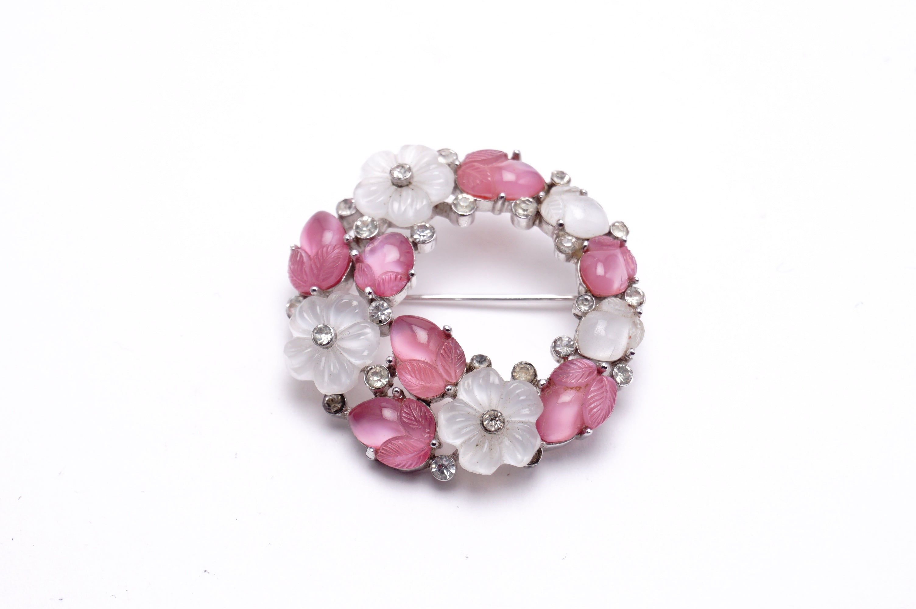 Trifari フルーツサラダ ムーンストーン サークル ブローチ ピンク A.Philippe 1940`s CJ-MW-20026 27
