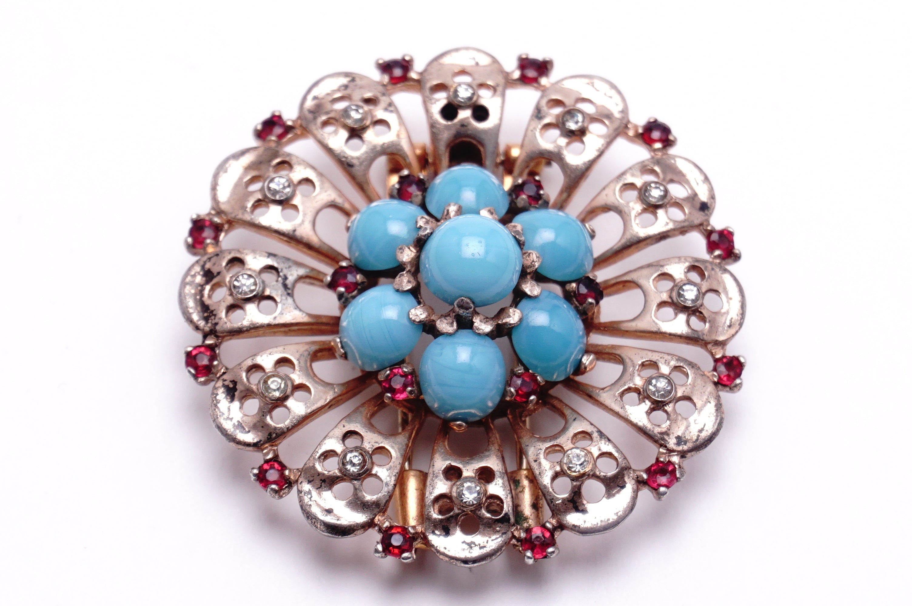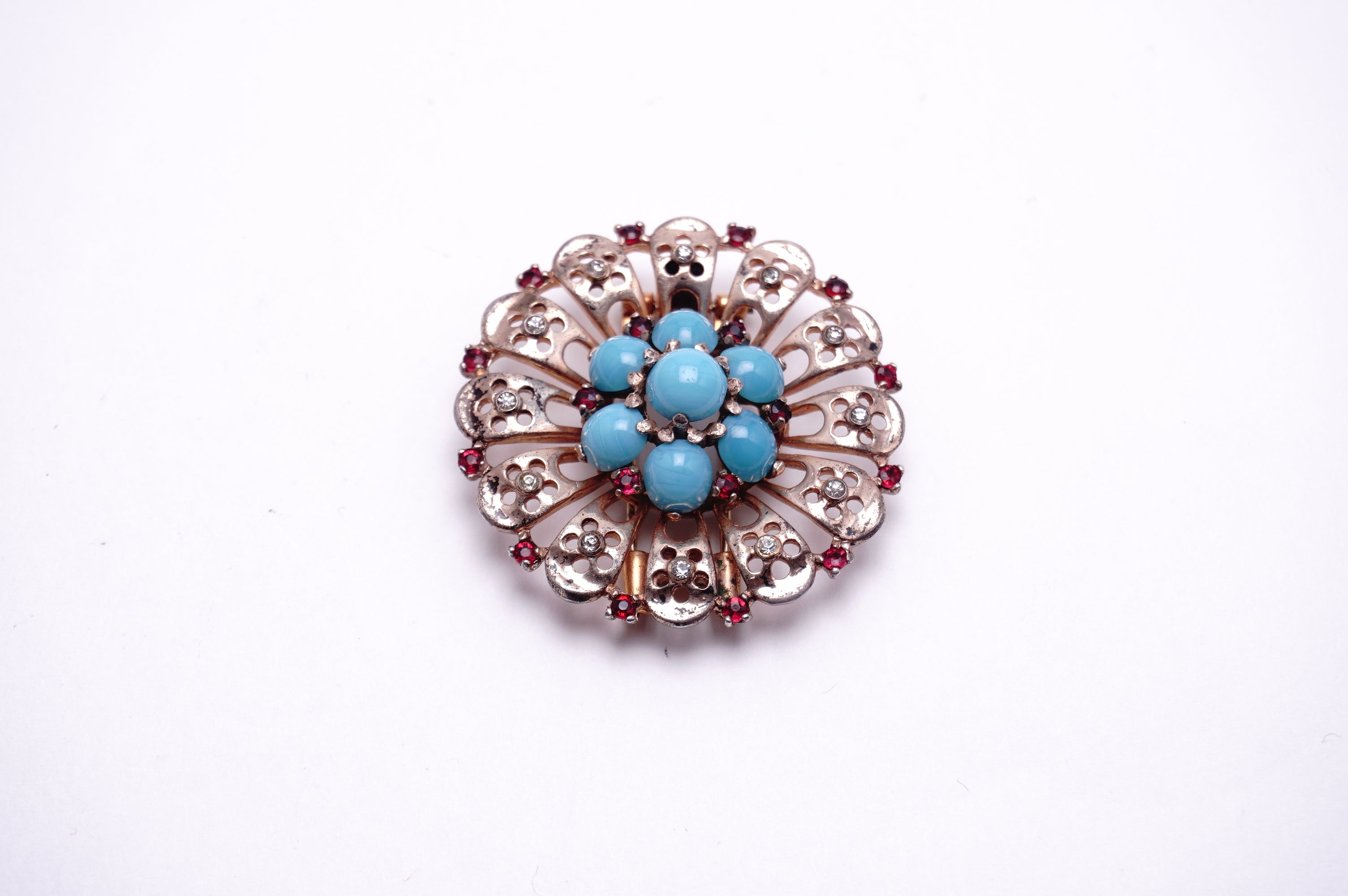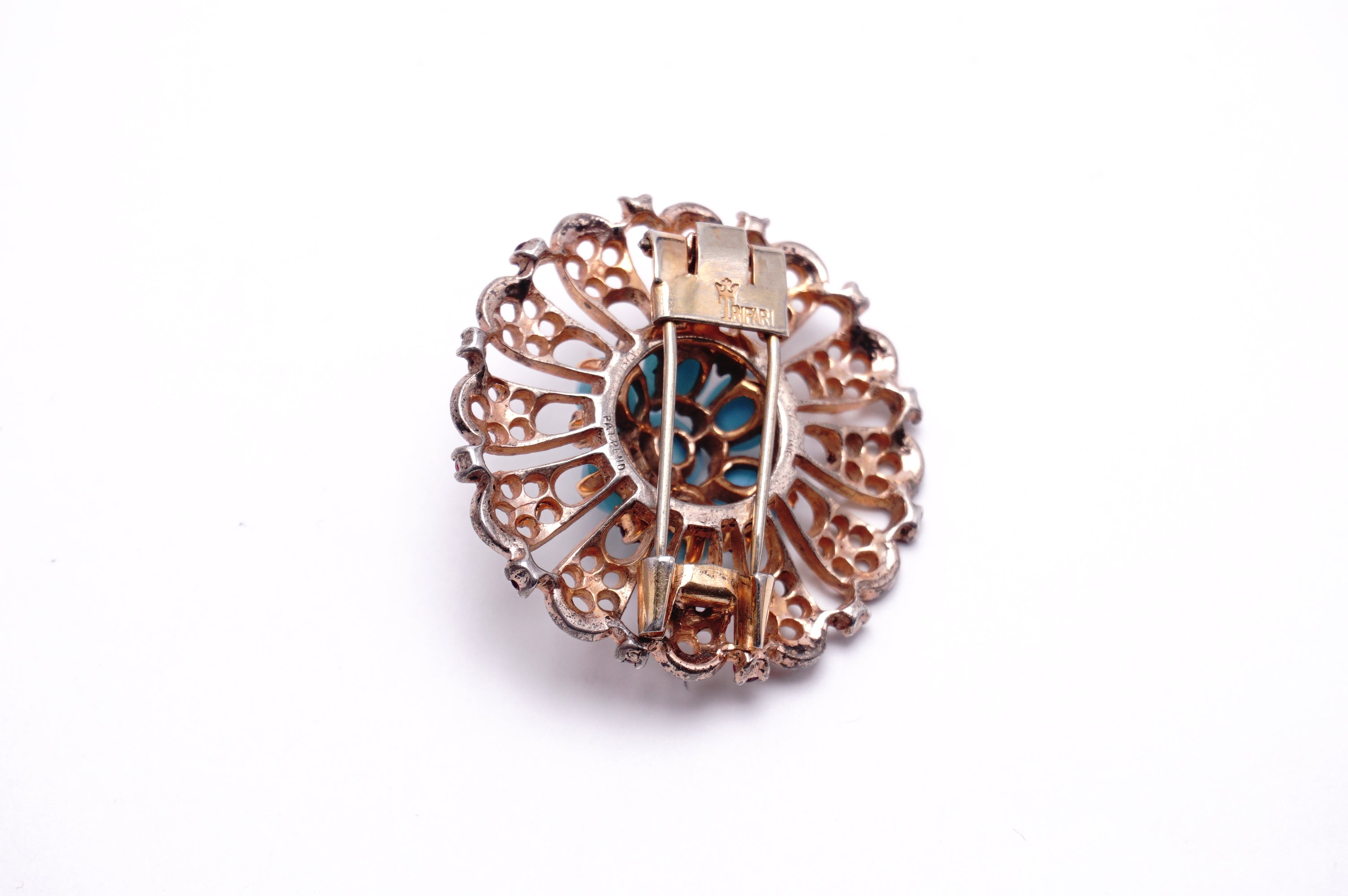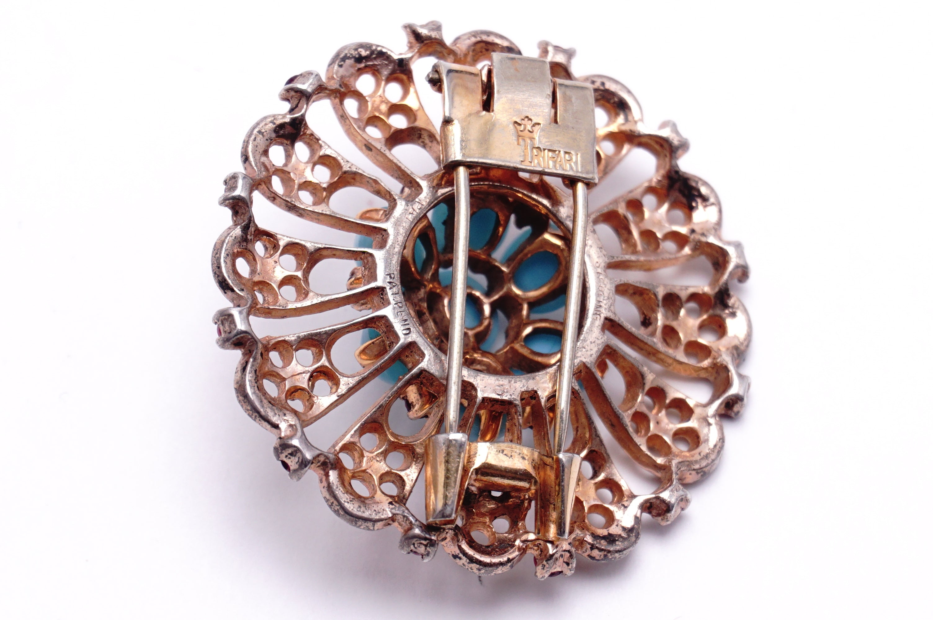 Trifari ゴールド トルコブルー フラワー ブローチ A.Philippe 1940‘s CJ-MW-20018 20
