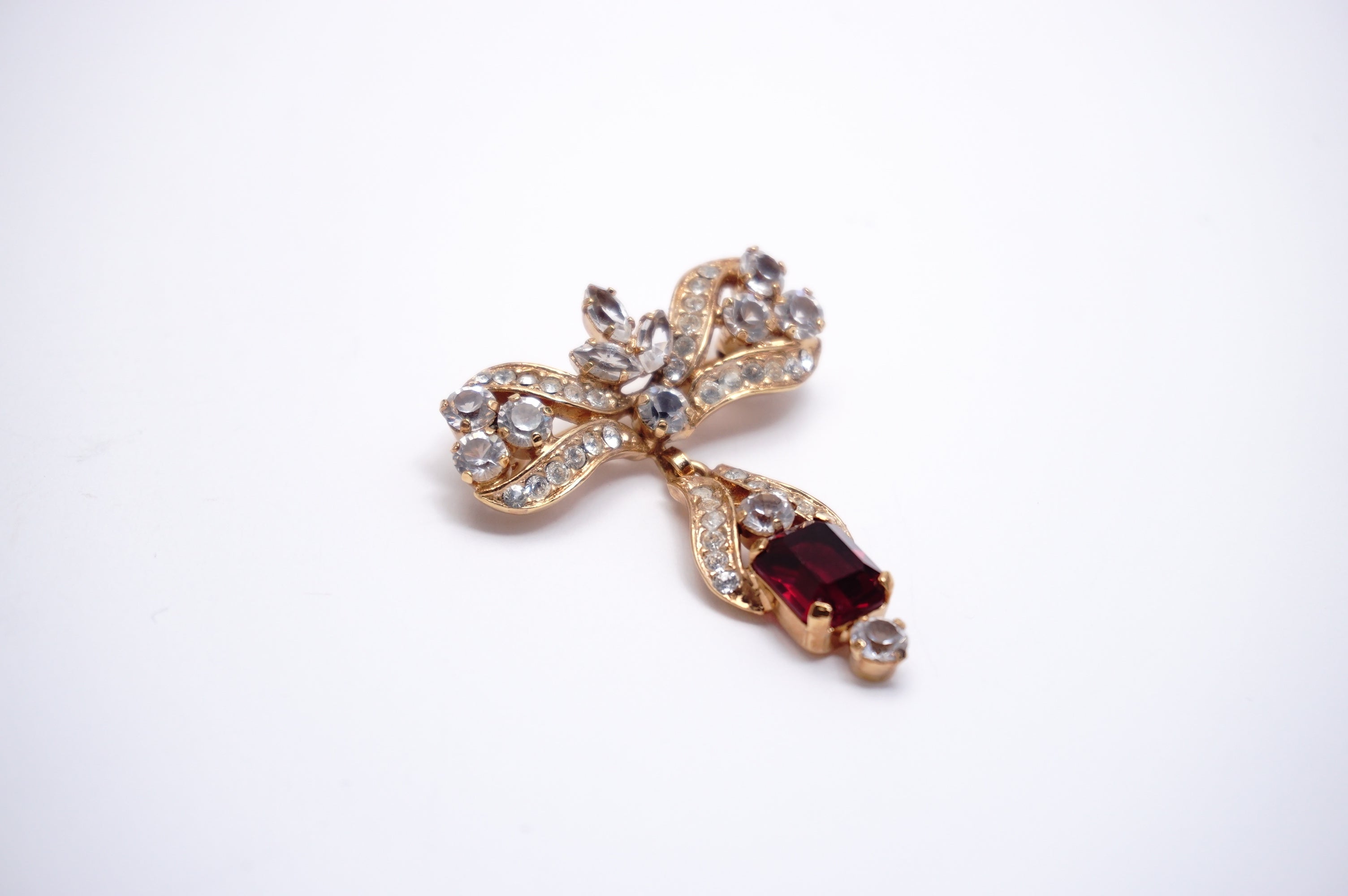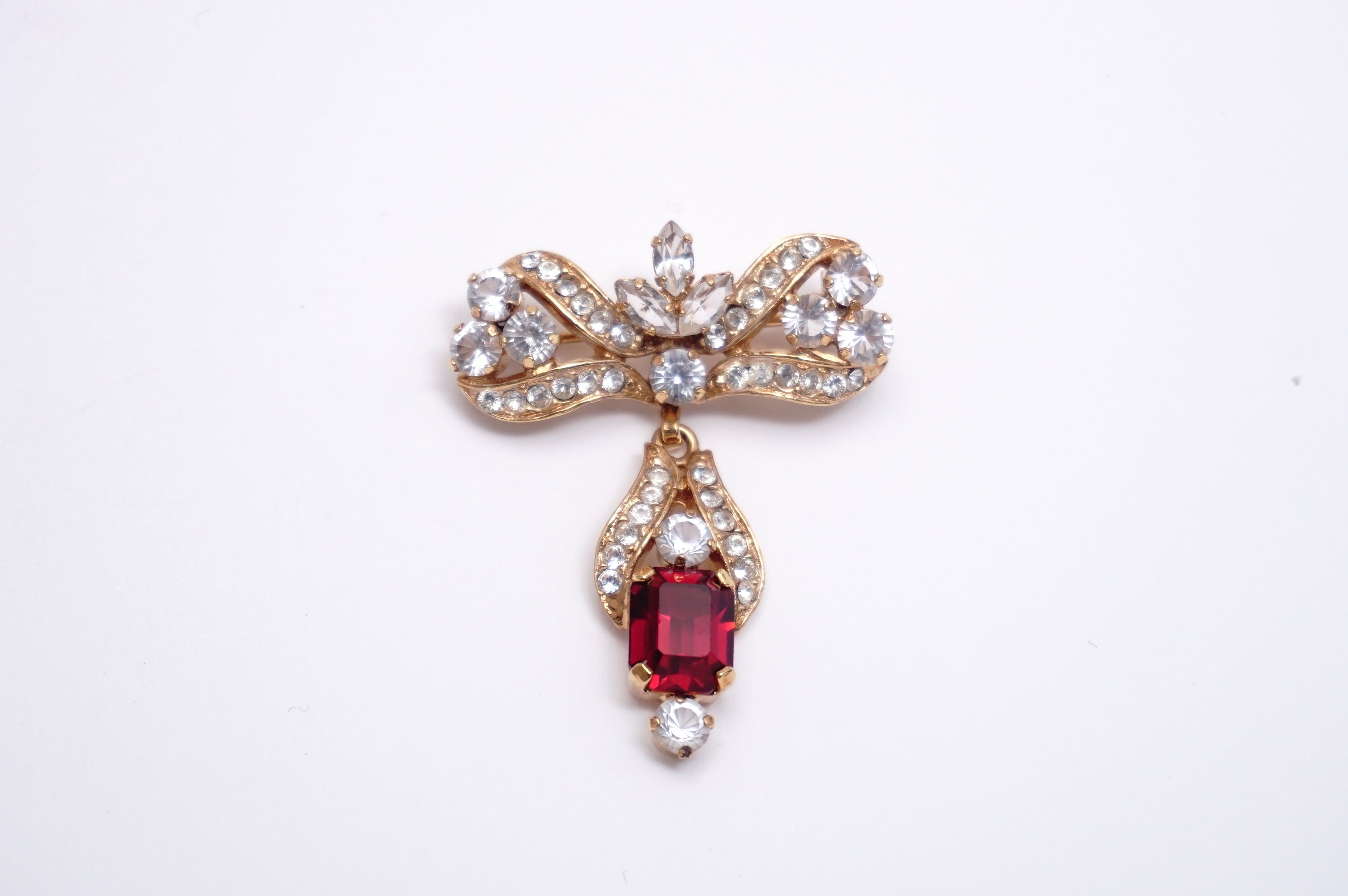 ドロップ 赤 クリスタル ブローチ オーストリア CJ-BE-11020