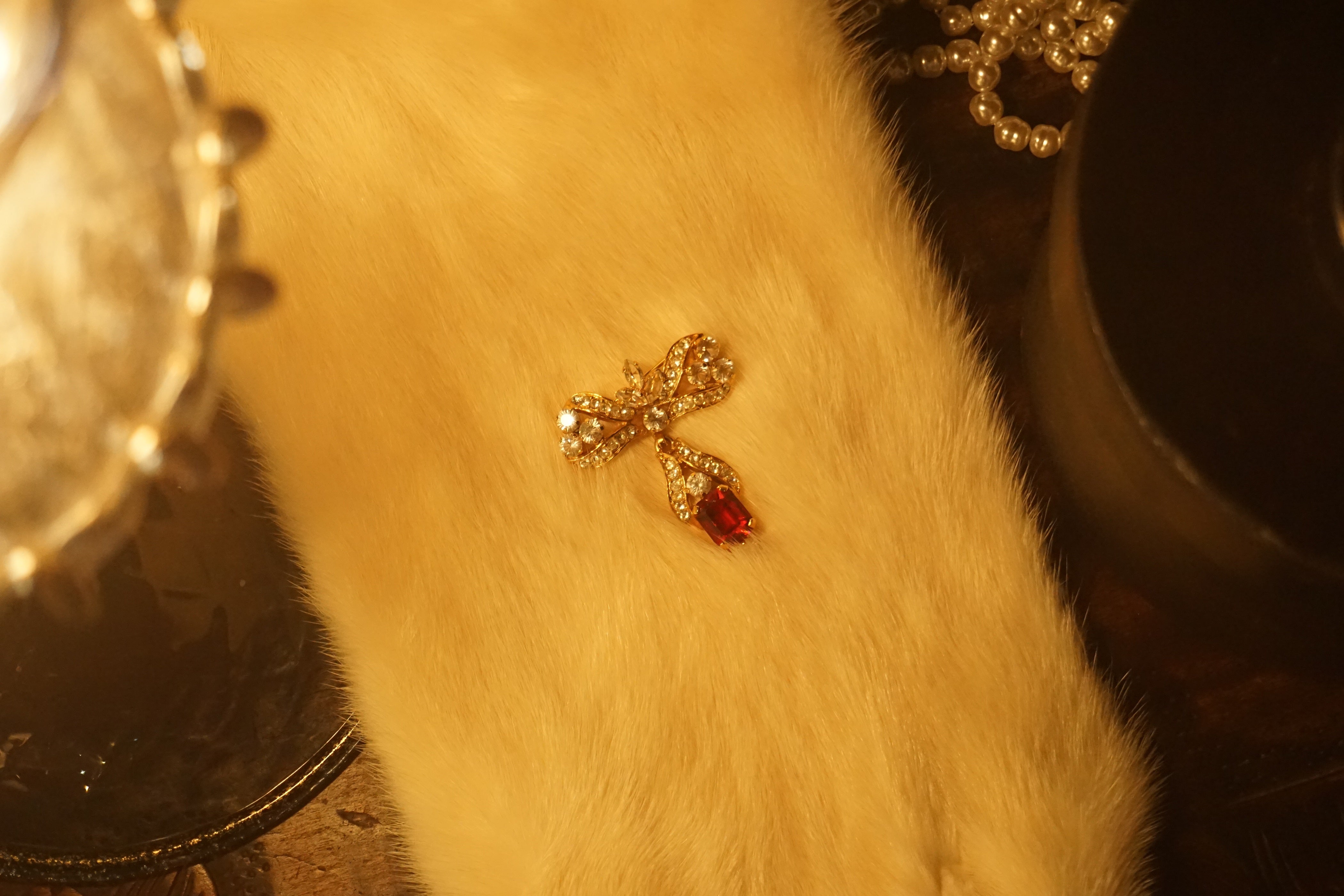 デザインを最優先したコスチュームジュエリーです。非常にデリケートな素材・つくりになっておりますので、お取り扱いには十分ご注意下さいませ。