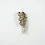南国の葉っぱなのか、波のようにも見える力強さを持つスタイリッシュなデザインのブローチです。葉の内側にもラインストーンと彫りが入り立体感があります。海外ではダンスの文化があったため、どこから見られても大丈夫なように立体的に表情があるデザインで作られているらしいです。