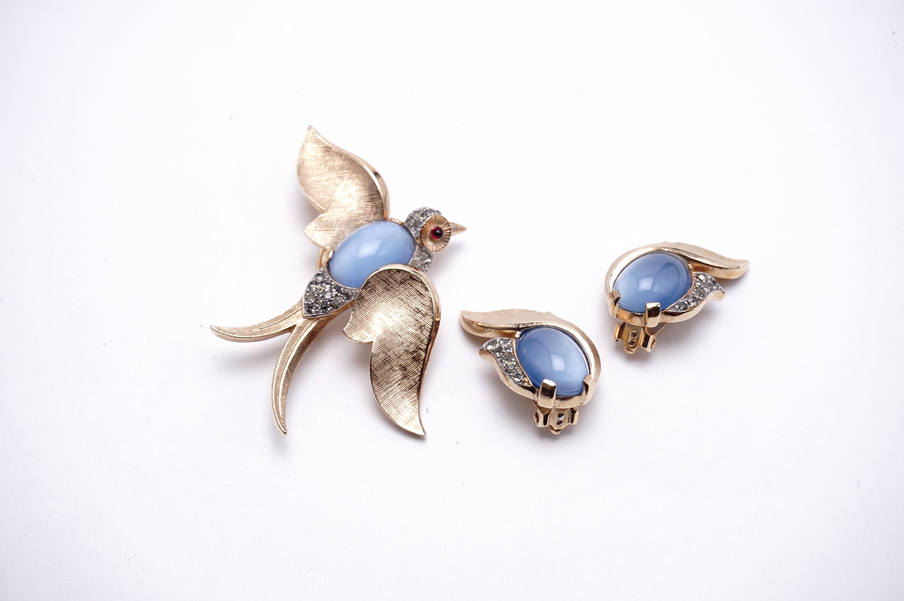 Trifari ムーンストーン 「flying bird」 ブローチ/イヤリング セット 1960‘s  CJ-WW#-17068 86
