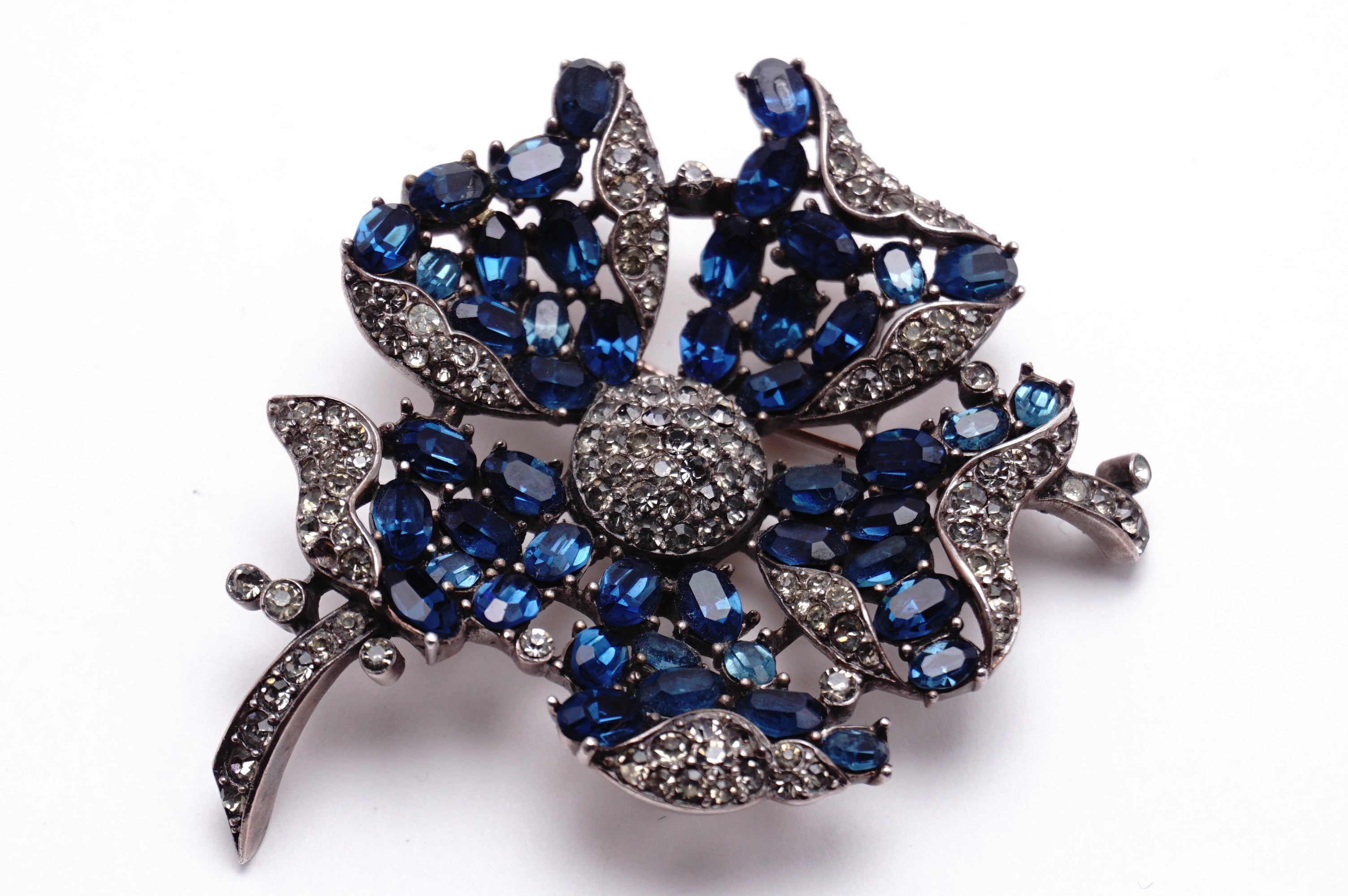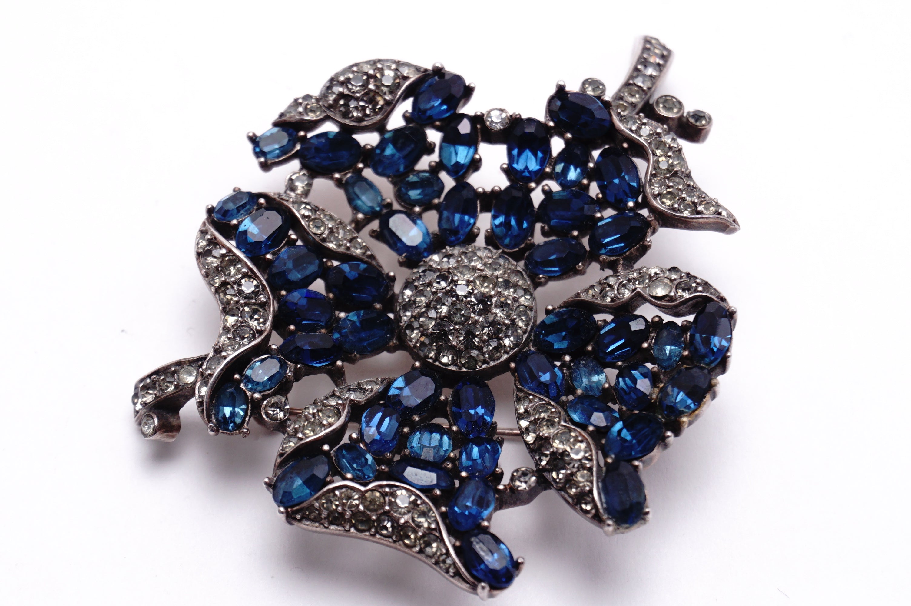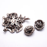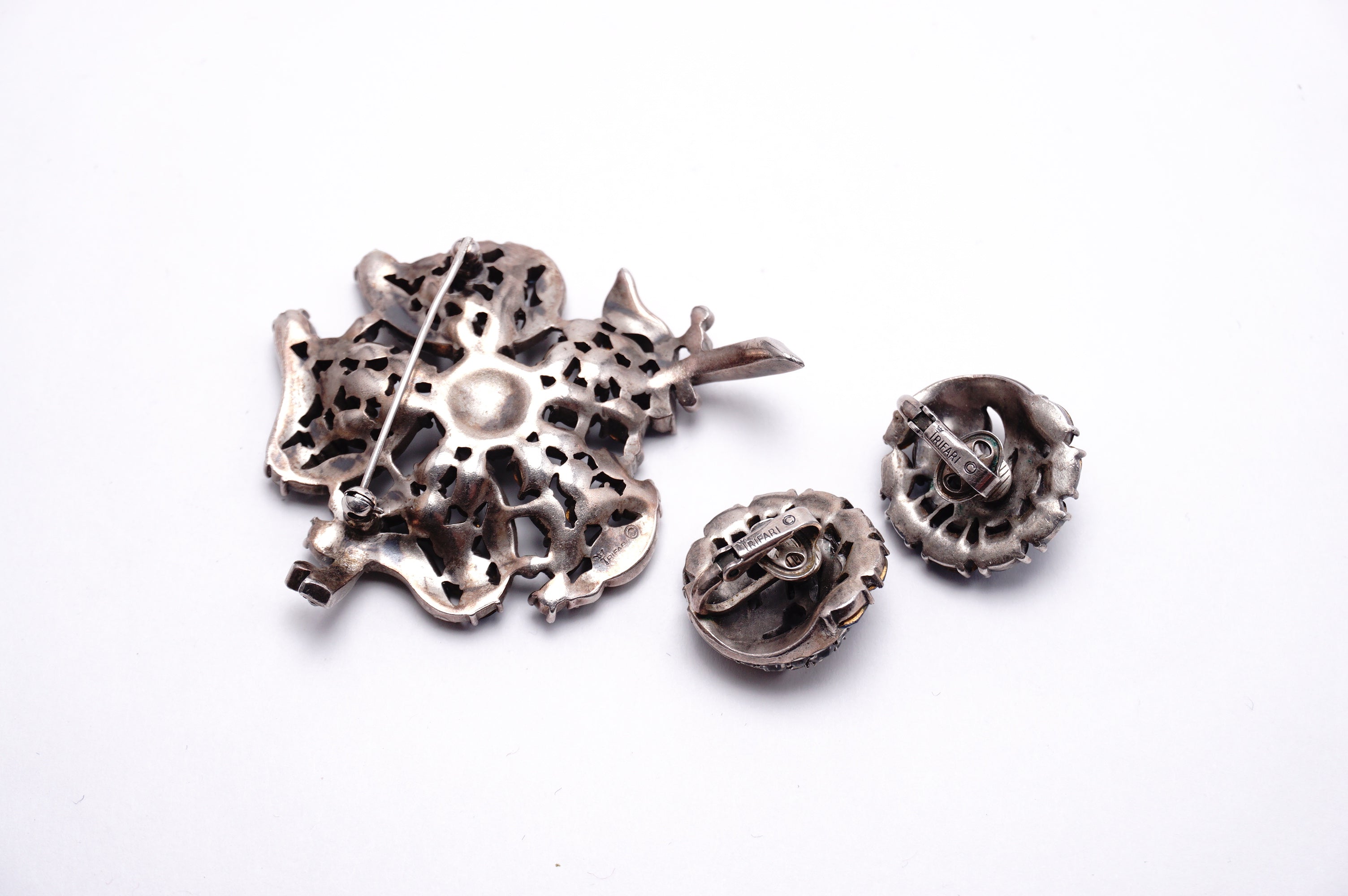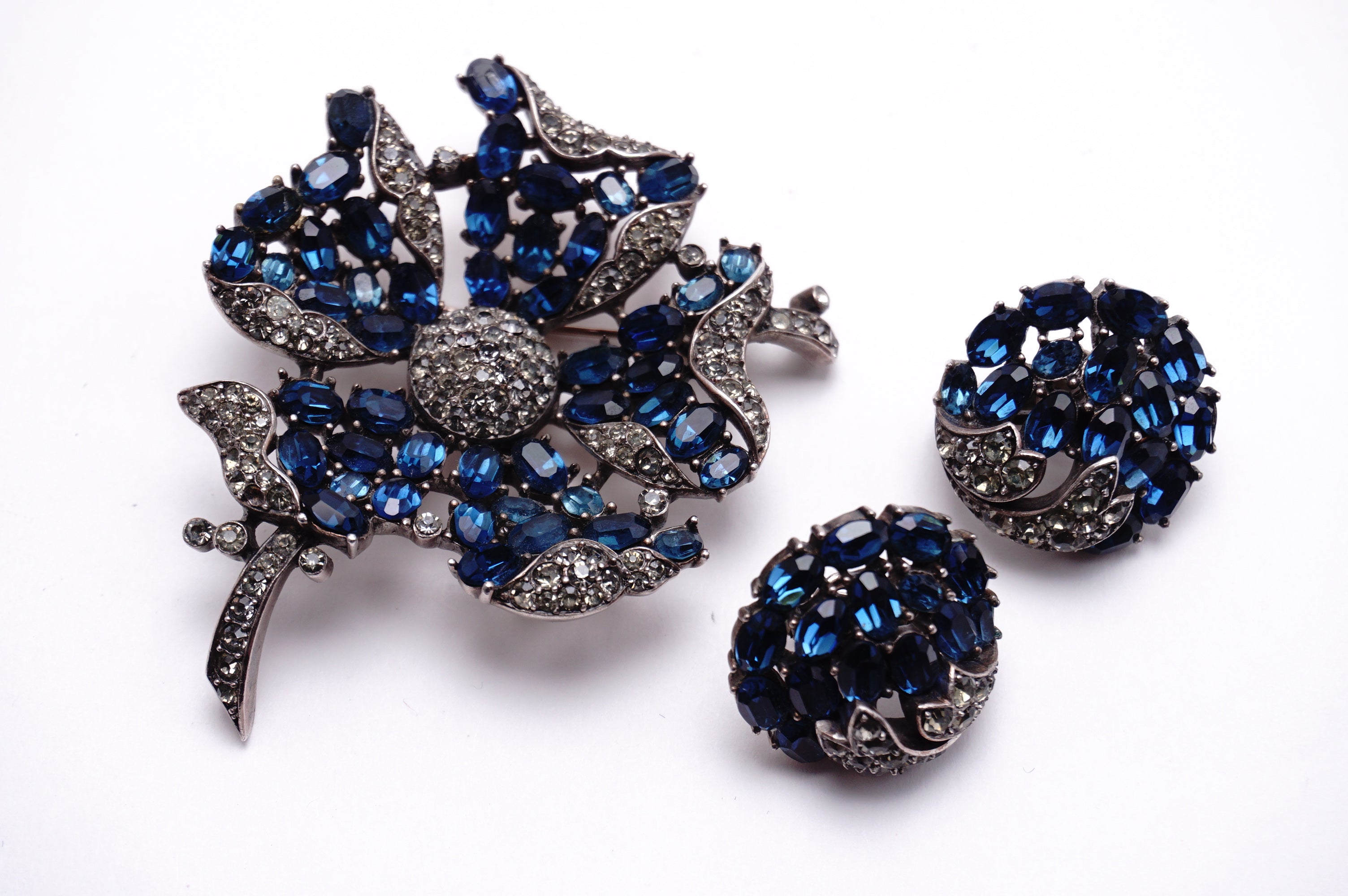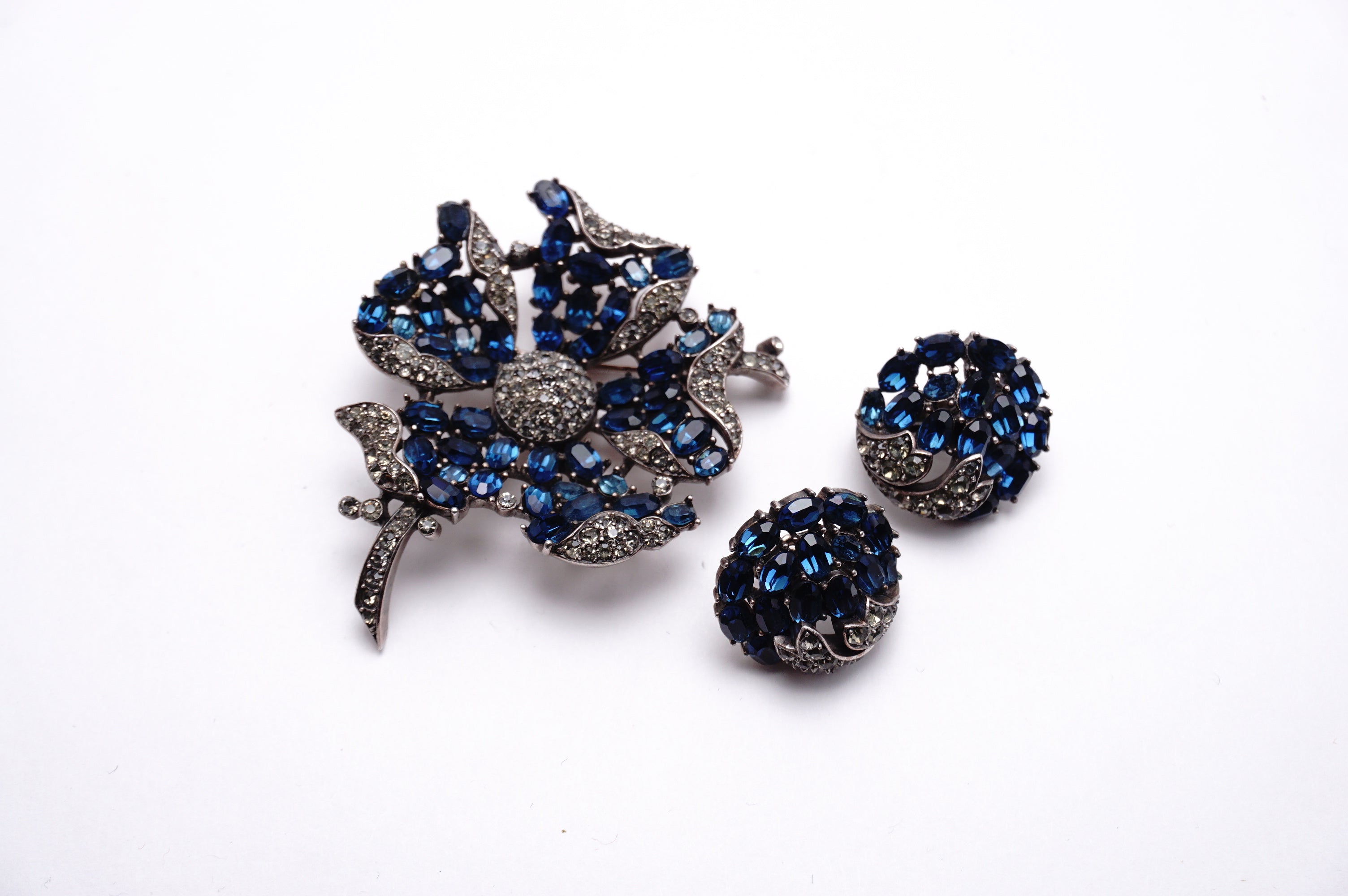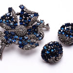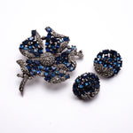 Trifari グレー/サファイア ペイスト 花 ブローチ/イヤリング セット 1950‘s  CJ-WW#-16095 107