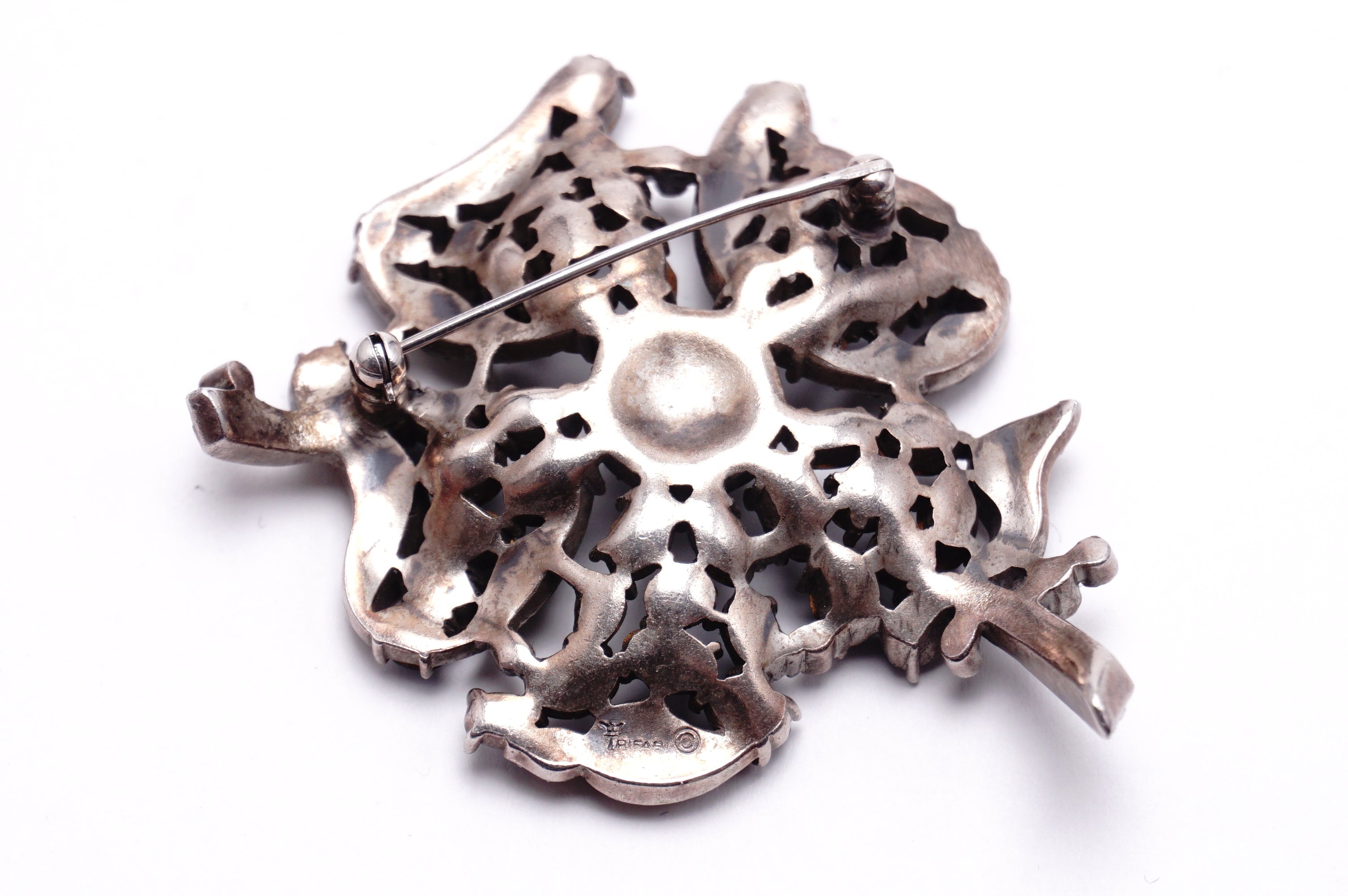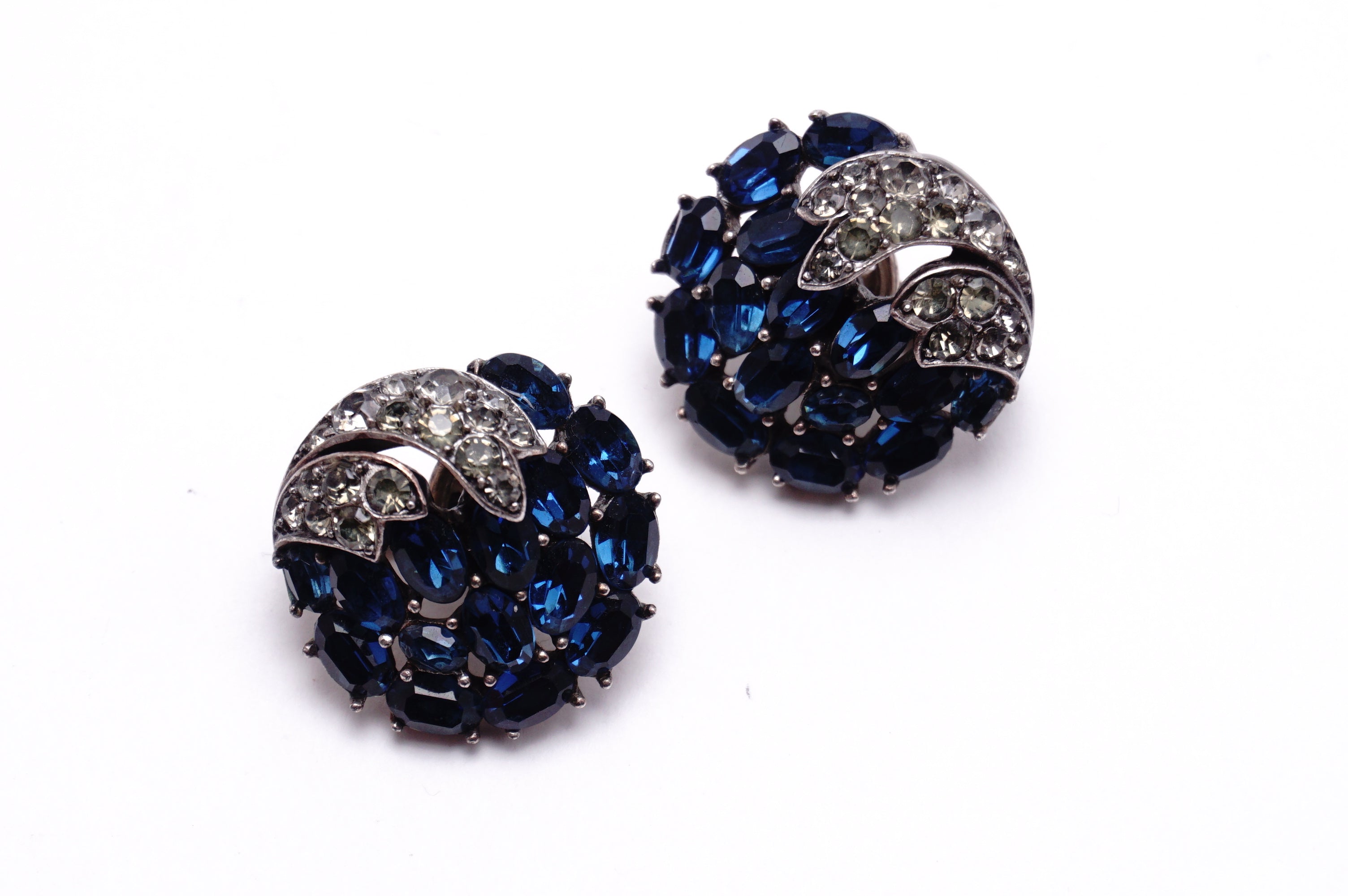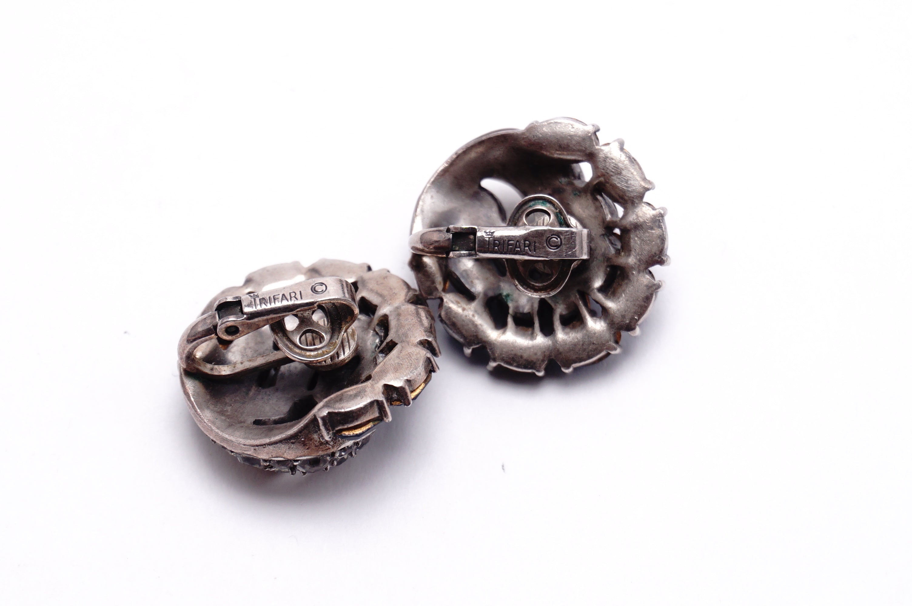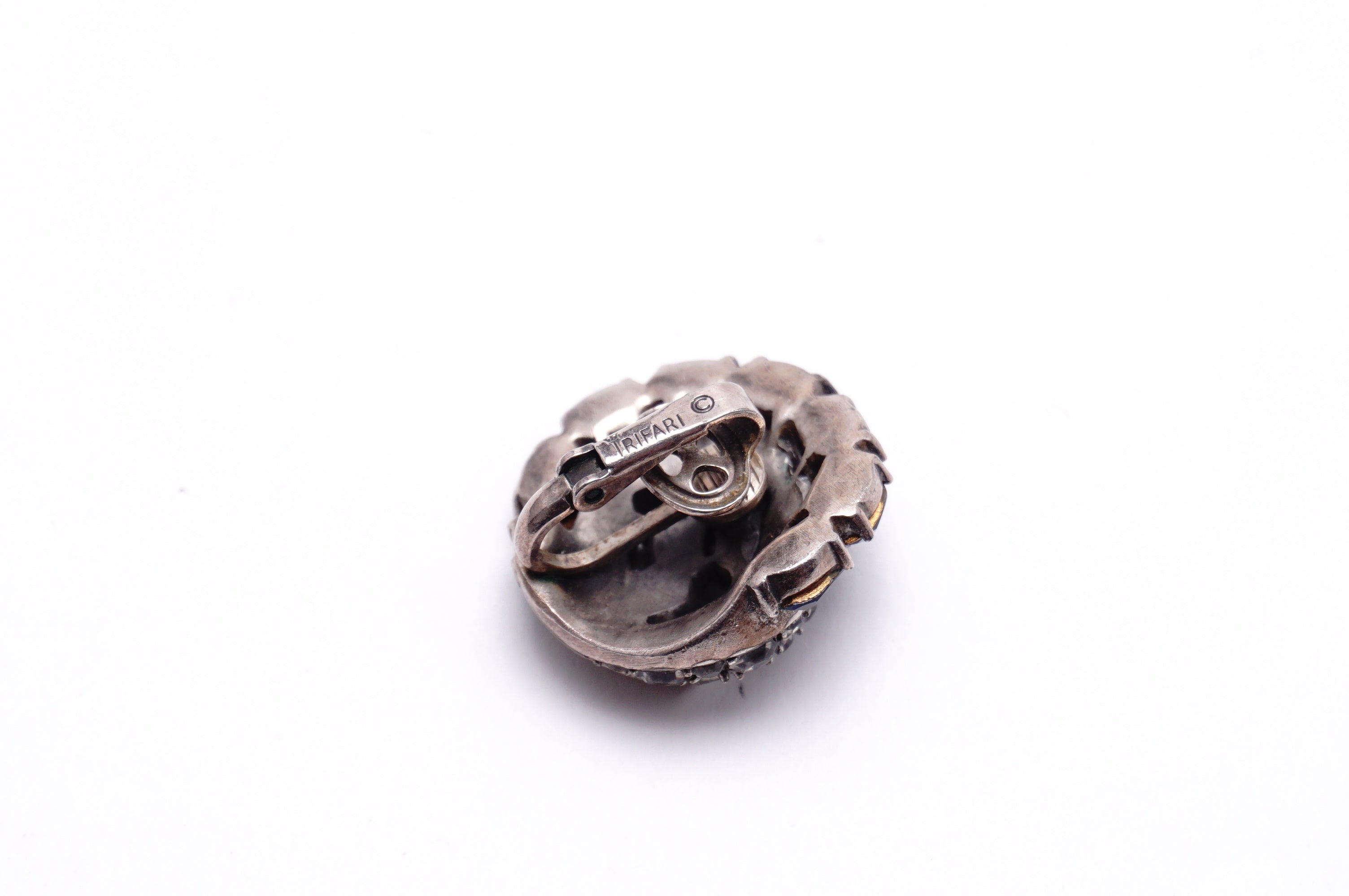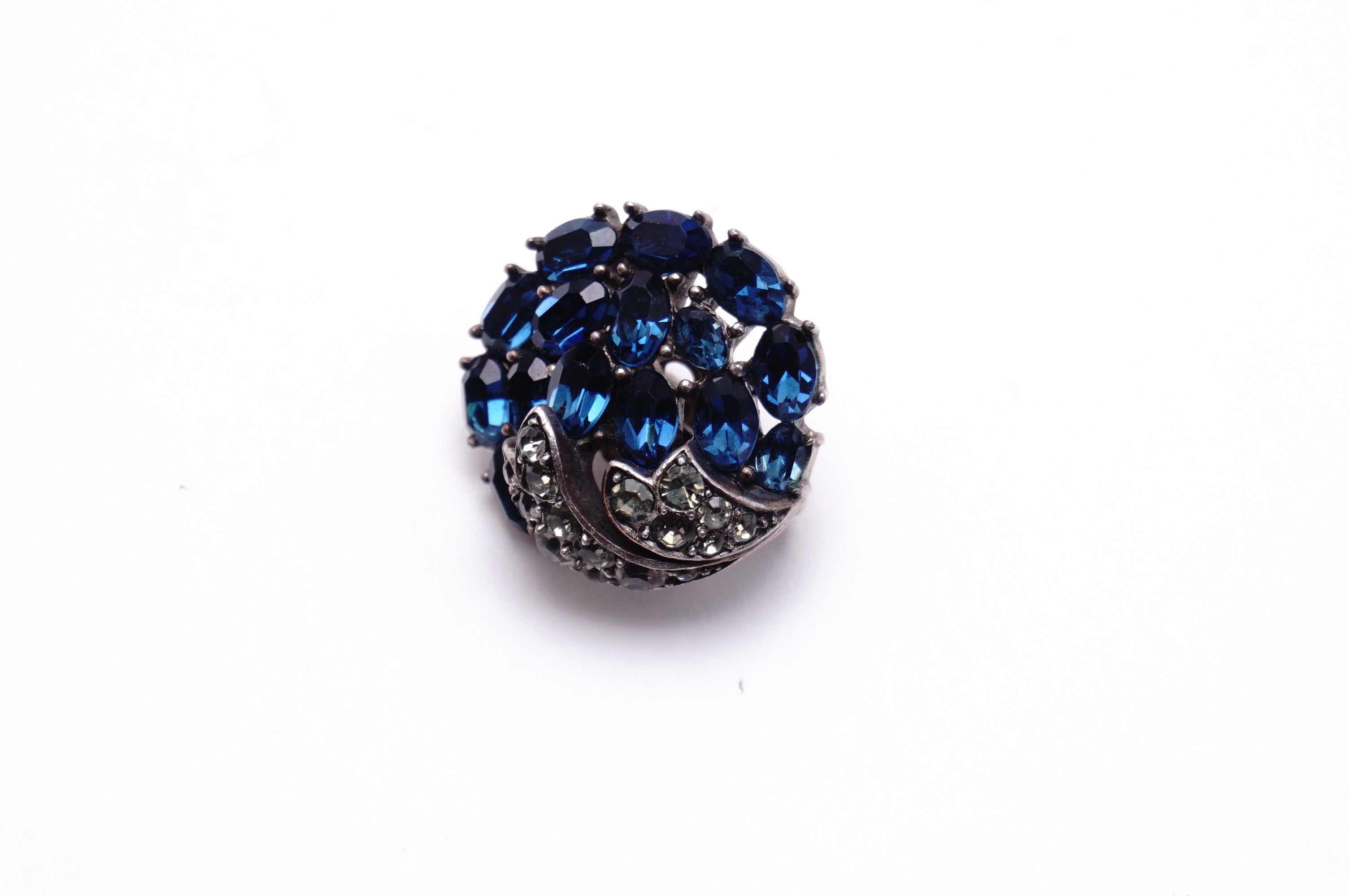 Trifari グレー/サファイア ペイスト 花 ブローチ/イヤリング セット 1950‘s  CJ-WW#-16095 107