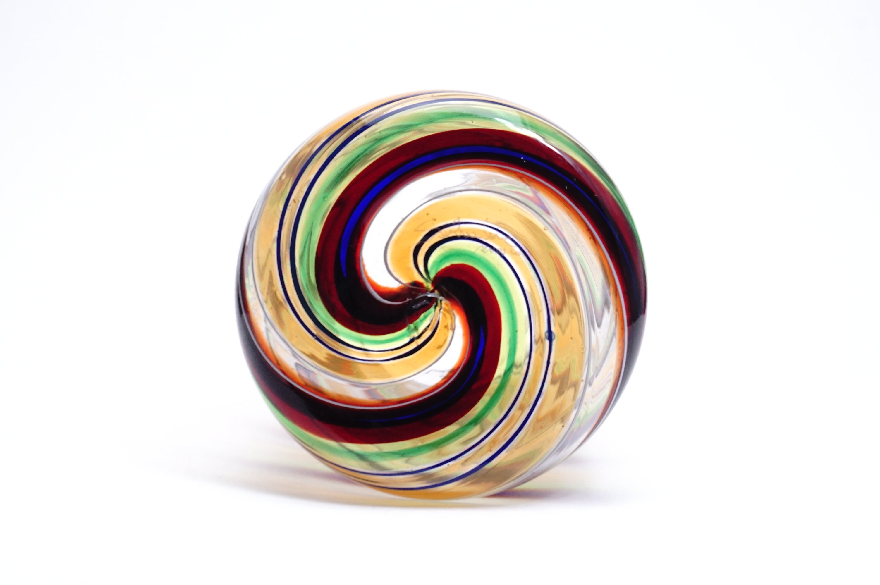 吹きガラスにおいては、制作途中に発生する小さな気泡や黒点、底面にポンテ跡(吹き竿を外した際の凹凸)がある場合がございます。