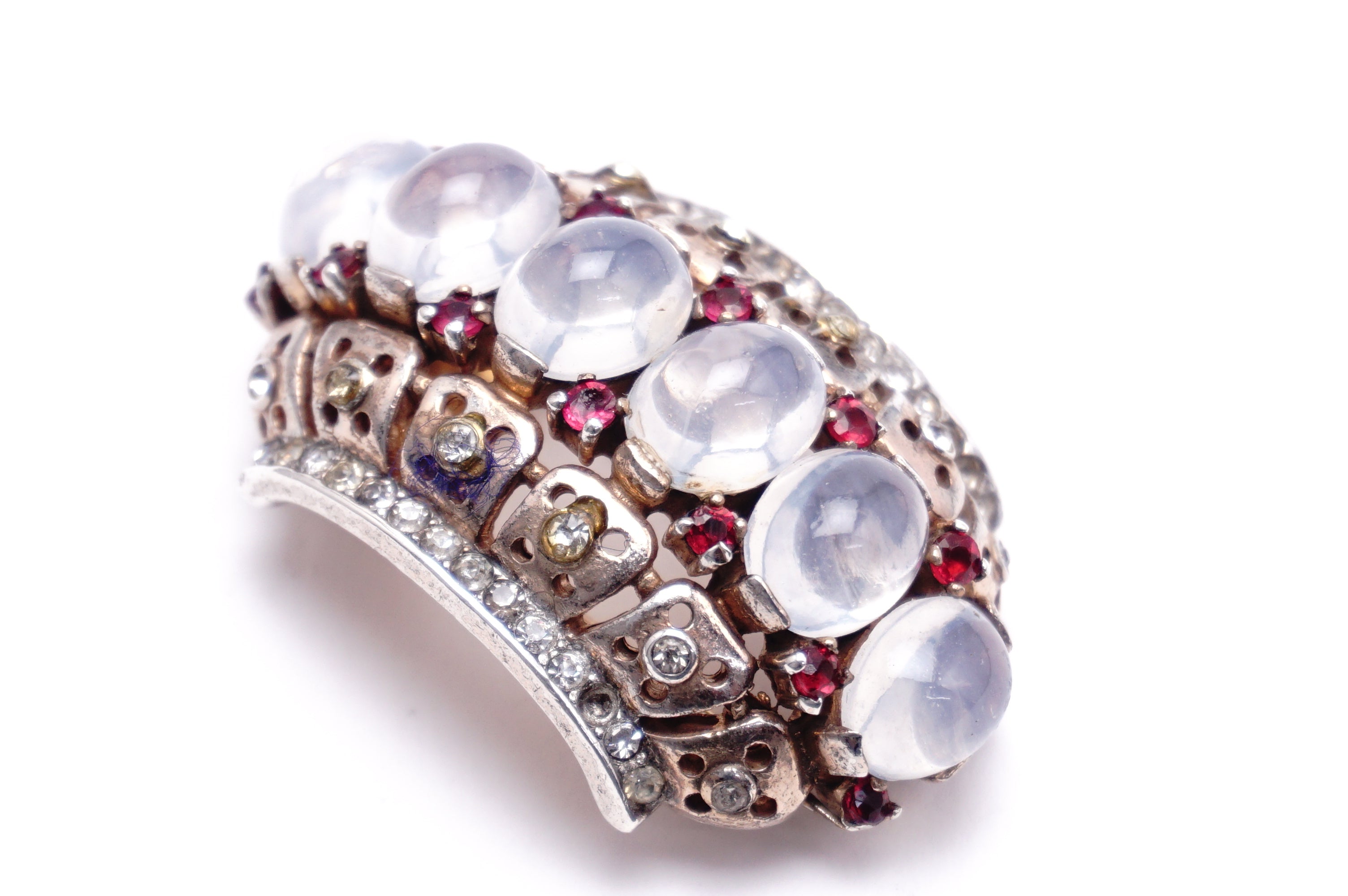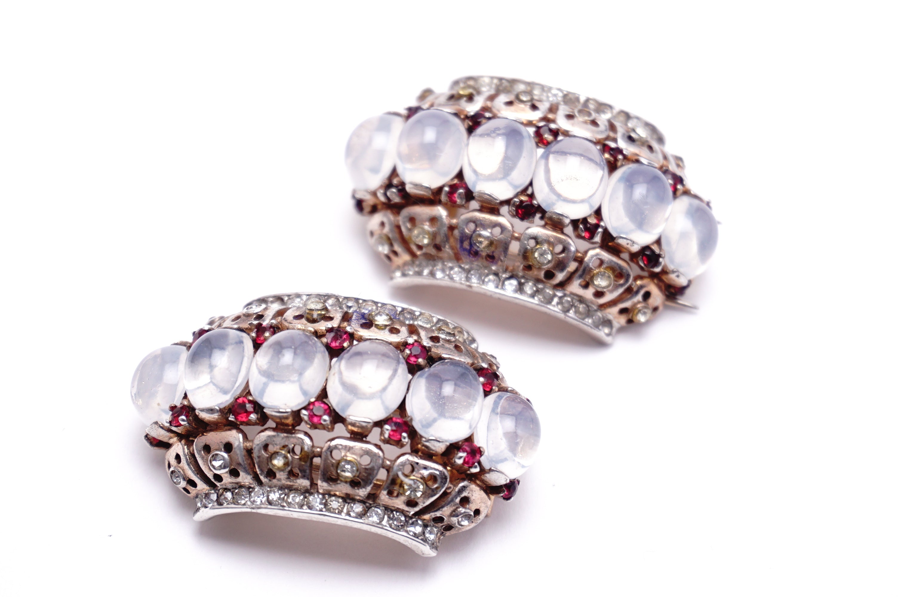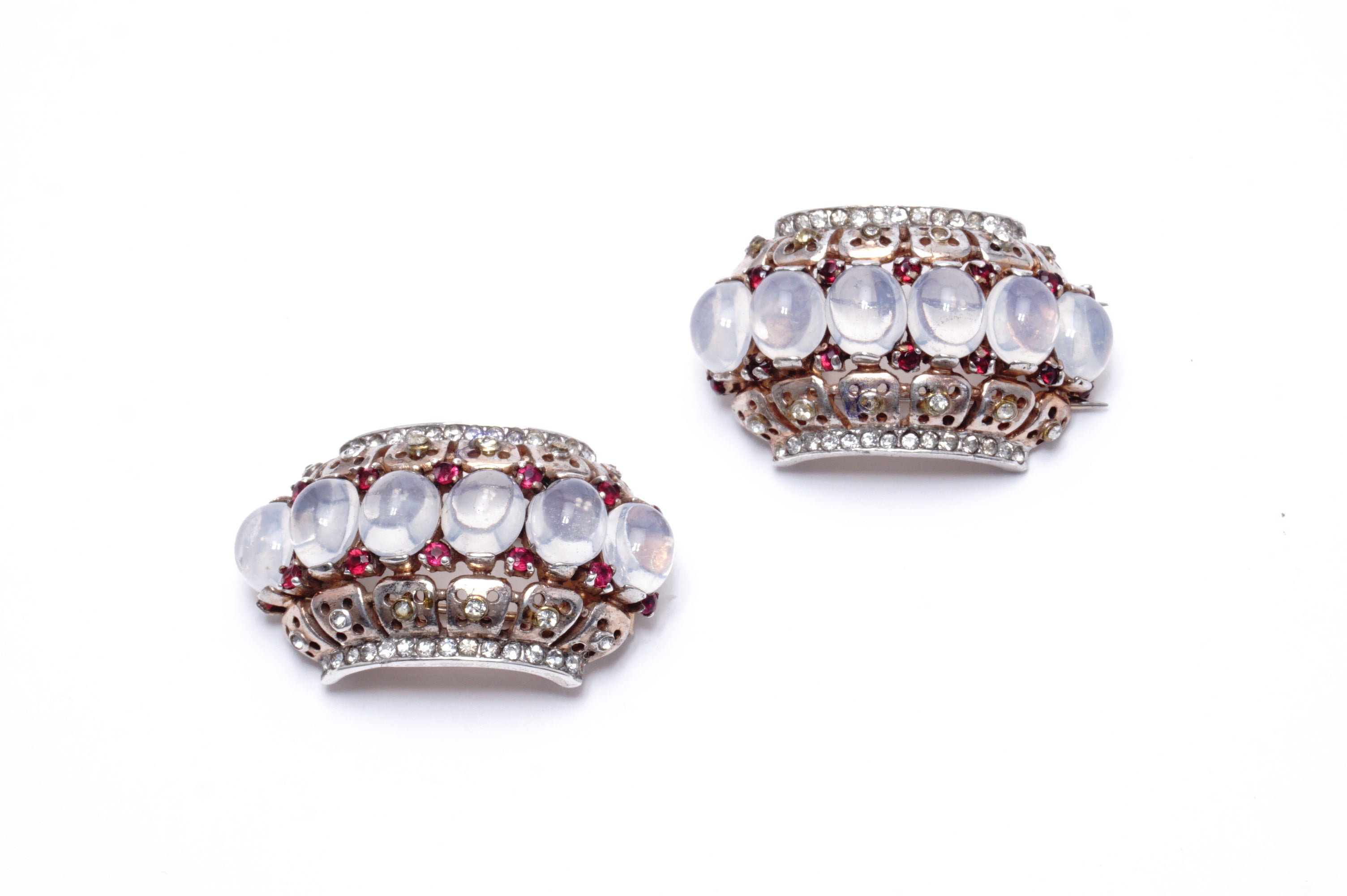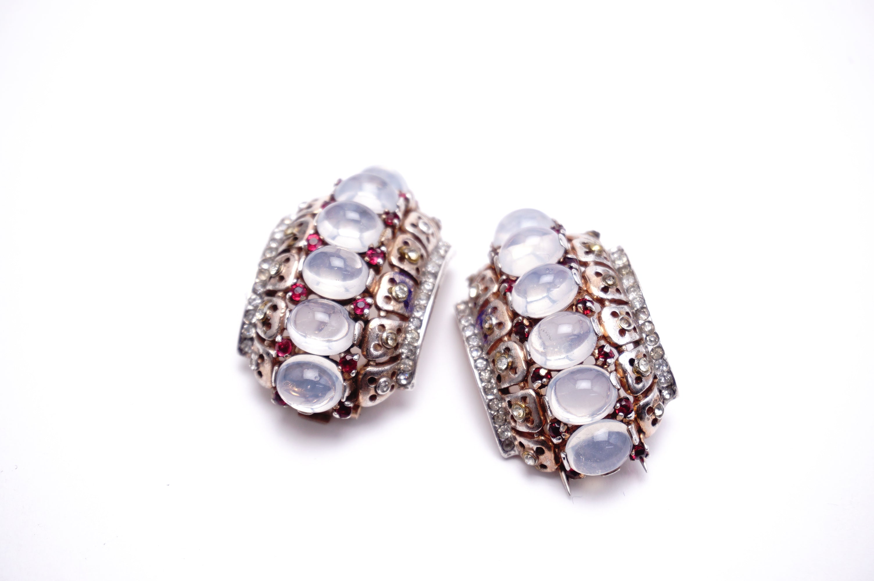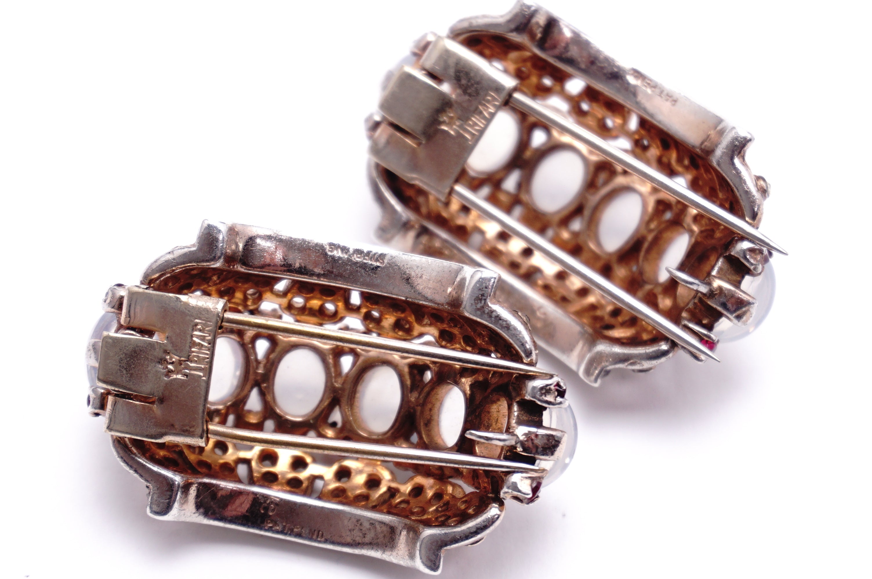 Trifari ムーンストーン ルビーペイスト ペアクリップ USA CJ-WW#-19049 75
