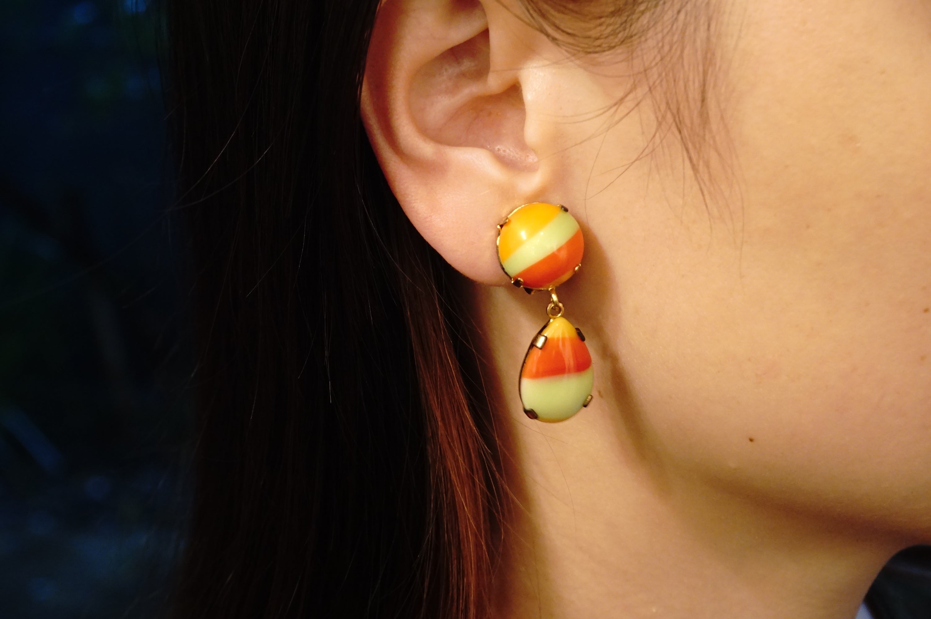 デザインを最優先したコスチュームジュエリーです。非常にデリケートな素材・つくりになっておりますので、お取り扱いには十分ご注意下さいませ。