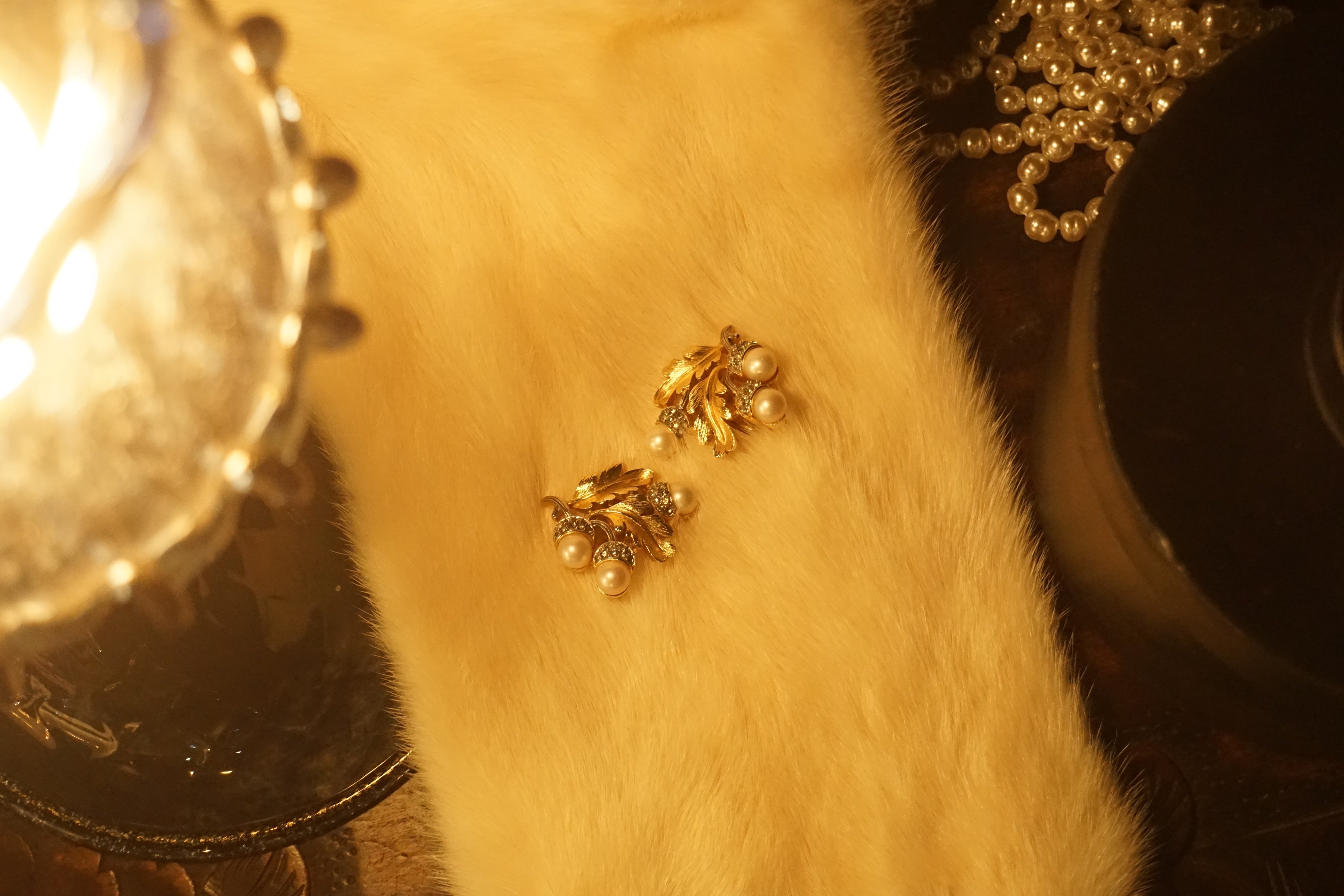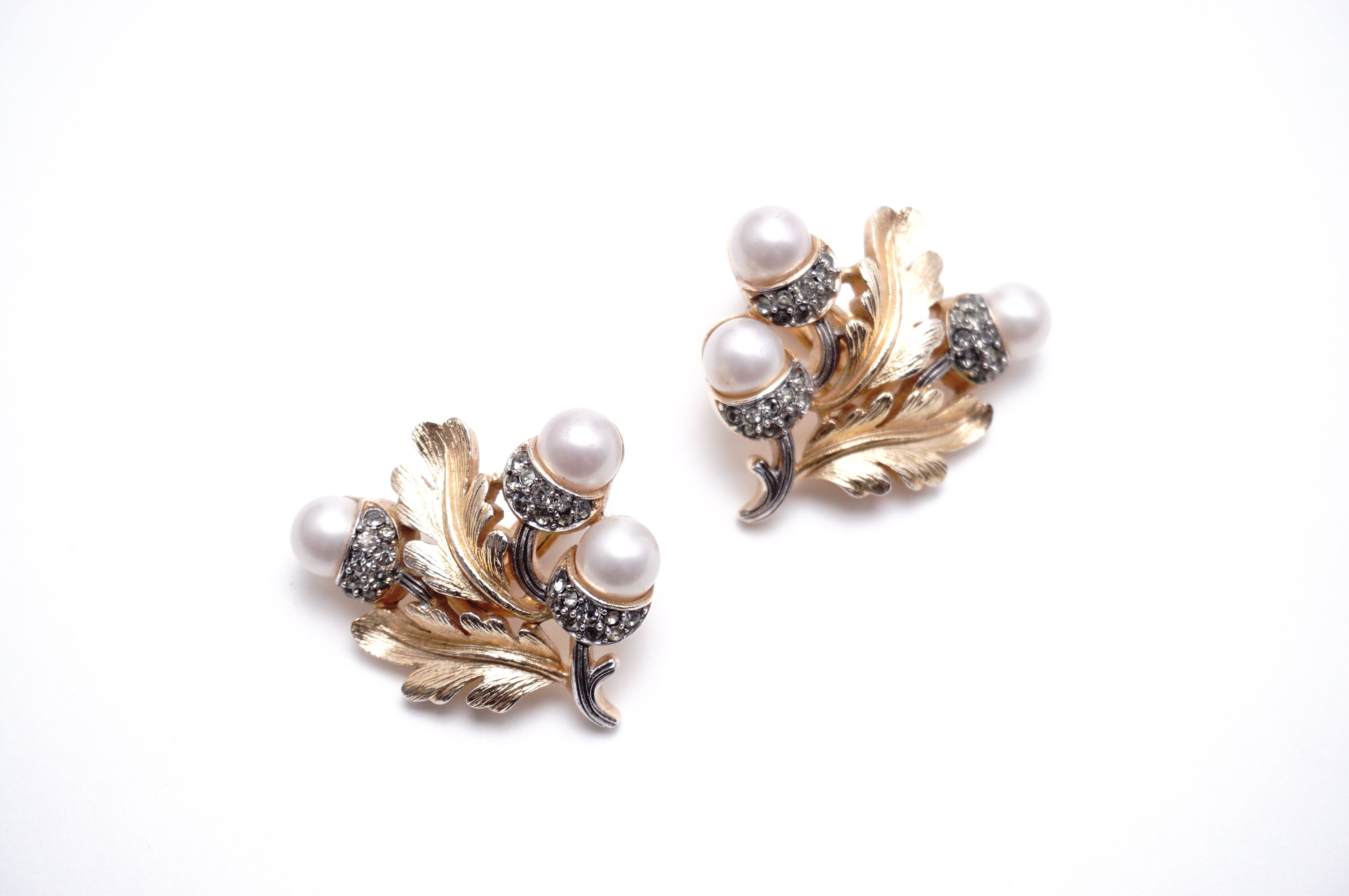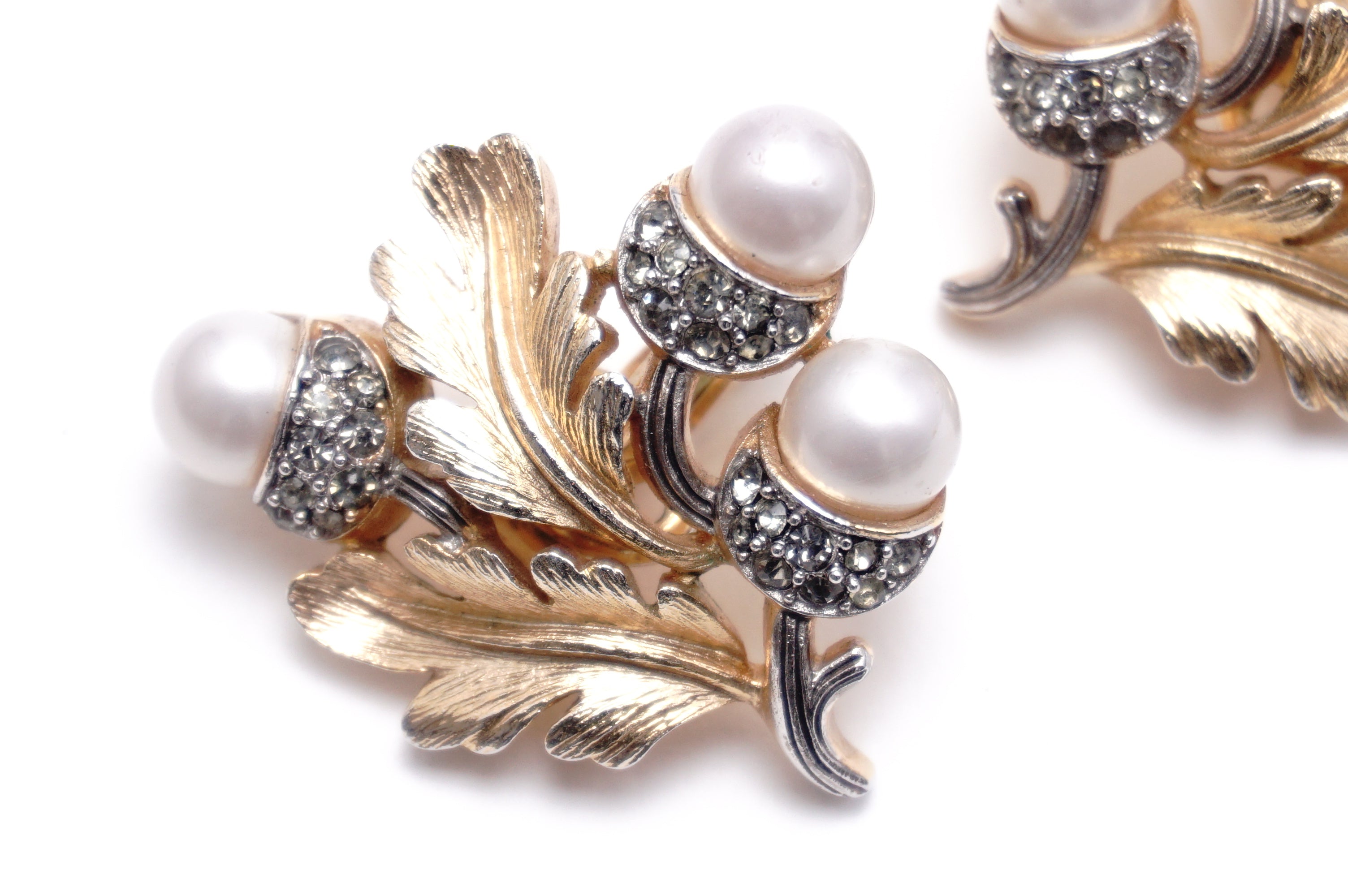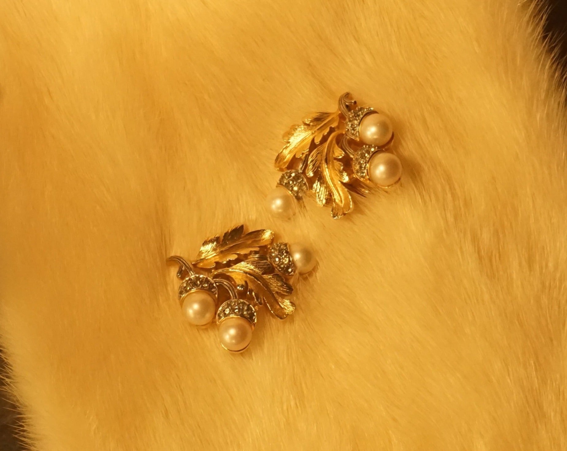 Trifari どんぐり パール/金 イヤリング