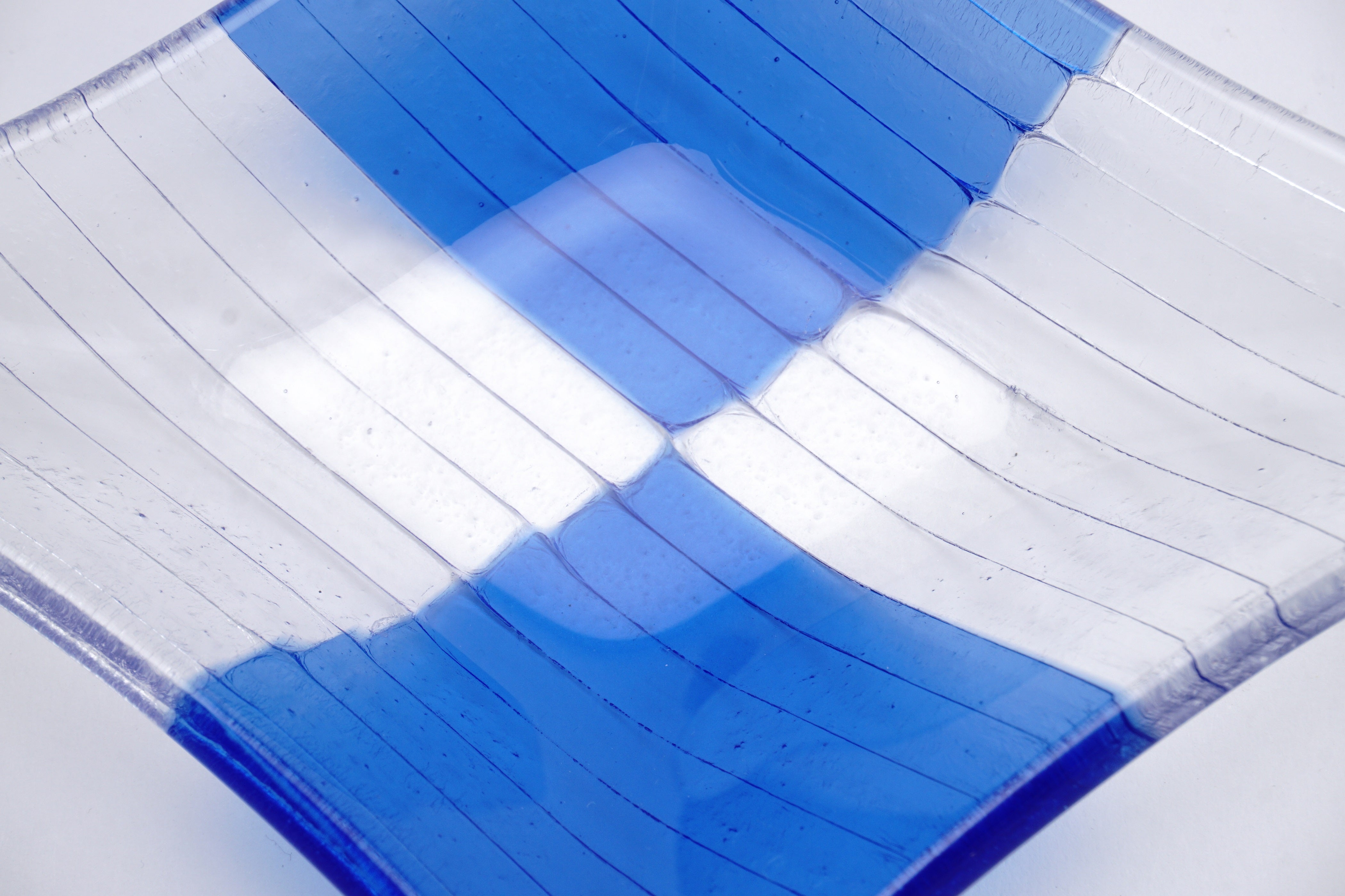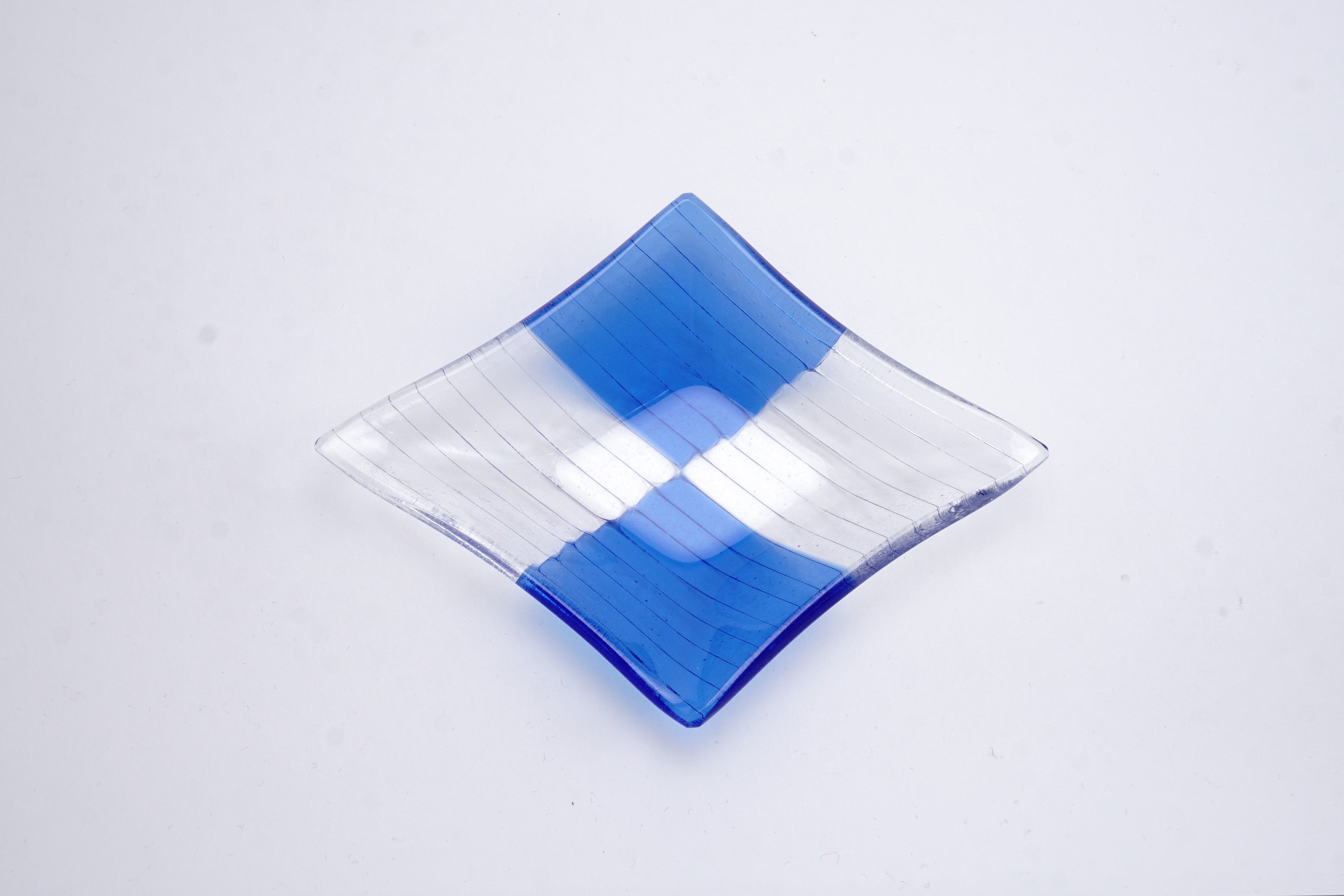 江戸時代のモダンスタイル 市松模様と、イタリア・ヴェネチアの職人とのコラボレーションは、和菓子も、チーズも素敵におもてなしします。さらにお取り皿としても活躍します。豊富なデザイン展開はchisa代表 小瀧千佐子が、ガラスと技法を理解した上で、フュージング技法に秀でた マエストロ・マウリッツィオにオーダーしました。木のテーブルに載せれば、色ガラスがより深みのある色に、白いテーブルでは鮮やかに発色することもガラス皿ならではの魅力です。手づくりではありますが、「フュージング技法」を使用することで1つ1つの個性が強くなく、その分プレゼントにも安心してお渡しできます。お色味も多数展開しておりますので、ぜひ組み合わせて楽しんでみてください。