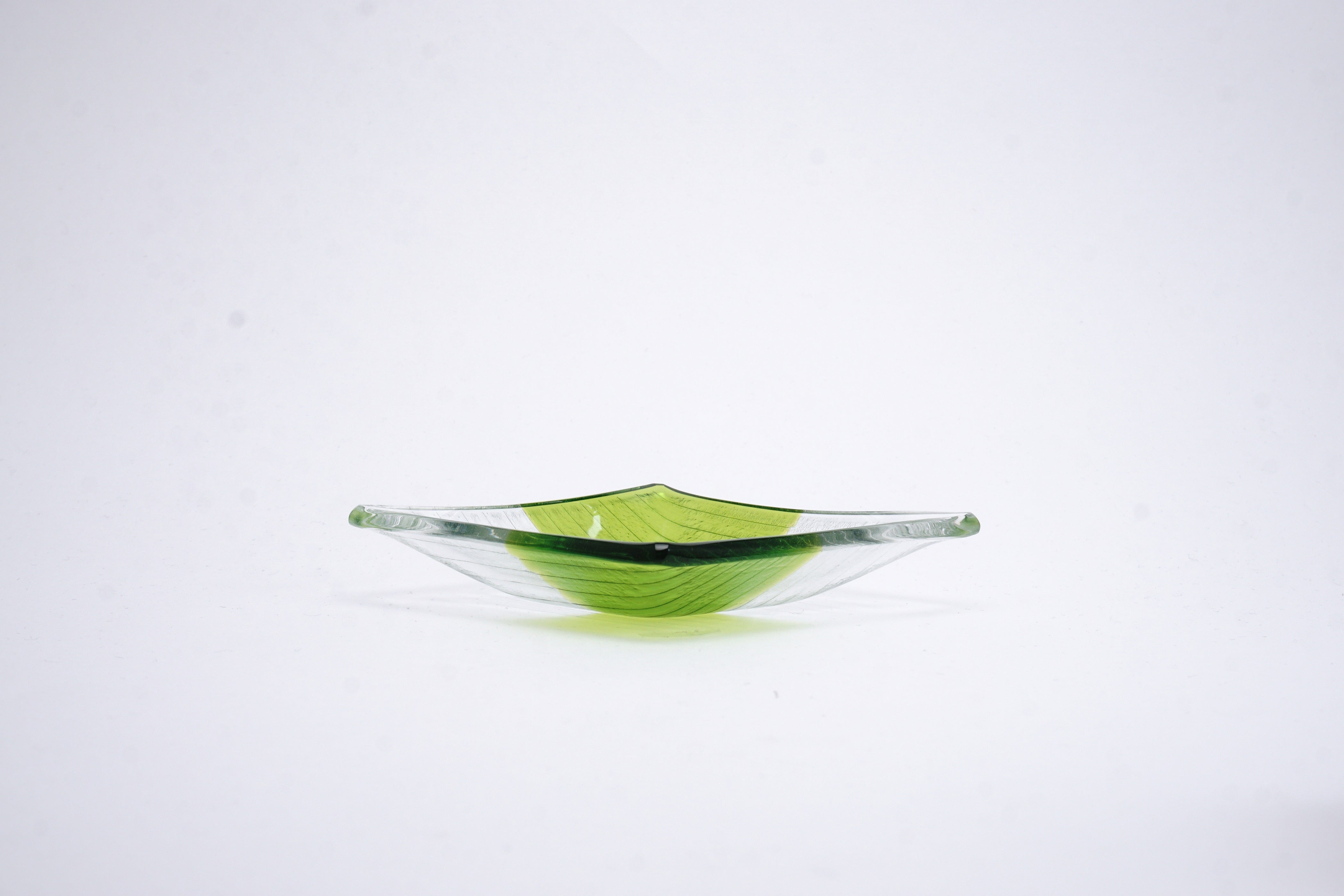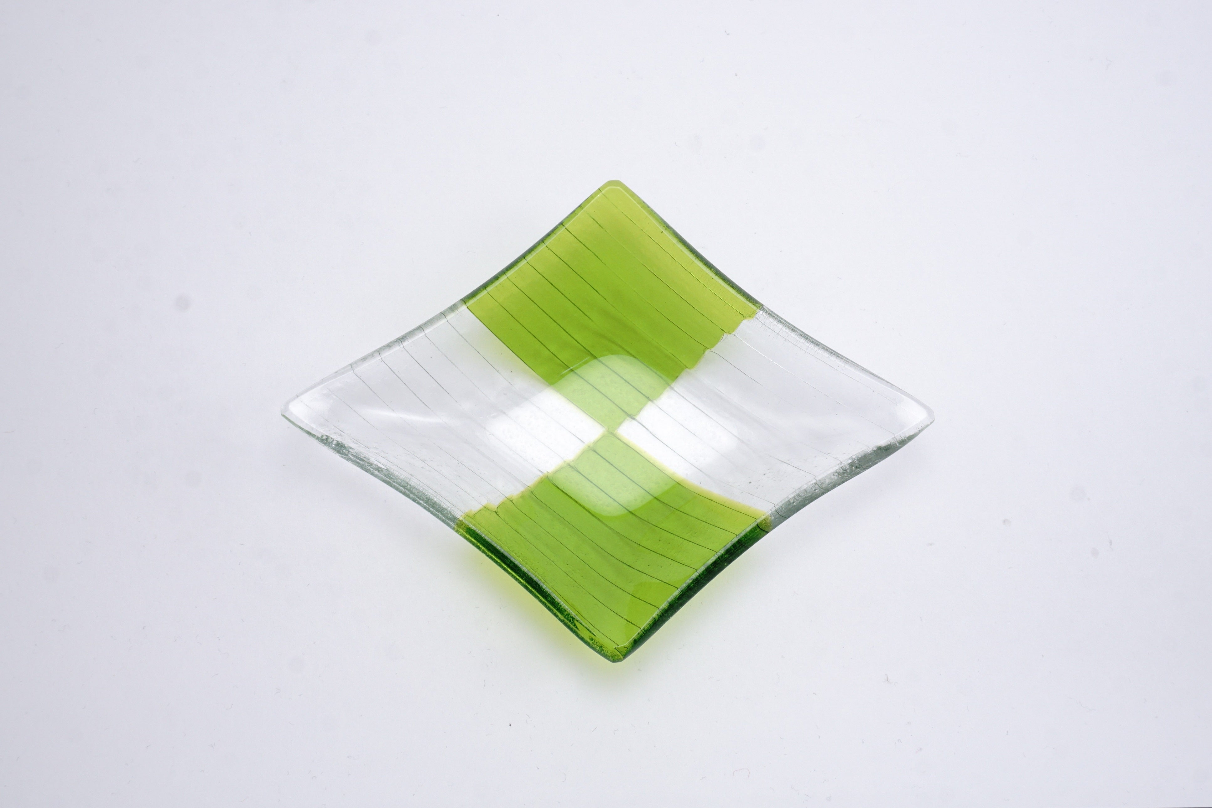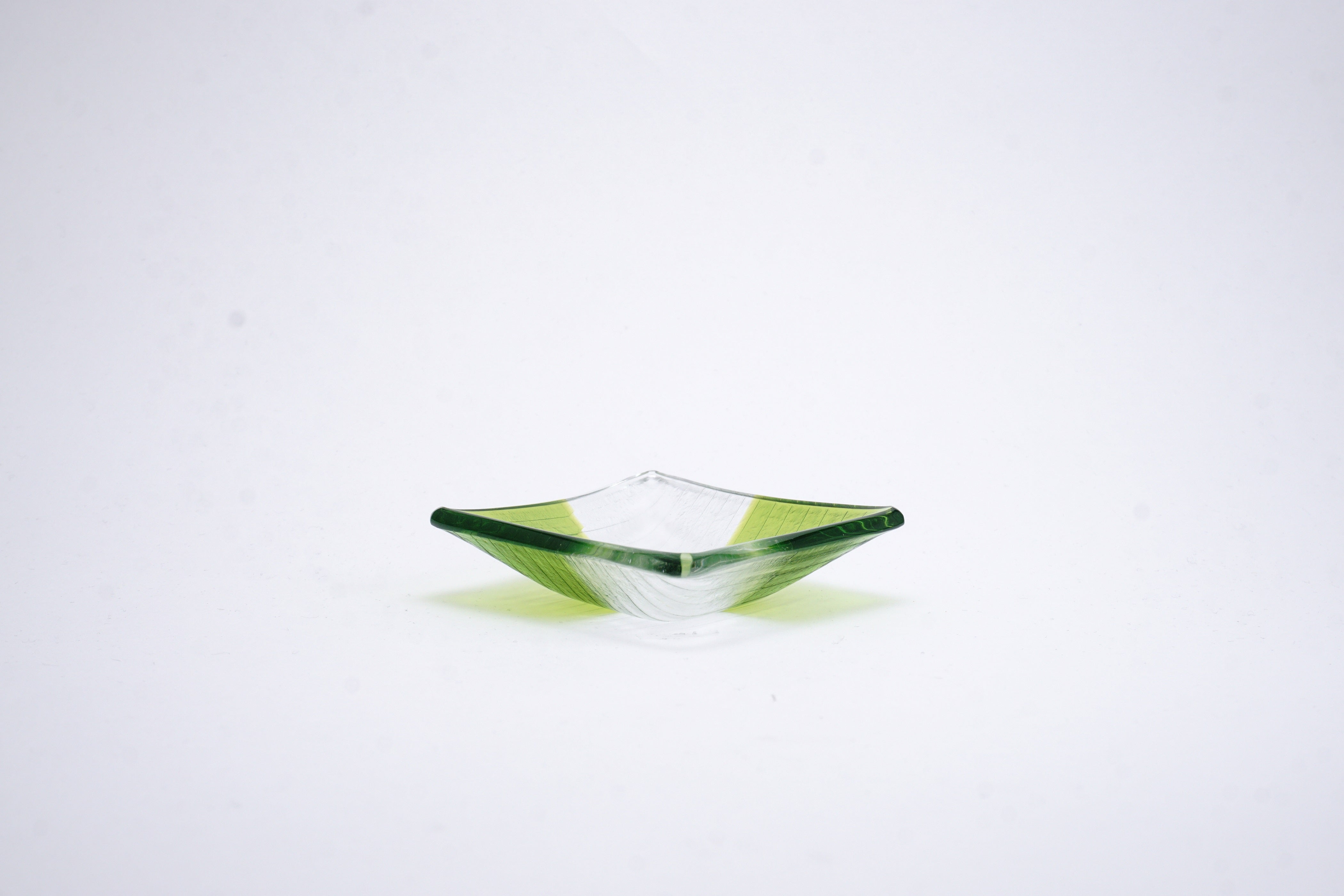 江戸時代のモダンスタイル 市松模様と、イタリア・ヴェネチアの職人とのコラボレーションは、和菓子も、チーズも素敵におもてなしします。さらにお取り皿としても活躍します。豊富なデザイン展開はchisa代表 小瀧千佐子が、ガラスと技法を理解した上で、フュージング技法に秀でた マエストロ・マウリッツィオにオーダーしました。木のテーブルに載せれば、色ガラスがより深みのある色に、白いテーブルでは鮮やかに発色することもガラス皿ならではの魅力です。手づくりではありますが、「フュージング技法」を使用することで1つ1つの個性が強くなく、その分プレゼントにも安心してお渡しできます。お色味も多数展開しておりますので、ぜひ組み合わせて楽しんでみてください。