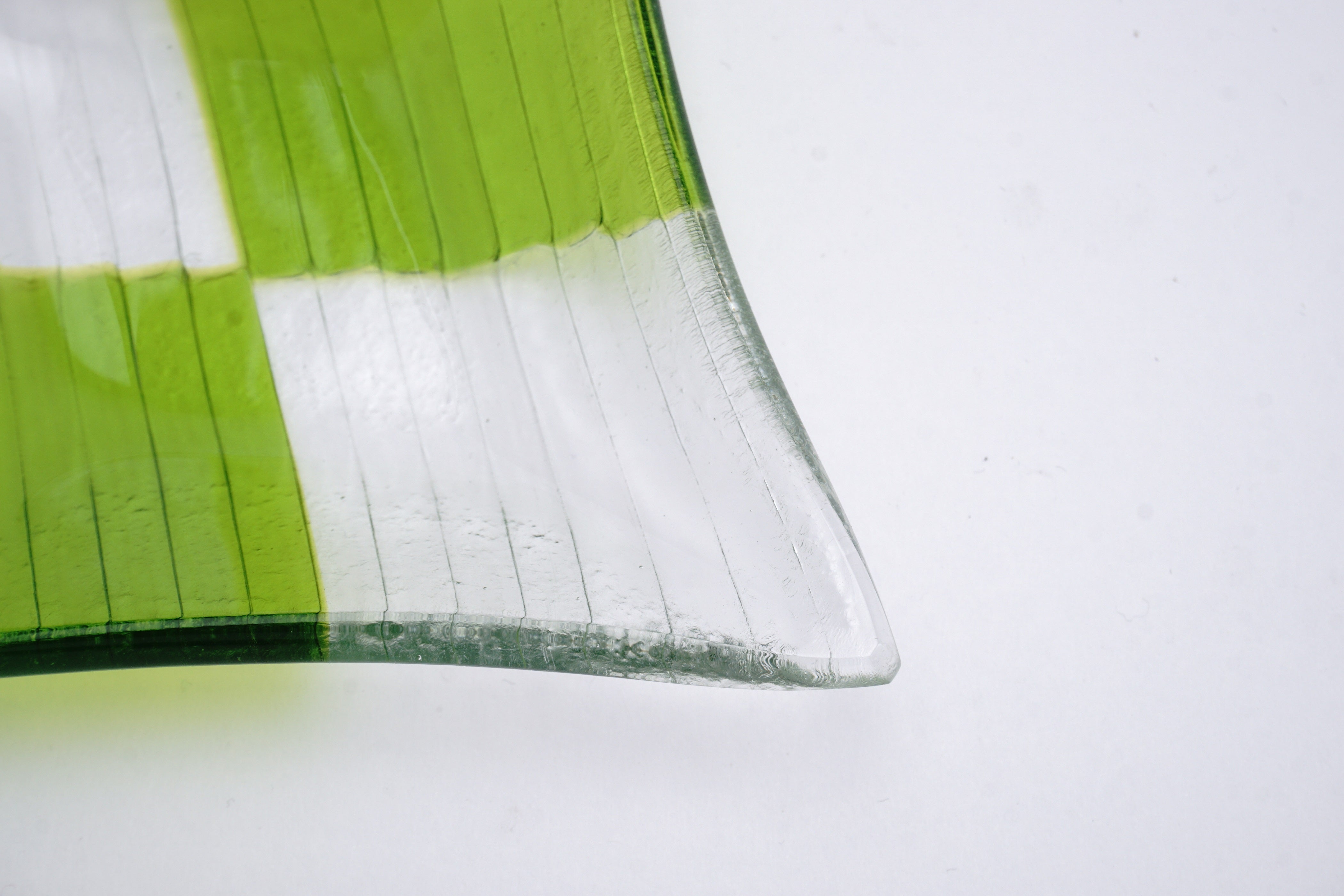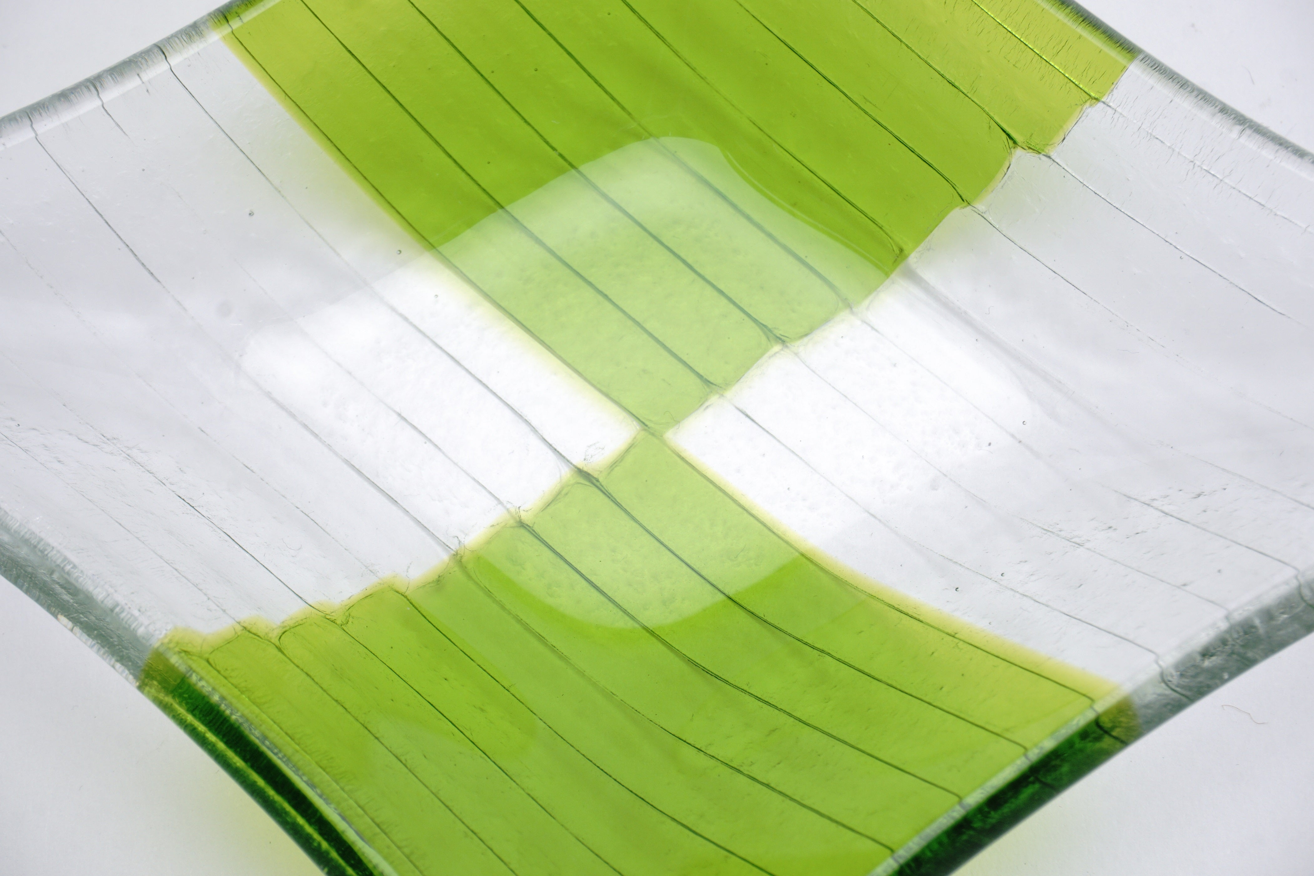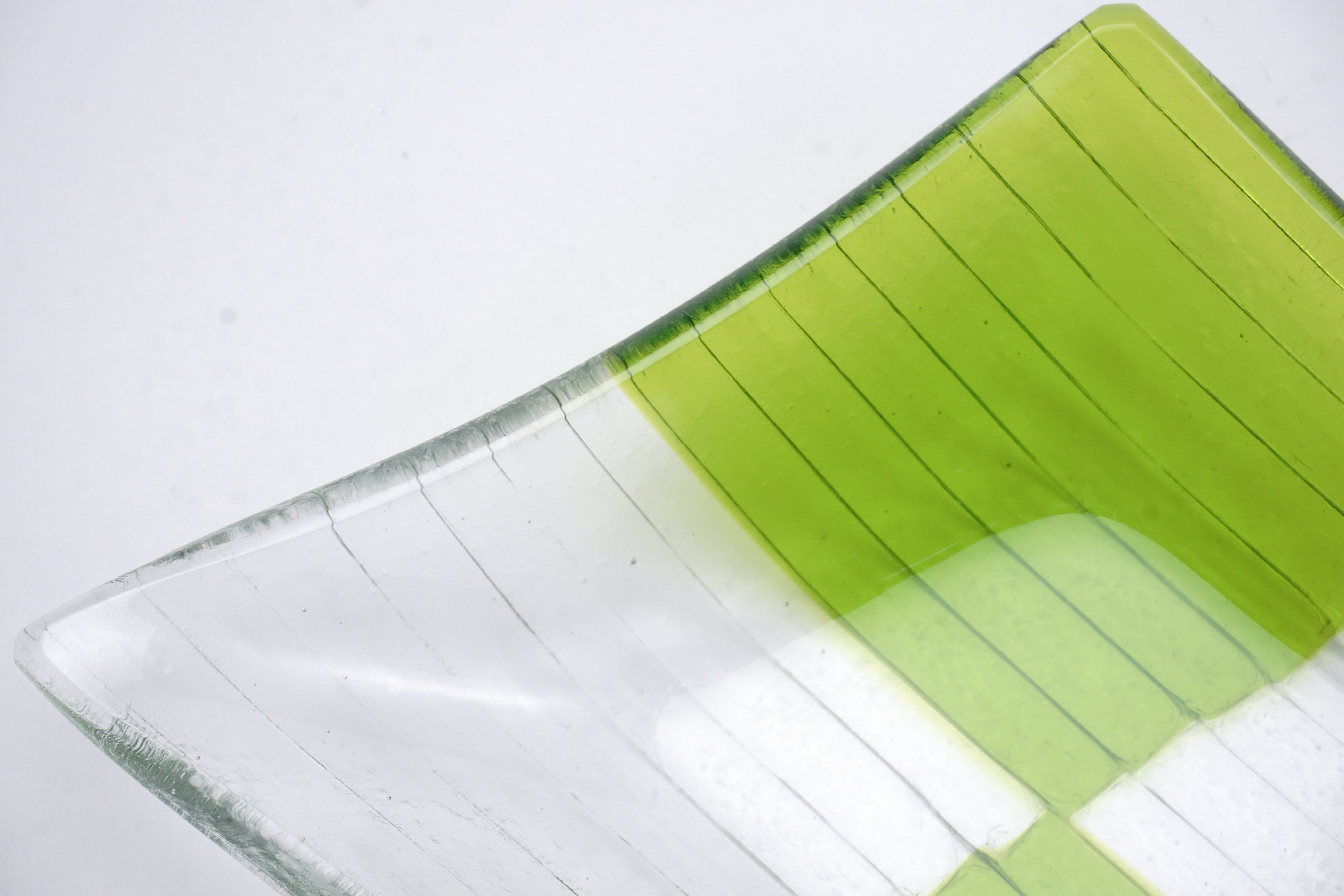 江戸時代のモダンスタイル 市松模様と、イタリア・ヴェネチアの職人とのコラボレーションは、和菓子も、チーズも素敵におもてなしします。さらにお取り皿としても活躍します。豊富なデザイン展開はchisa代表 小瀧千佐子が、ガラスと技法を理解した上で、フュージング技法に秀でた マエストロ・マウリッツィオにオーダーしました。木のテーブルに載せれば、色ガラスがより深みのある色に、白いテーブルでは鮮やかに発色することもガラス皿ならではの魅力です。手づくりではありますが、「フュージング技法」を使用することで1つ1つの個性が強くなく、その分プレゼントにも安心してお渡しできます。お色味も多数展開しておりますので、ぜひ組み合わせて楽しんでみてください。
