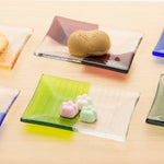 江戸時代のモダンスタイル 市松模様と、イタリア・ヴェネチアの職人とのコラボレーションは、和菓子も、チーズも、素敵におもてなしします。豊富なデザイン展開はchisa代表 小瀧千佐子が、ガラスと技法を理解した上で、フュージング技法に秀でた マエストロ・マウリッツィオにオーダーしました。木のテーブルに載せれば、色ガラスがより深みのある色に、白いテーブルでは鮮やかに発色することもガラス皿ならではの魅力です。手づくりではありますが、「フュージング技法」を使用することで1つ1つの個性が強くなく、その分プレゼントにも安心してお渡しできます。お色味も多数展開しておりますので、ぜひ組み合わせて楽しんでみてください。