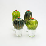 こちらはロレンツォ・フェロー工房が制作したオブジェ「サボテン」2種セットです。vaseはガラスがたっぷり使われていますが、その他が宙吹きで吹かれています。周りには24金箔をふんだんに使い、サボテンの表情を表現しています。