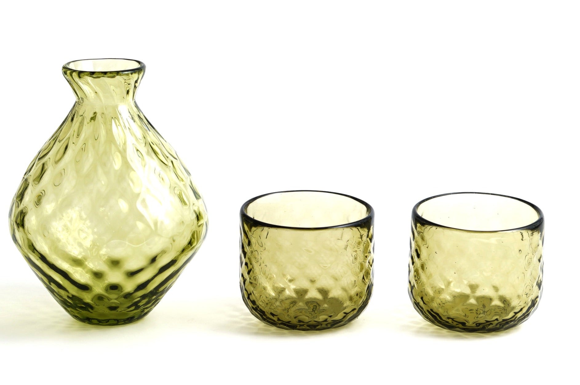 アンフォラ工房で作られた「葉桜」は、なんとも落ち着いたオリーブグリーンが魅力のchisaオリジナルのシリーズ。ムラーノガラスの中でも珍しい、どこか和を感じるお色で、日本の暮らしと私たちの心にスッと馴染むのではないでしょうか?桐箱に入れれば、和の雰囲気をまとうムラーノガラス(ベネチアガラス)として特別なギフトになります。
