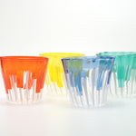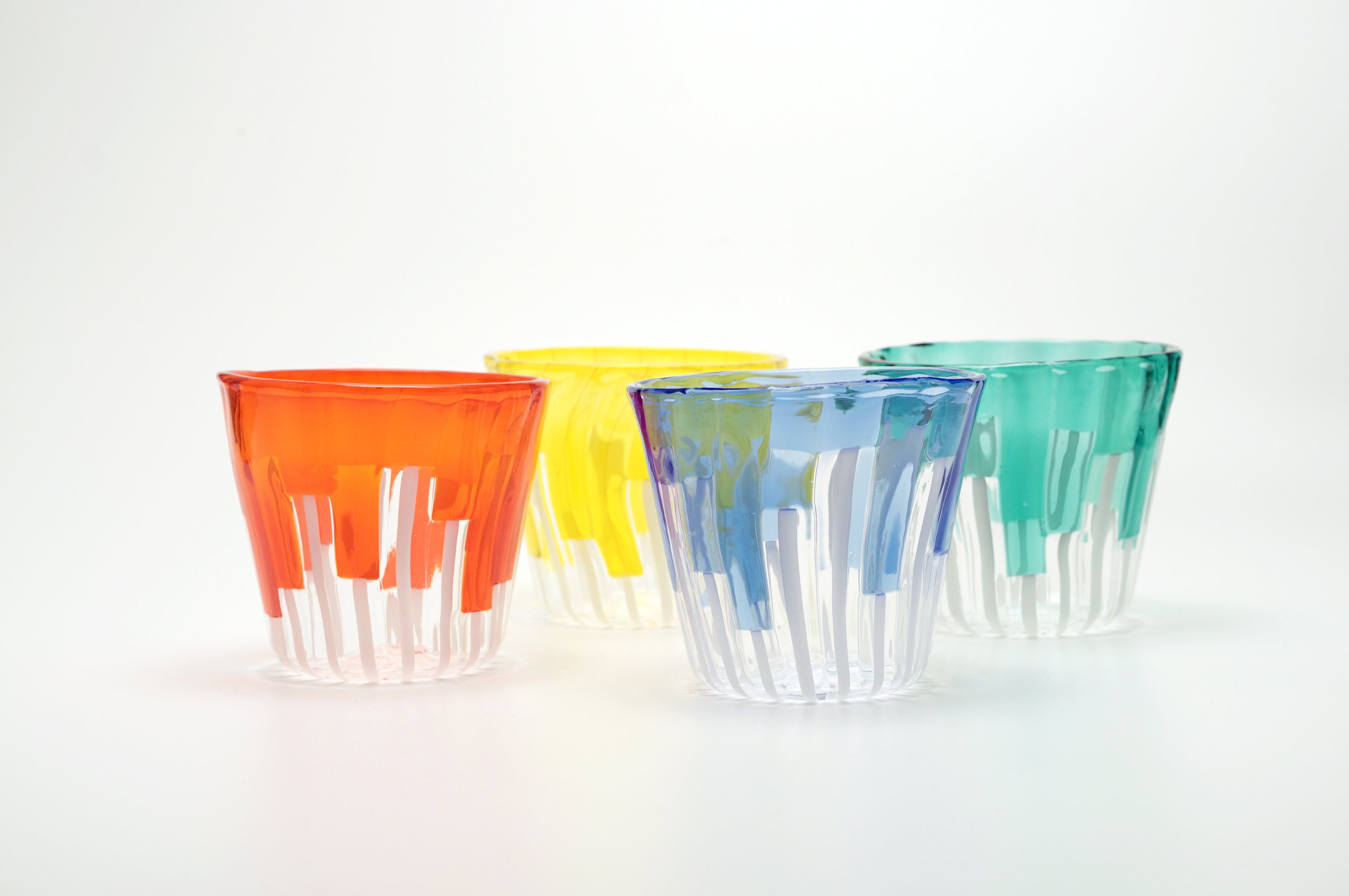 F&Mバラリン工房の作品は、鮮やかながら繊細な色遣いが最大の魅力です。手に取ると、想像よりも大変軽やかで、ガラスが熱を得てゆらゆらと、たゆたうさまをそのまま作品に残したようなフォルムも大変ムラーノガラスらしいと言えるでしょう。