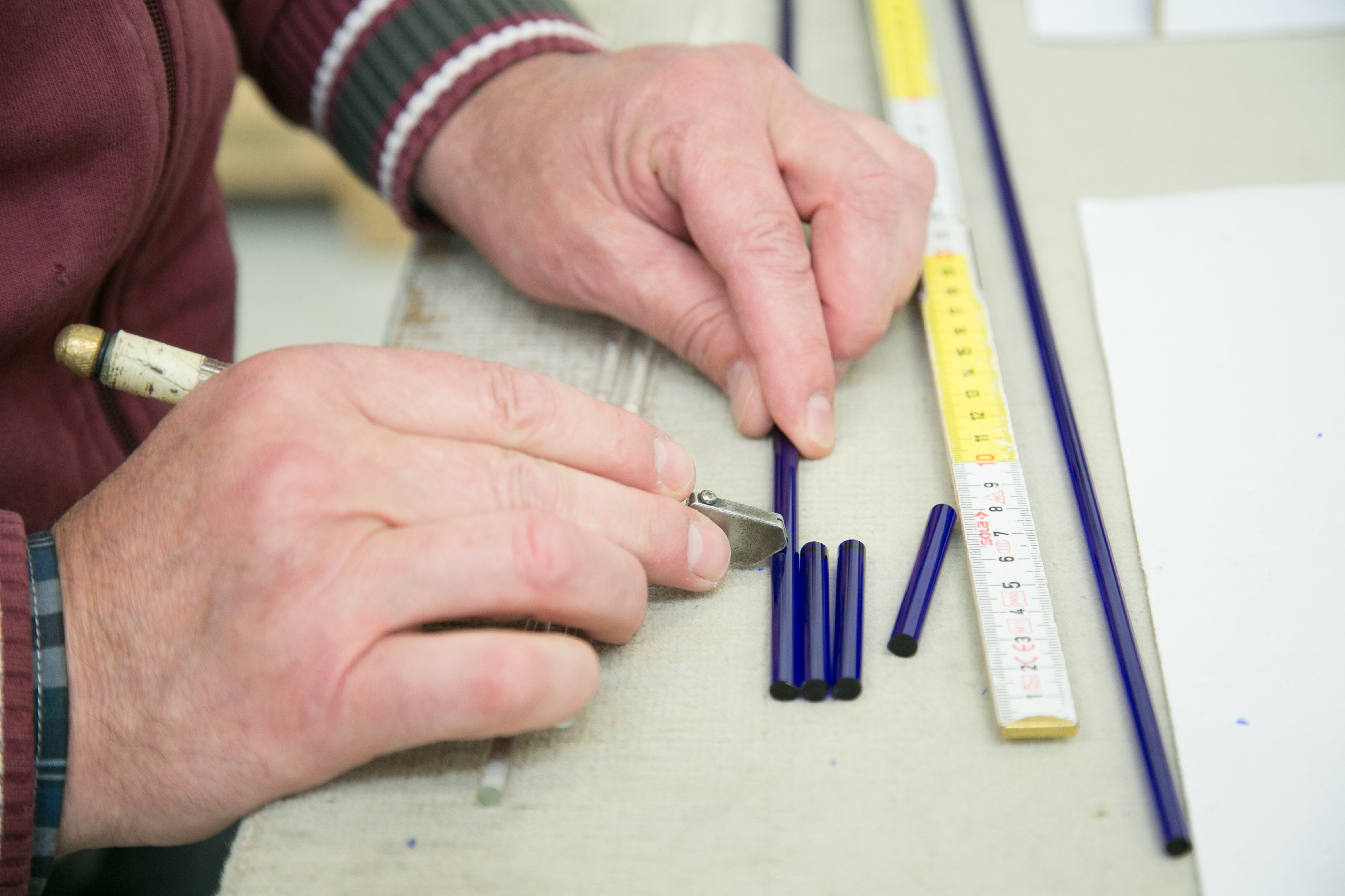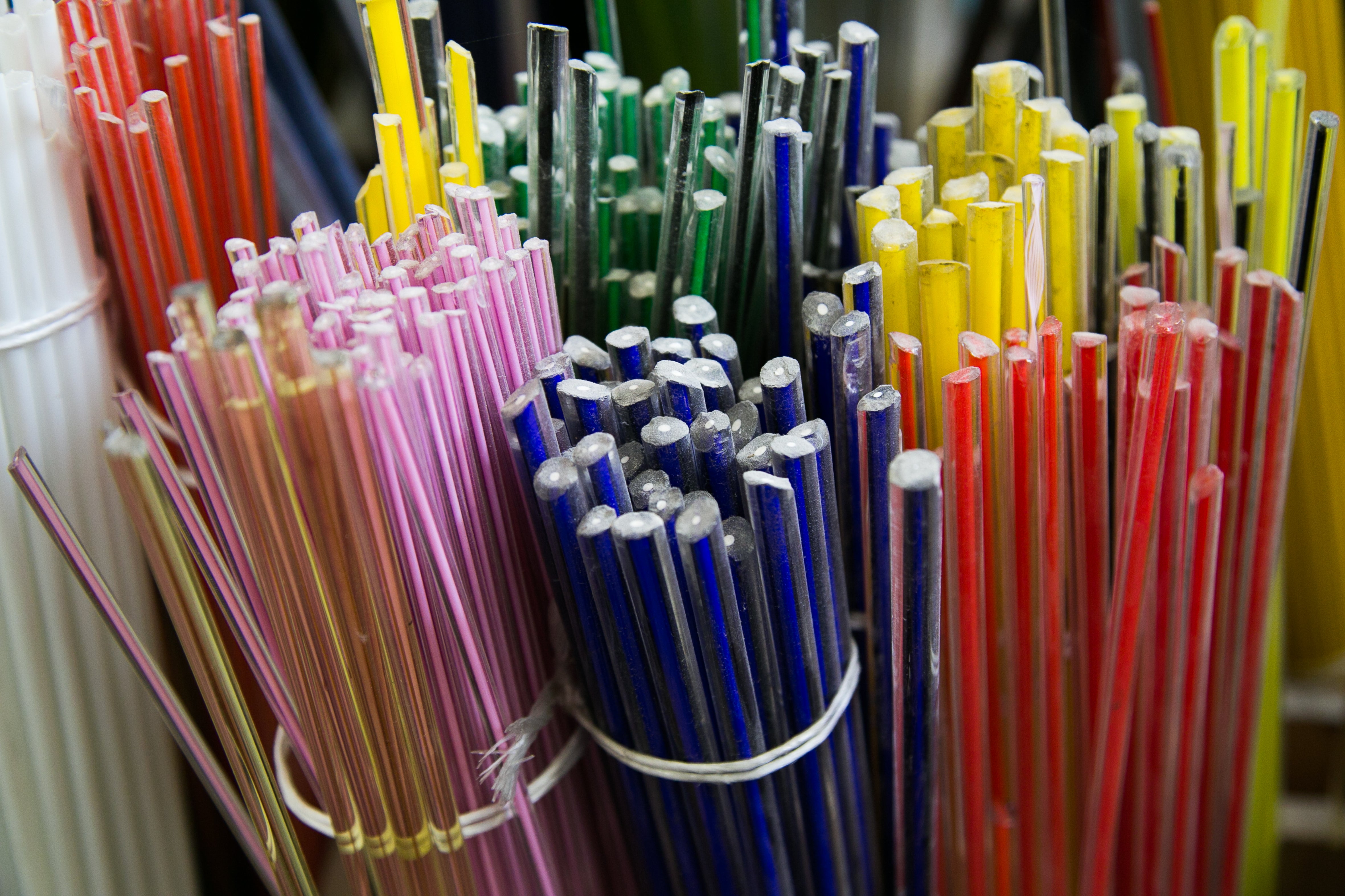吹きガラスにおいては、制作途中に発生する小さな気泡や黒点、底面にポンテ跡(吹き竿を外した際の凹凸)がある場合がございます。