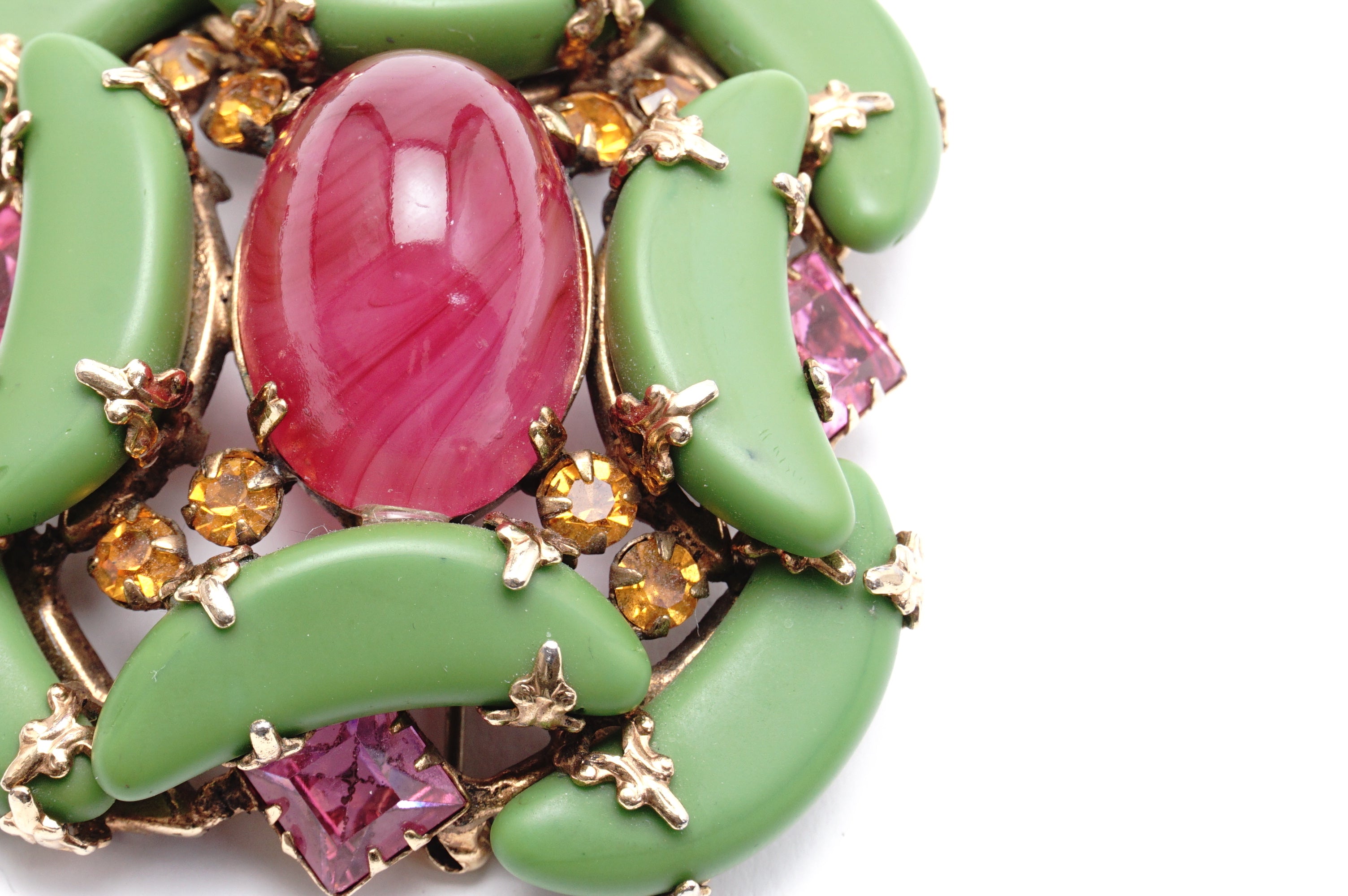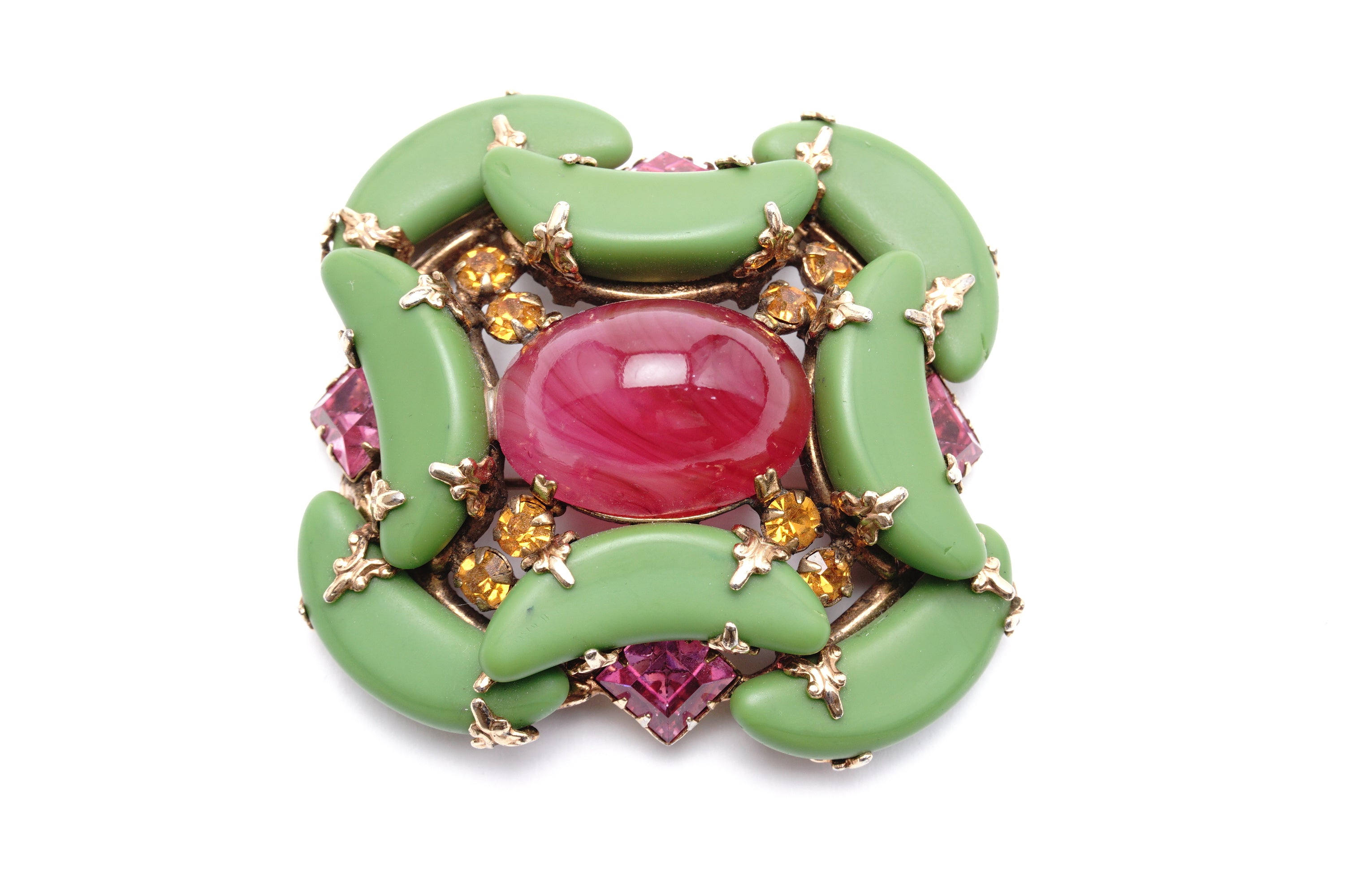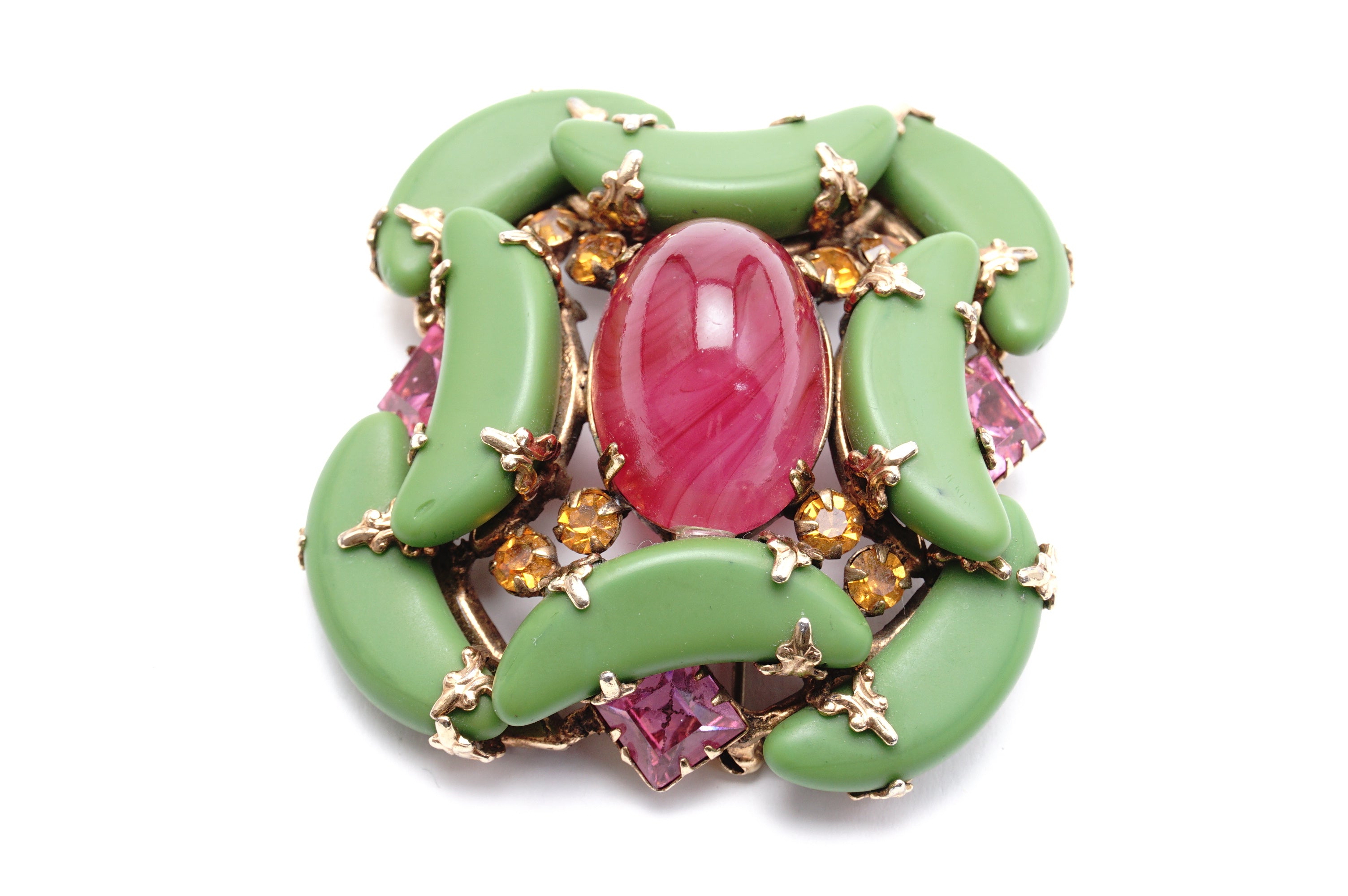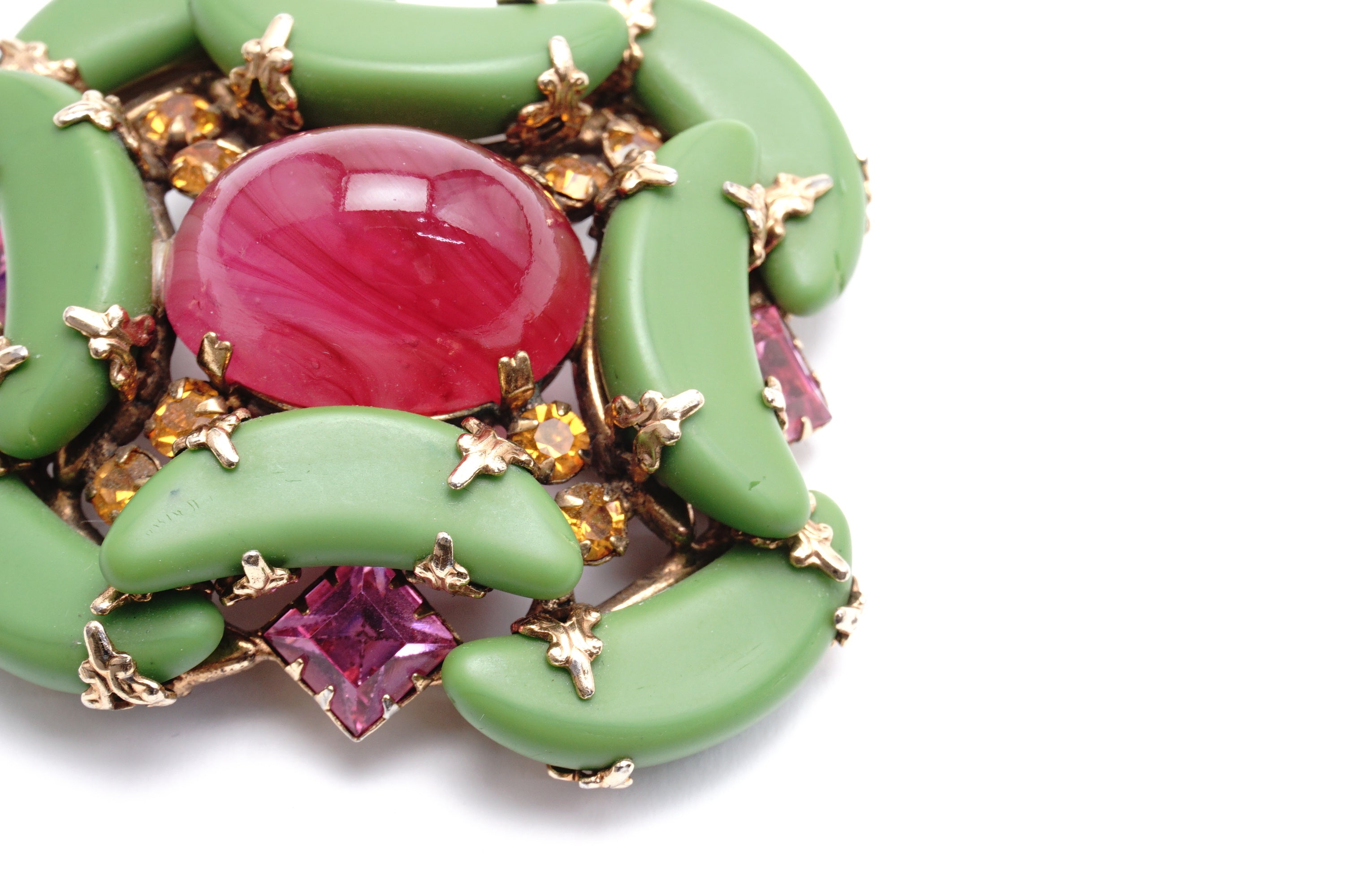 NY opague green Ruby ペイスト カボッションブローチ 1950‘s