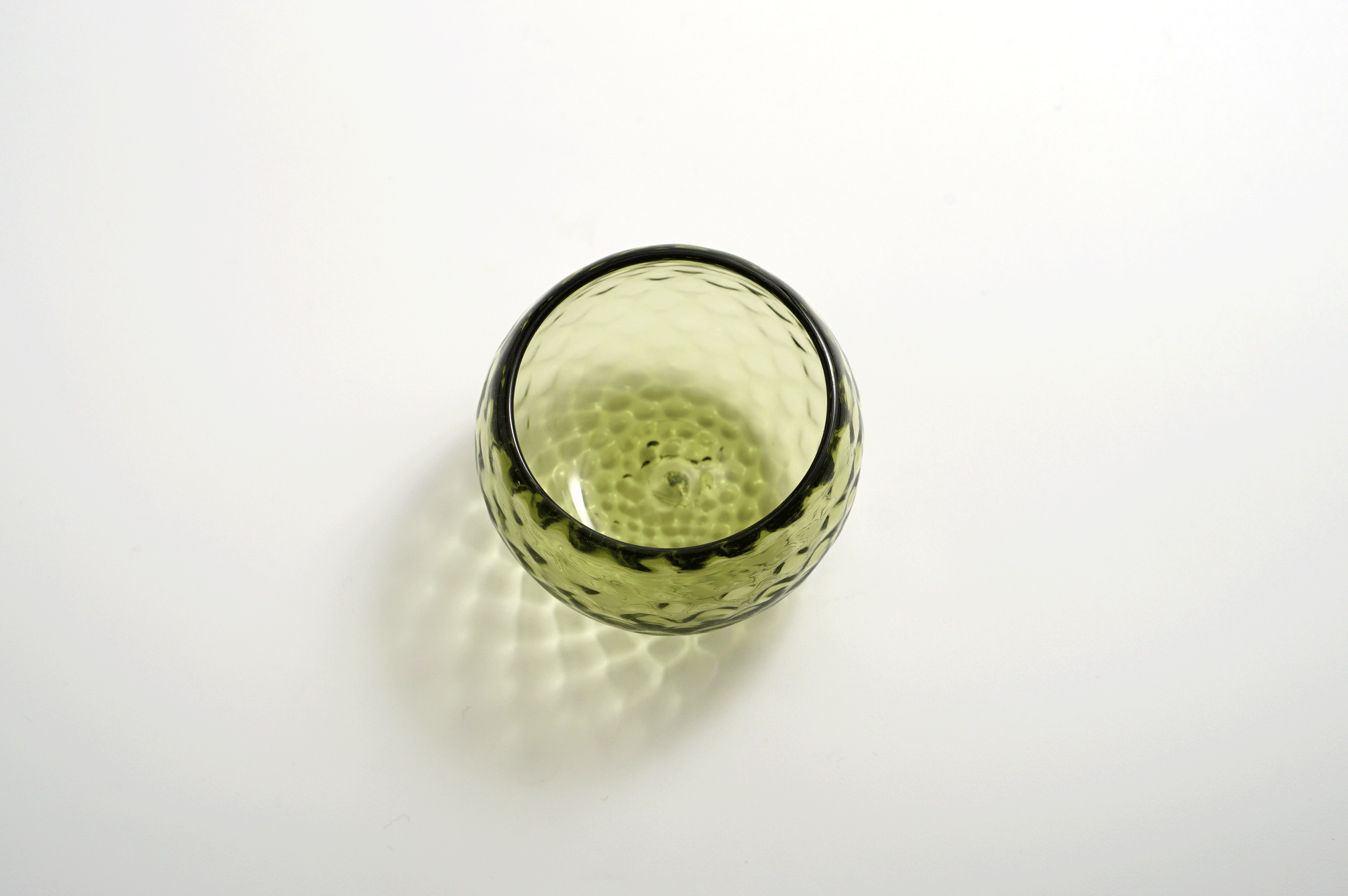 吹きガラスにおいては、制作途中に発生する小さな気泡や黒点、底面にポンテ跡(吹き竿を外した際の凹凸)がある場合がございます。