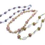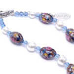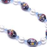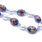 溶かしたガラス棒でお花柄を描く技法「フィオラーテ」ビーズと、日本製のガラスパールを繋ぎデザインしたネックレス。