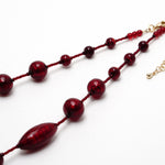 それぞれビーズは3層もの構造になっており、土台となるビーズを作り、その上に金箔を巻き、さらにその上に赤いガラスを着せてつくられています。