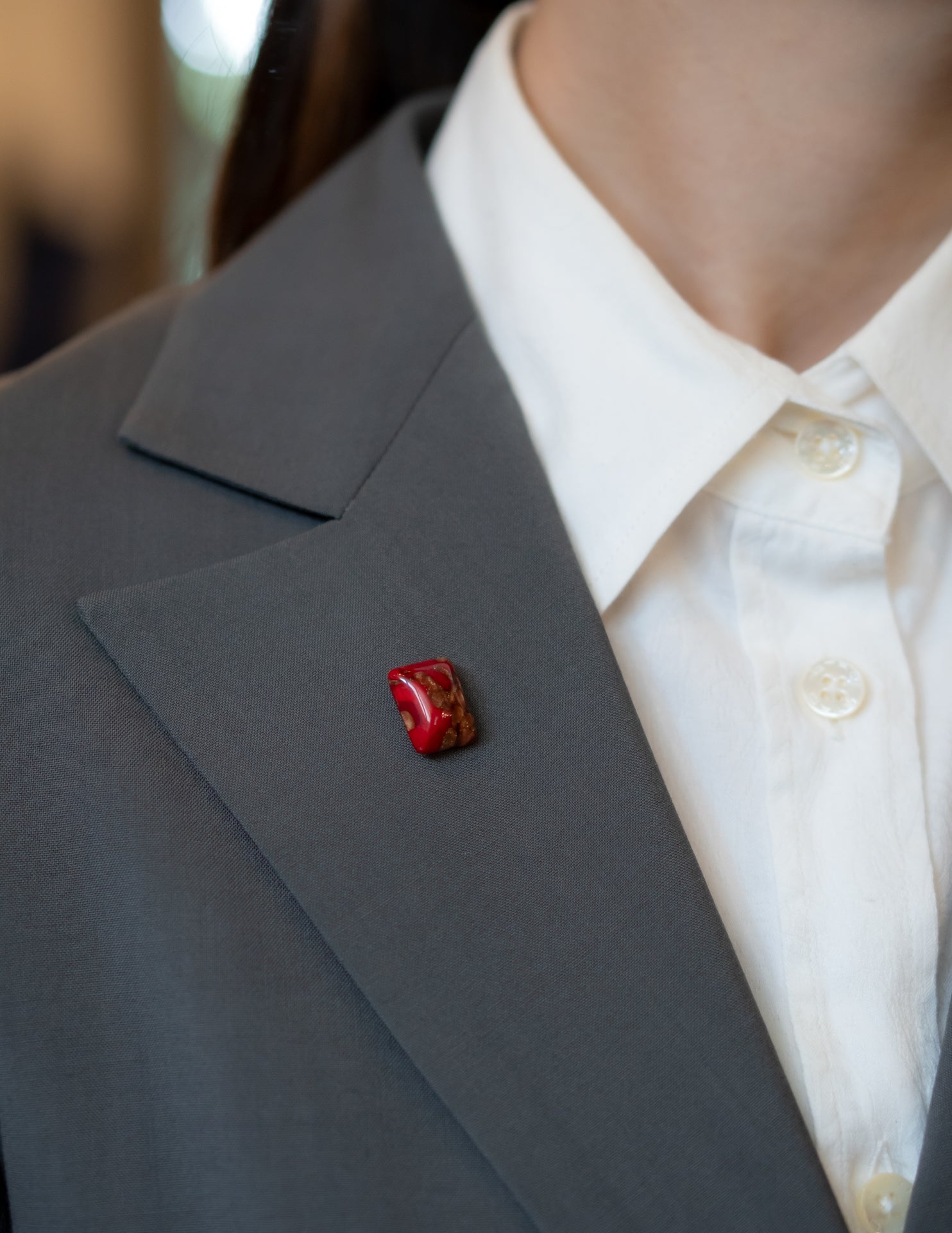 ヴェネチア・ムラーノ島にある老舗工房「エルコレ・モレッティ」の熟練職人が、一つひとつ心を込めて手作りしたガラスペイストをもとに、北参道〈chisa〉のアトリエでブローチとして丁寧に仕上げています。