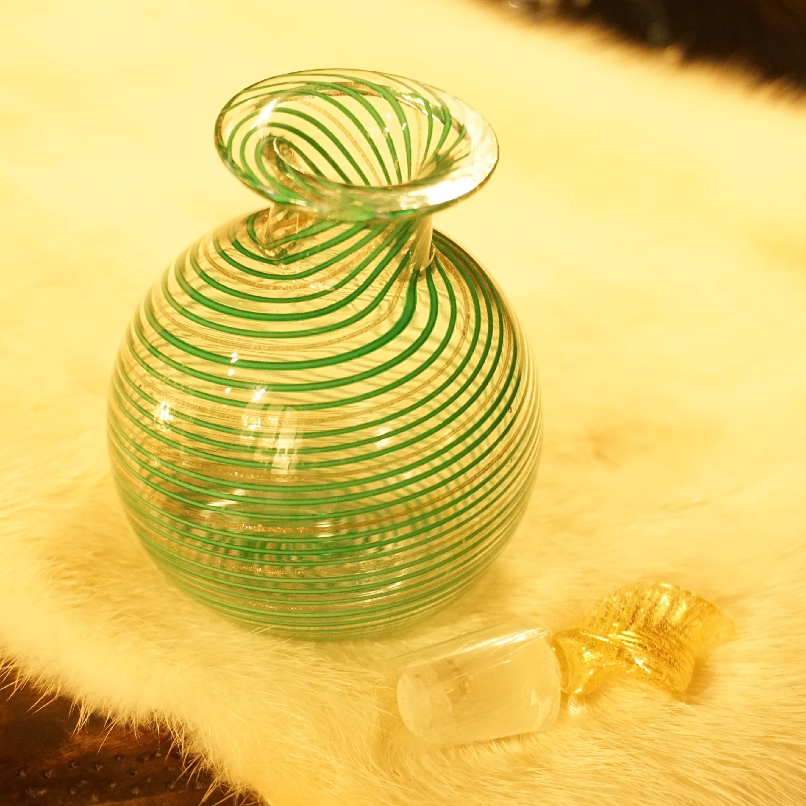 鮮やかな緑のフィリグラーナが美しい小ぶりの香水瓶。