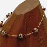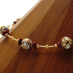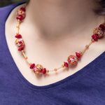 ムラーノガラスならではの赤は重厚感がありますが、重たくなりすぎないようにコンテリエという芥子粒大のガラスビーズと合わせました。