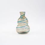 こちらの徳利は小瀧千佐子がデザインをした商品で、ガラスの色合わせからフォルムまでこだわりを貫いた逸品です。一見シンプルなデザインですが、よく見ると様々な色のガラス棒が組み合わさっています。