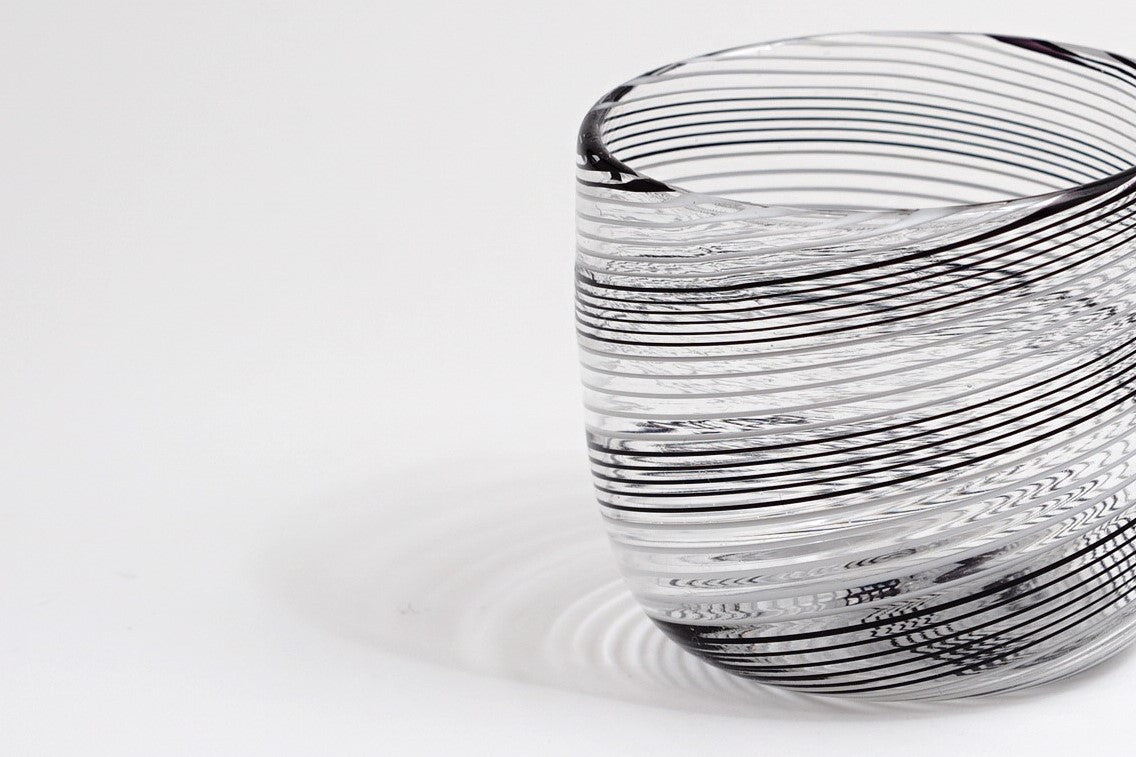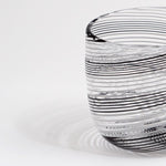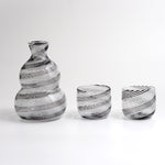 小瀧千佐子がデザインし、サルバドーレ工房に制作していただいた、白と黒の細い線がらせん状にめぐる「フィリグラーナ(Filigrana:線状模様)」が美しい徳利とお猪口のセット。ムラーノガラスで作られた日本ならではの酒器は、他にはない贅沢なchisaのオリジナルです。