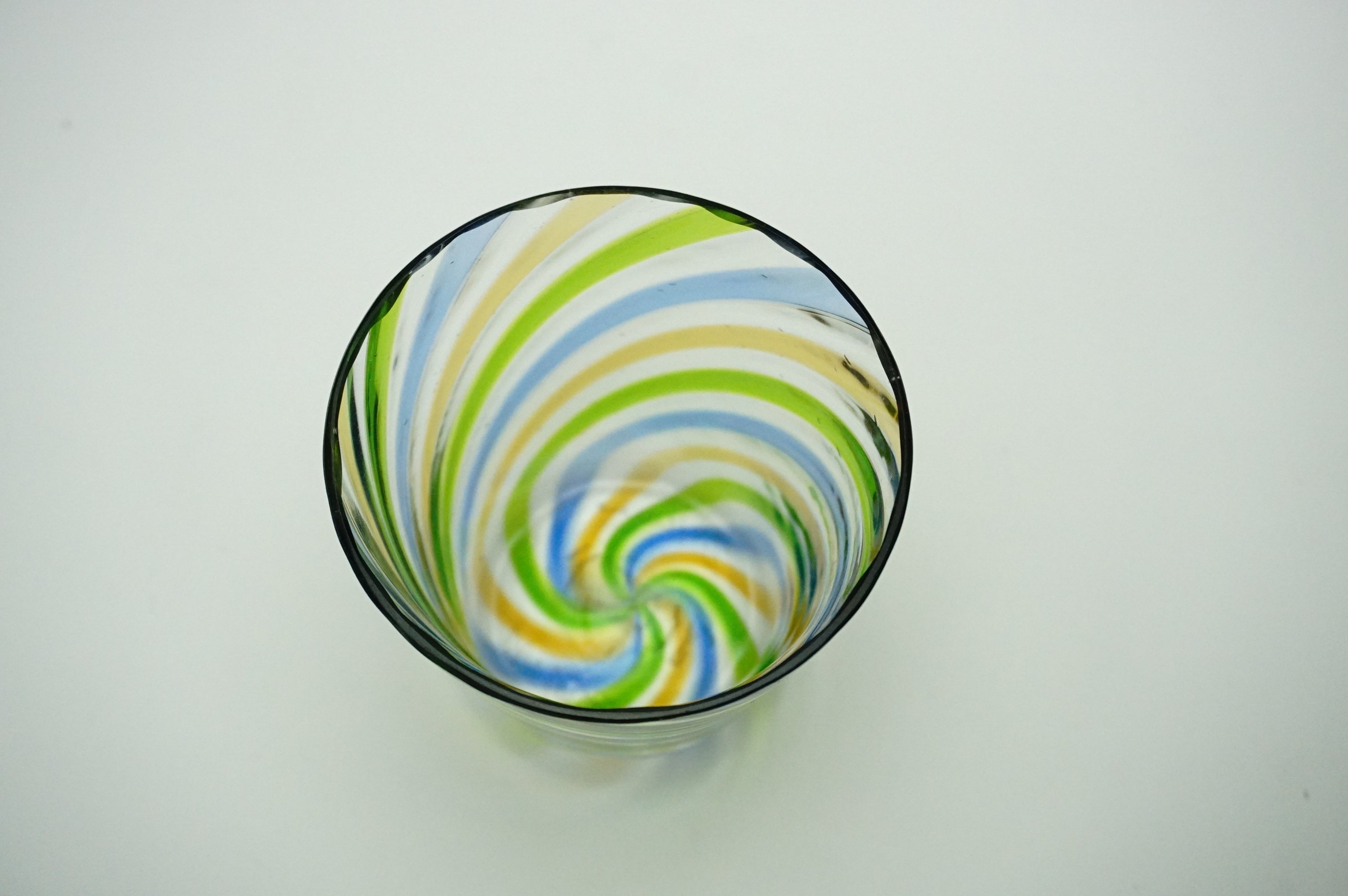 吹きガラスにおいては、制作途中に発生する小さな気泡や黒点、底面にポンテ跡(吹き竿を外した際の凹凸)がある場合がございます。